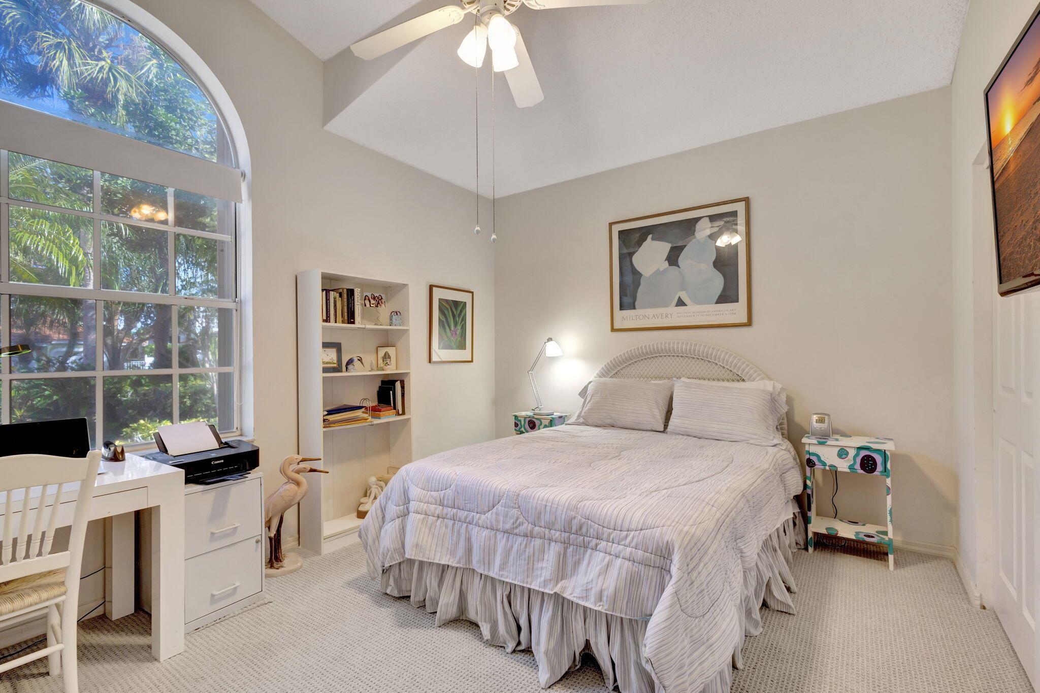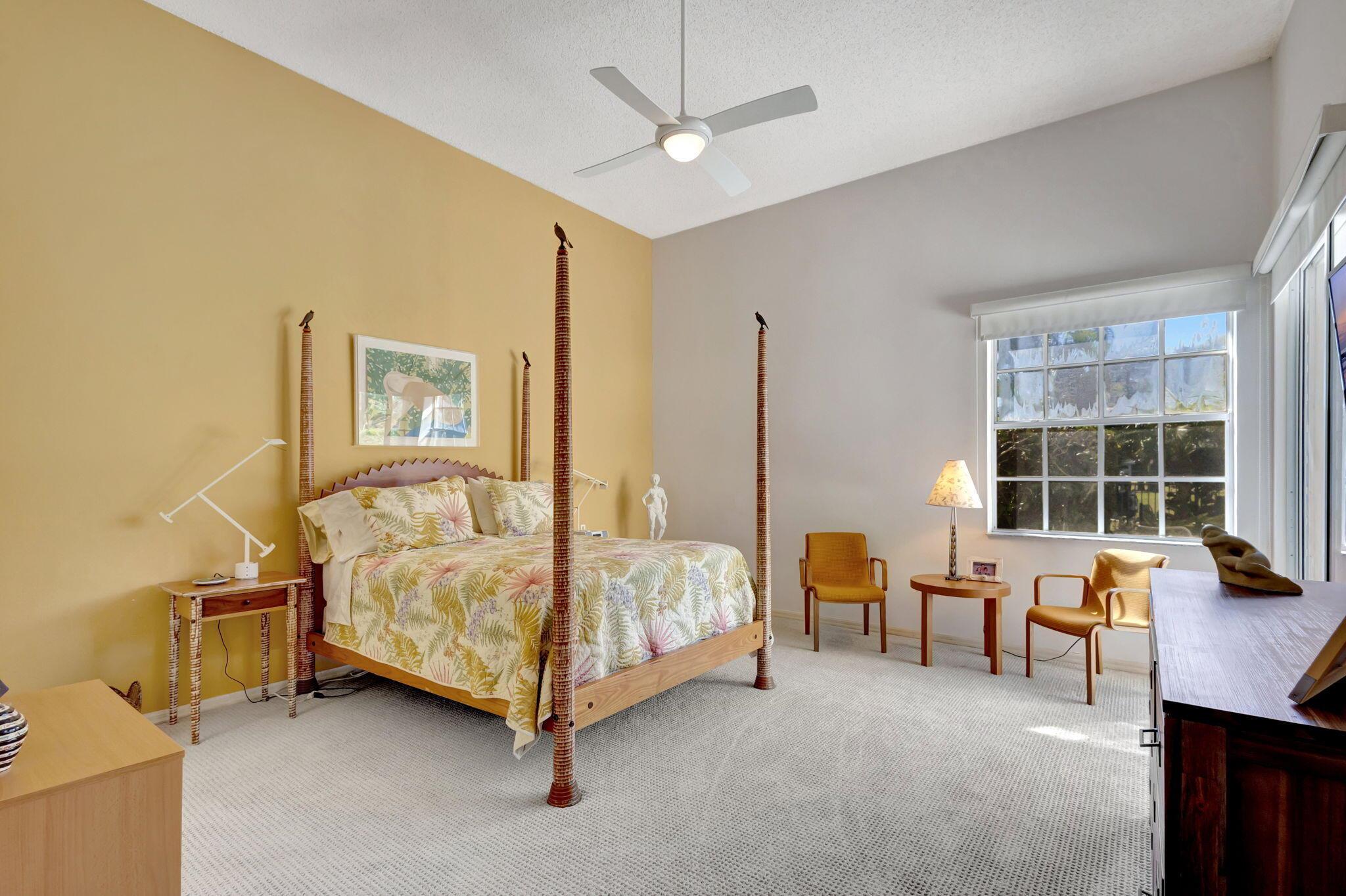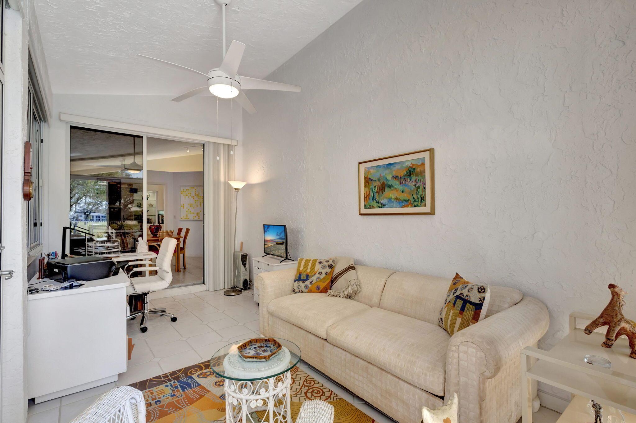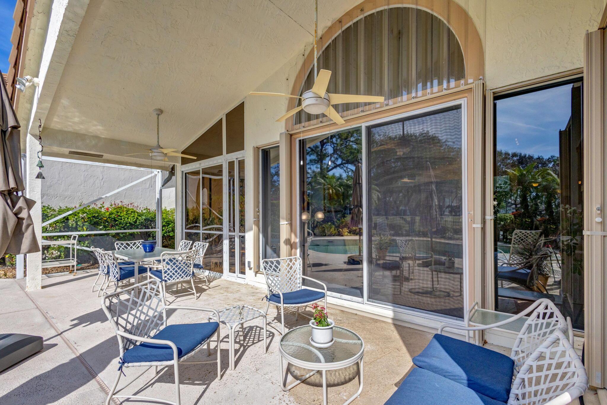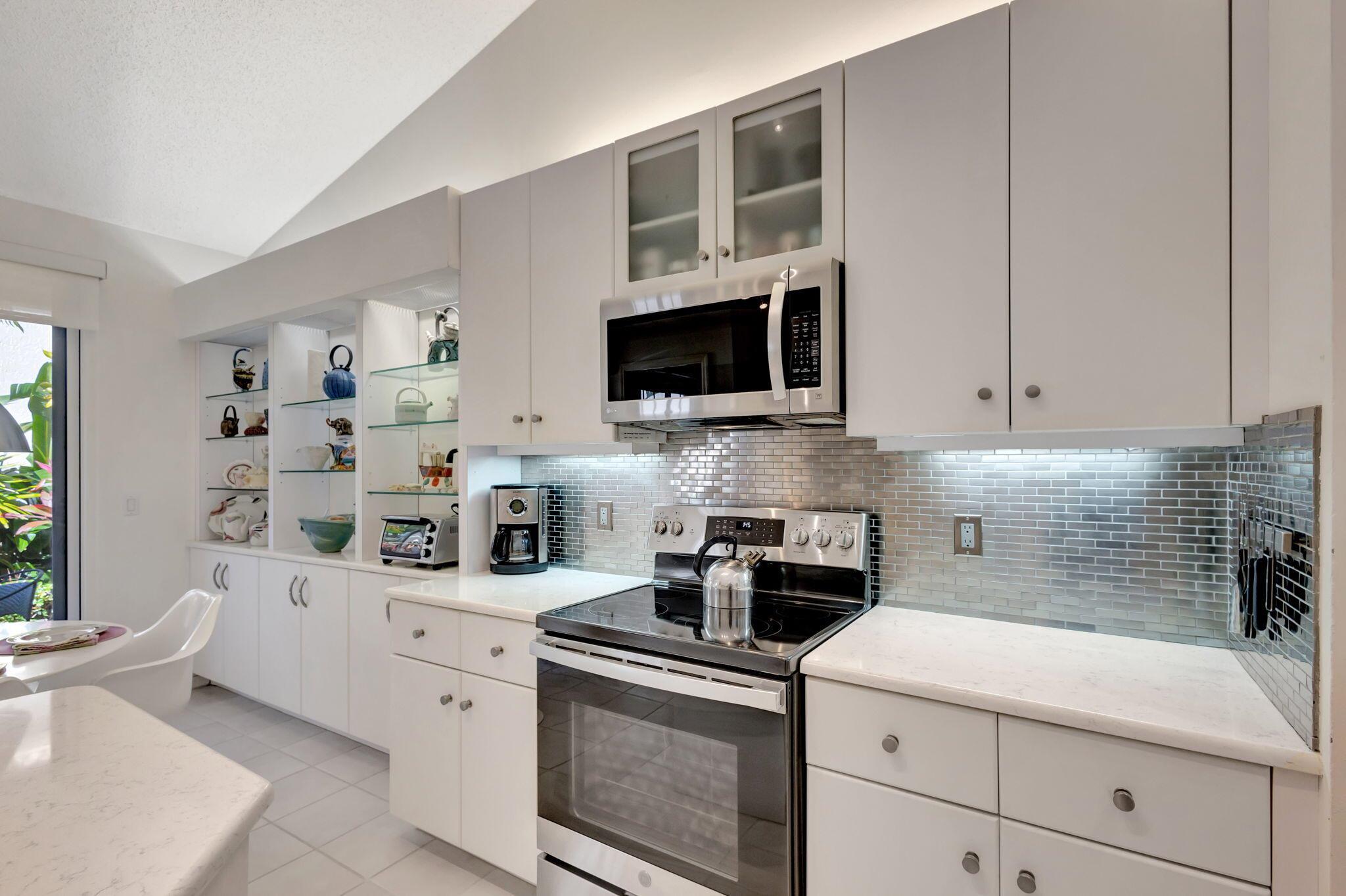 This beautifully designed lush landscaped Pool home serves light and bright with 2-bedrooms, 2-baths and a den that can be easily converted to 3rd bedroom, baths remodeled. Perfectly situated along a double fairway in the prestigious Eastpointe Country Club of Palm Beach Gardens. With western exposure, this home offers breathtaking sunsets over the lush golf course. Step inside to an open-concept floor plan with vaulted ceilings filling the home with natural light, featuring a split-bedroom layout for privacy and comfort. The chef’s kitchen boasts high-end appliances, ample counter space, island for prepping and an eat-in breakfast area, making it perfect for both casual and gourmet dining. Adjacent to the kitchen, a formal dining room provides an elegant setting for entertaining.