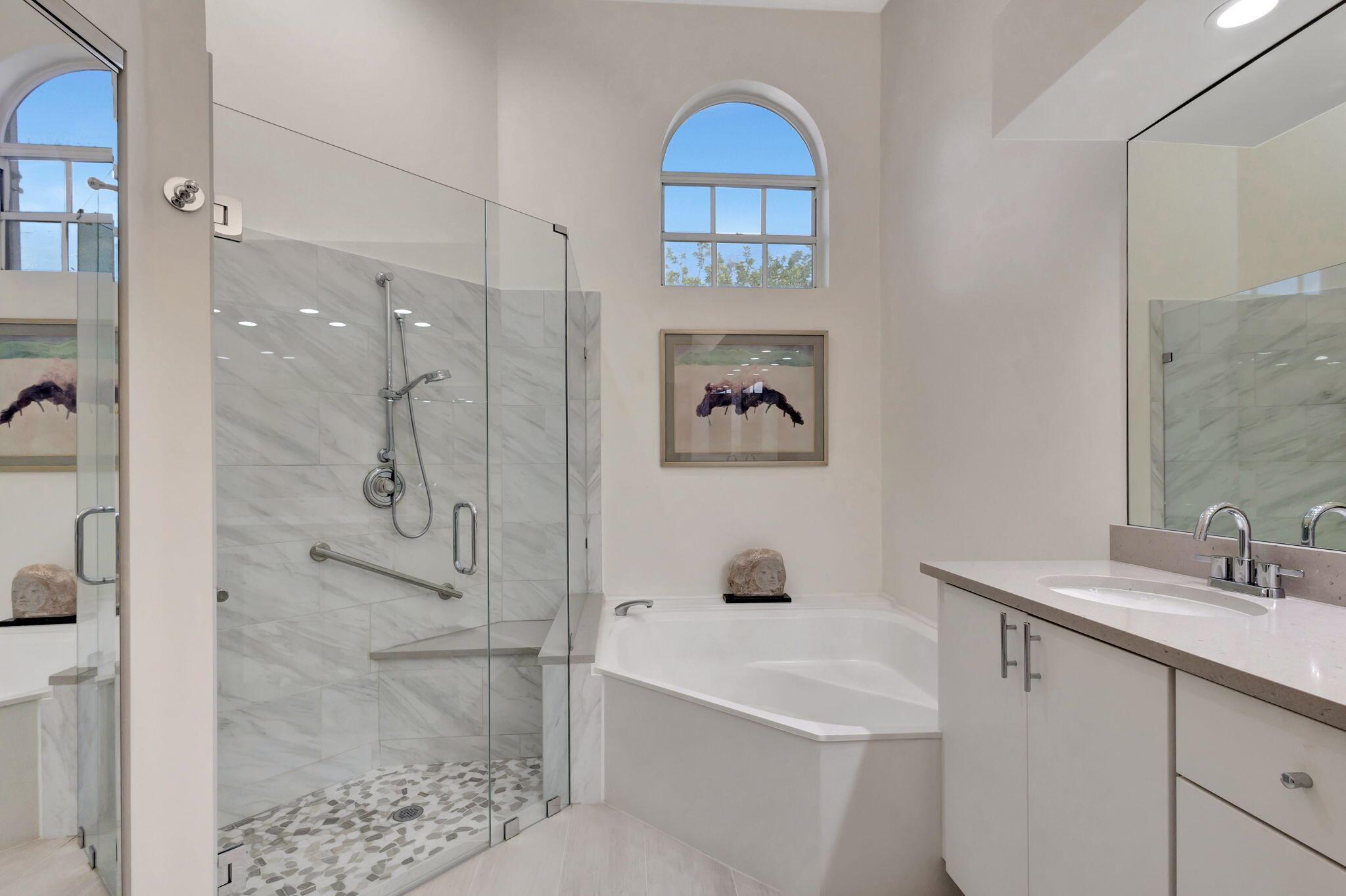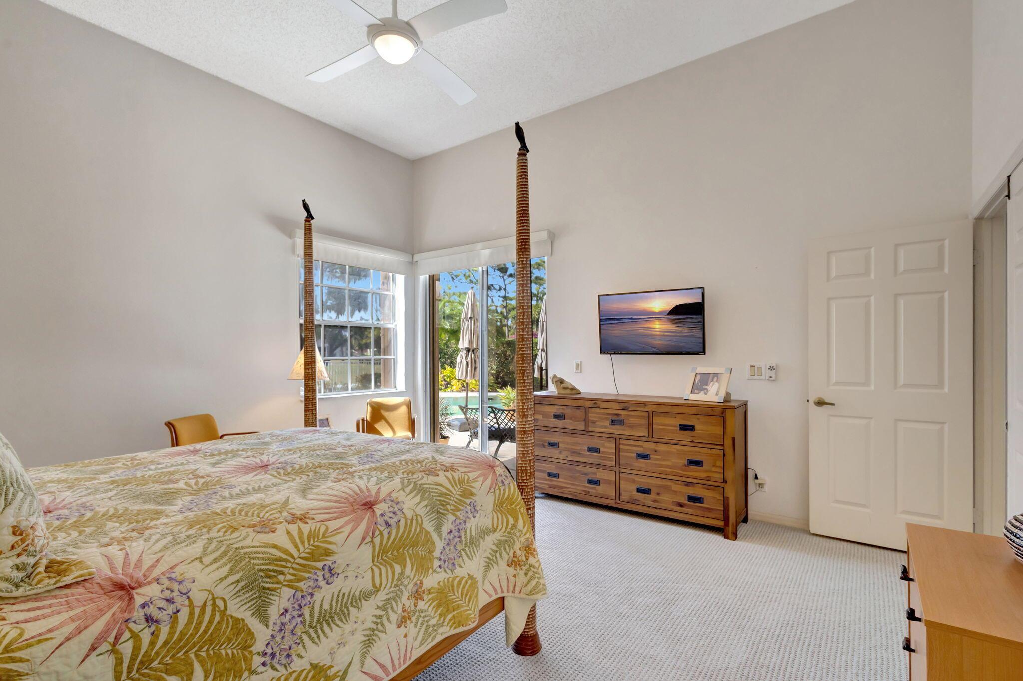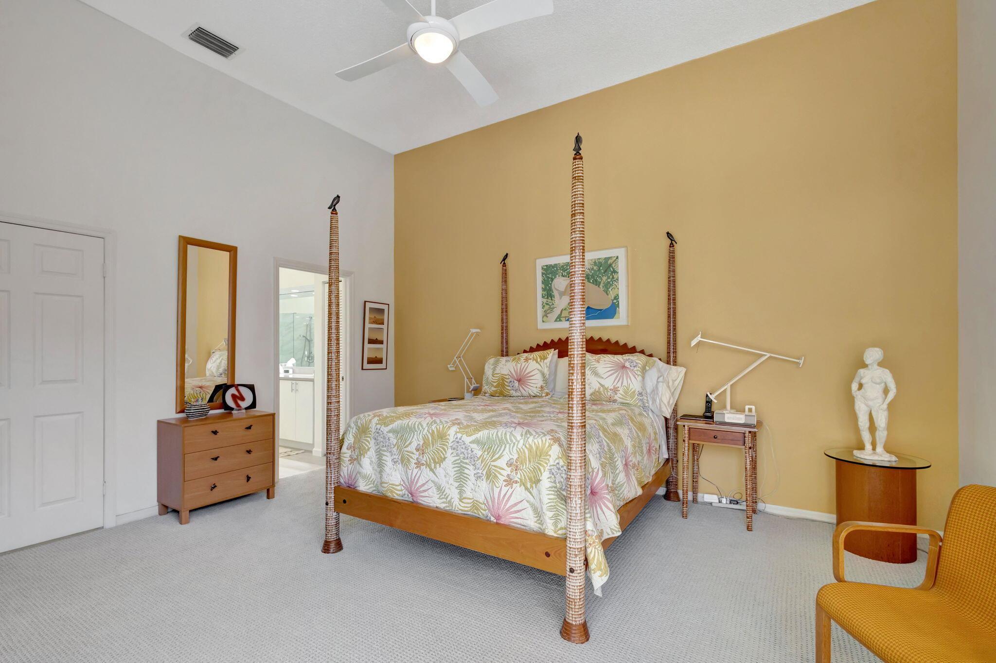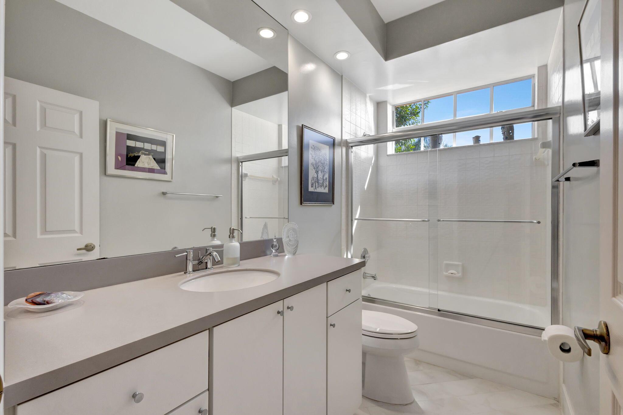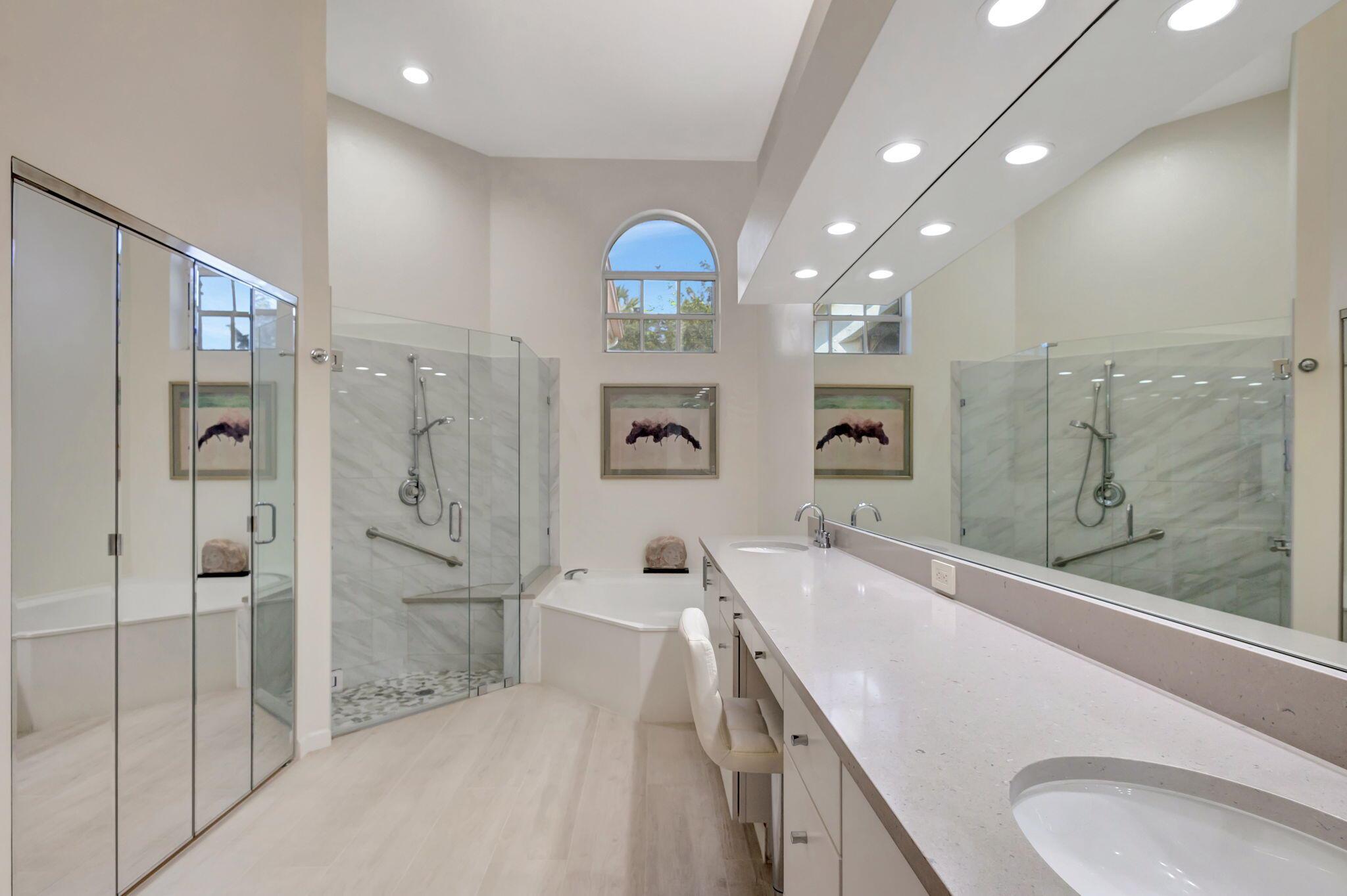 This beautifully designed lush landscaped Pool home serves light and bright with 2-bedrooms, 2-baths and a den that can be easily converted to 3rd bedroom, baths remodeled. Perfectly situated along a double fairway in the prestigious Eastpointe Country Club of Palm Beach Gardens. With western exposure, this home offers breathtaking sunsets over the lush golf course. Step inside to an open-concept floor plan with vaulted ceilings filling the home with natural light, featuring a split-bedroom layout for privacy and comfort. The chef’s kitchen boasts high-end appliances, ample counter space, island for prepping and an eat-in breakfast area, making it perfect for both casual and gourmet dining. Adjacent to the kitchen, a formal dining room provides an elegant setting for entertaining.