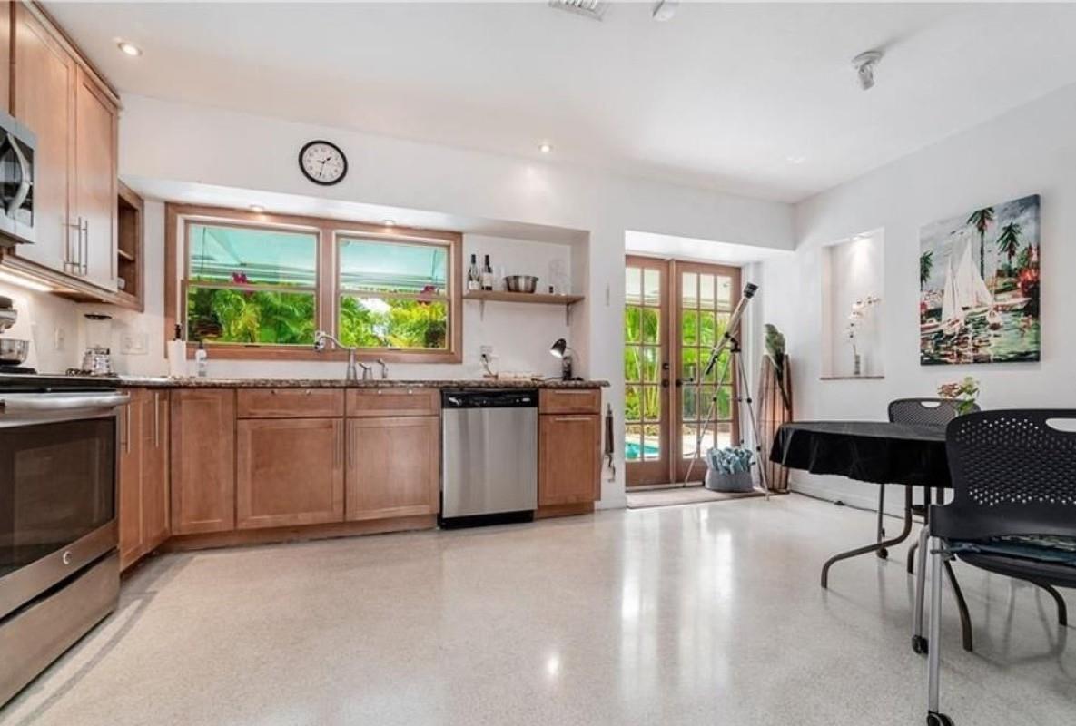 Beautiful Remodeled Riverfront home with private pool and lush tropical landscaping. Fruit trees, goldfish pond, large concrete pool deck, new boat dock with davit and whips on Middle River with ocean access! Restored terrazzo floors and updated kitchen and bathrooms, Brand new HVAC, water main line, wiring, panels, and tankless hot water heater. Largest lot on the street with room for second cottage/office. Plenty of parking for a boat and 8 cars. Open split floorplan. 3×2 with carport.