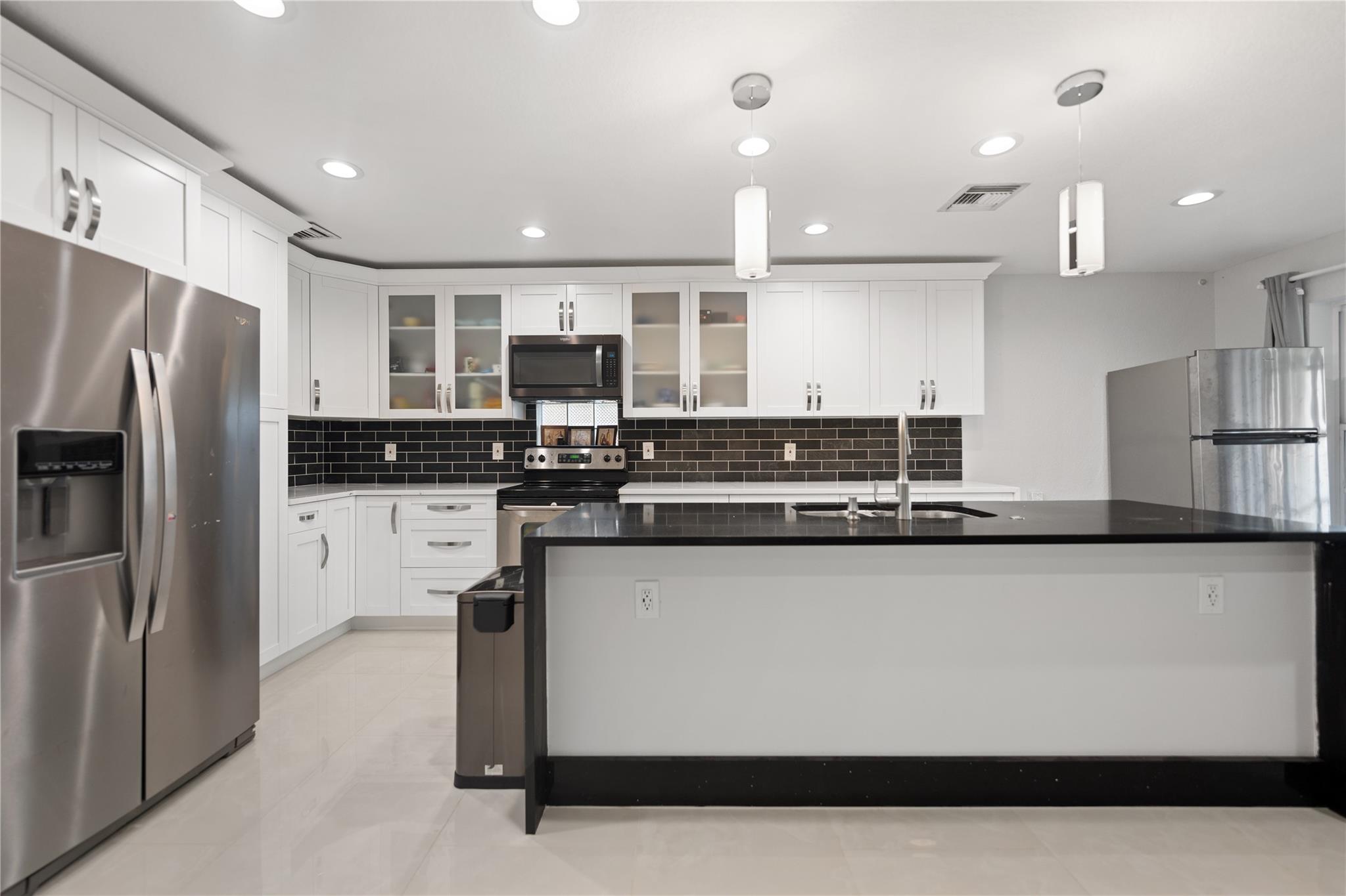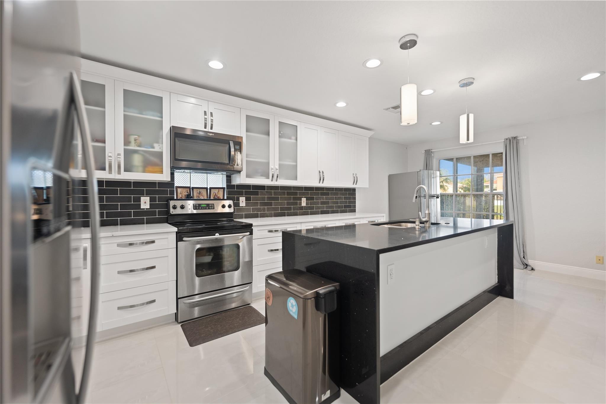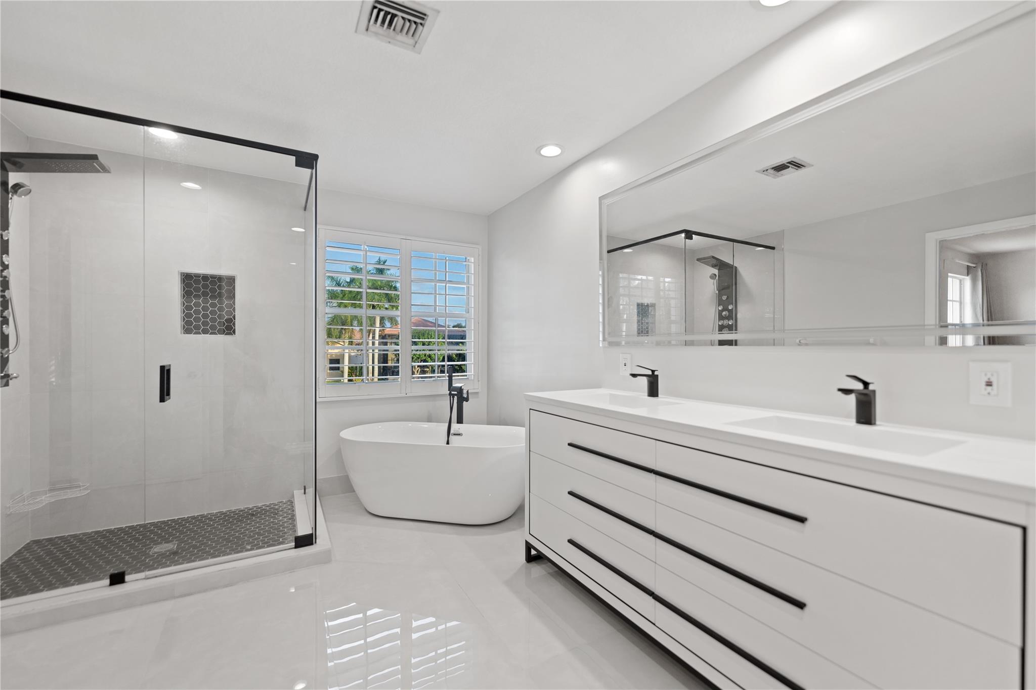 This beautifully updated 2-story home with a Brand New Roof, is a true gem, featuring luxurious, contemporary finishes throughout. Step inside to discover porcelain tiles, soaring vaulted ceilings, and a bright, open layout that makes the home feel even more spacious. The heart of the home is the brand-new kitchen, showcasing sleek quartz countertops & white shaker cabinets. The spa-like bathroom has been completely transformed with a frameless shower & a stunning free-standing tub. Retreat to the Primary bedroom, where you’ll find a custom-built closet that offers ample storage space and organization. The garage is equally impressive, with epoxy flooring and custom built-in storage. Step outside to your private oasis: a huge backyard with a beautiful pergola, brand new fence & lake views.