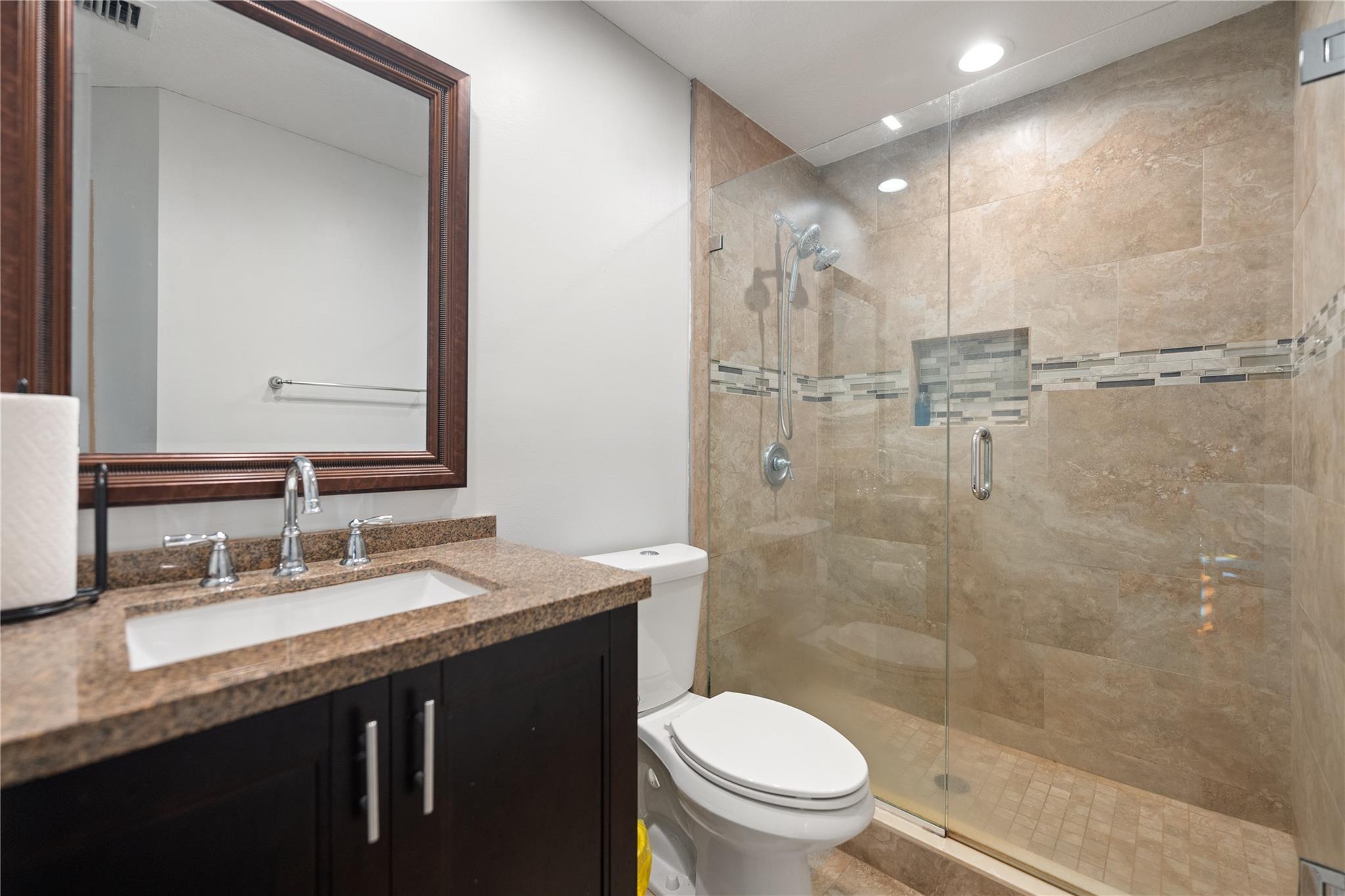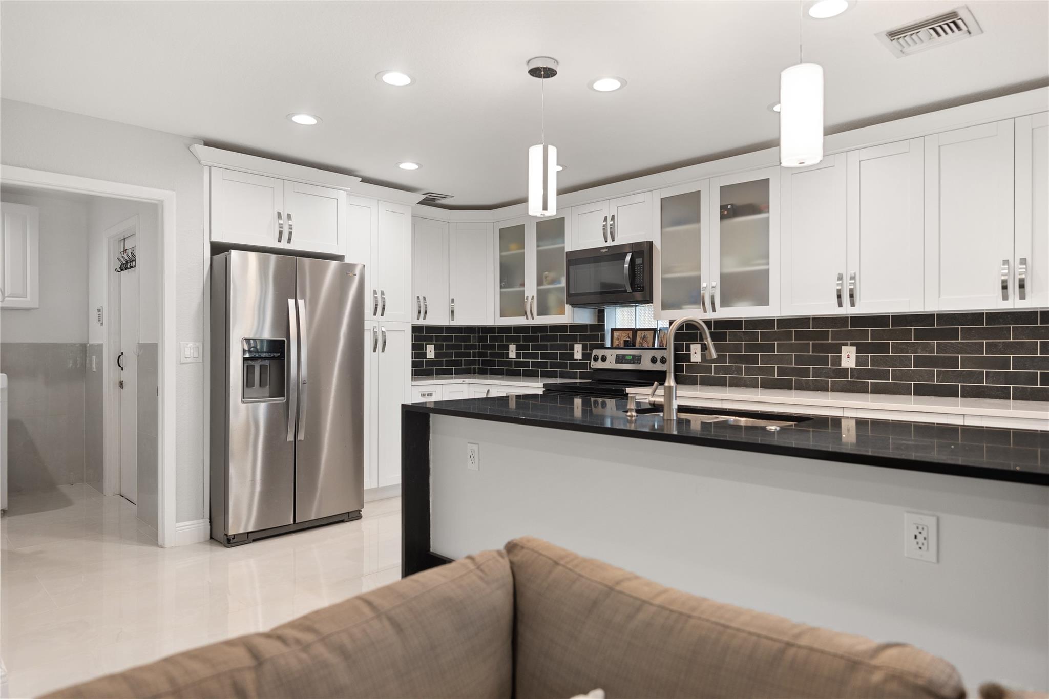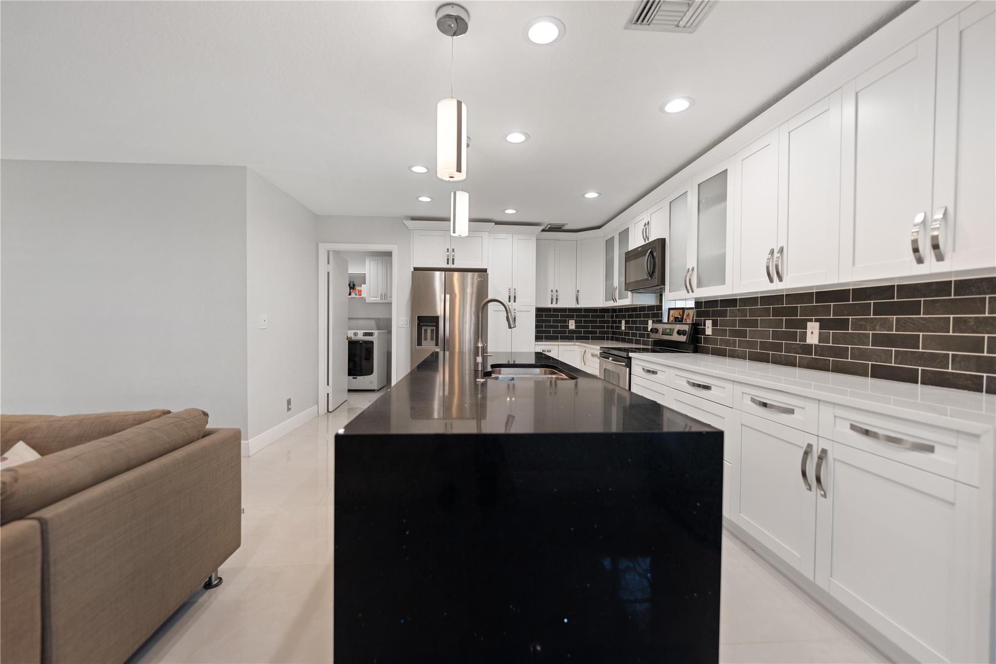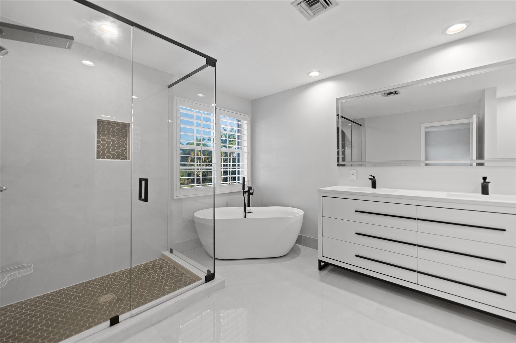 This beautifully updated 2-story home with a Brand New Roof, is a true gem, featuring luxurious, contemporary finishes throughout. Step inside to discover porcelain tiles, soaring vaulted ceilings, and a bright, open layout that makes the home feel even more spacious. The heart of the home is the brand-new kitchen, showcasing sleek quartz countertops & white shaker cabinets. The spa-like bathroom has been completely transformed with a frameless shower & a stunning free-standing tub. Retreat to the Primary bedroom, where you’ll find a custom-built closet that offers ample storage space and organization. The garage is equally impressive, with epoxy flooring and custom built-in storage. Step outside to your private oasis: a huge backyard with a beautiful pergola, brand new fence & lake views.