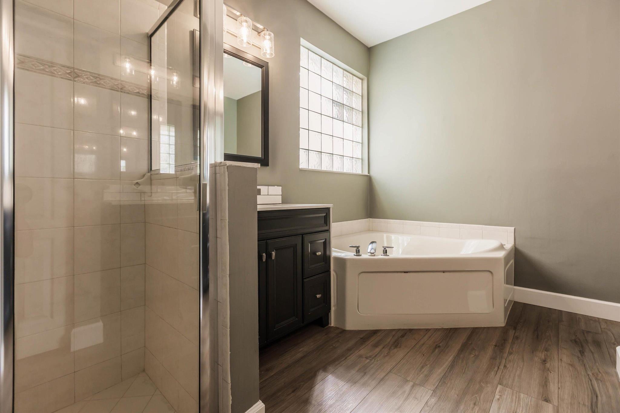 Updated 4-Bedroom Home with Lake Views in Gated Laguna Isles!This completely updated 4-bedroom, 2.5-bathroom home in Laguna Isles features a new roof (2023), modern finishes, and a split floor plan for privacy. The primary suite is on the first floor, offering a spa-like bath and ample closet space. Enjoy formal living and dining areas, plus a stylish kitchen that opens to a spacious family room with stunning lake views. Located in a centrally gated community, close to top schools, shopping, dining, and highways. Move-in ready–schedule your showing today!