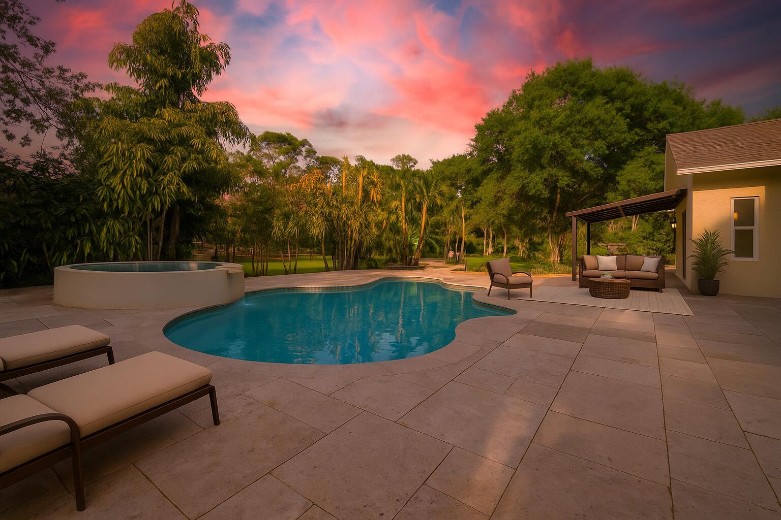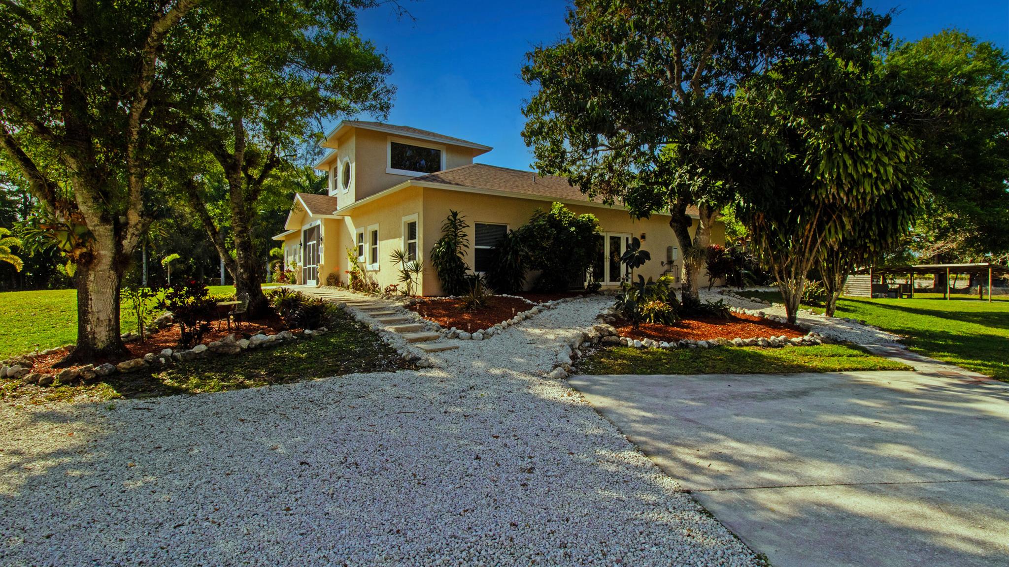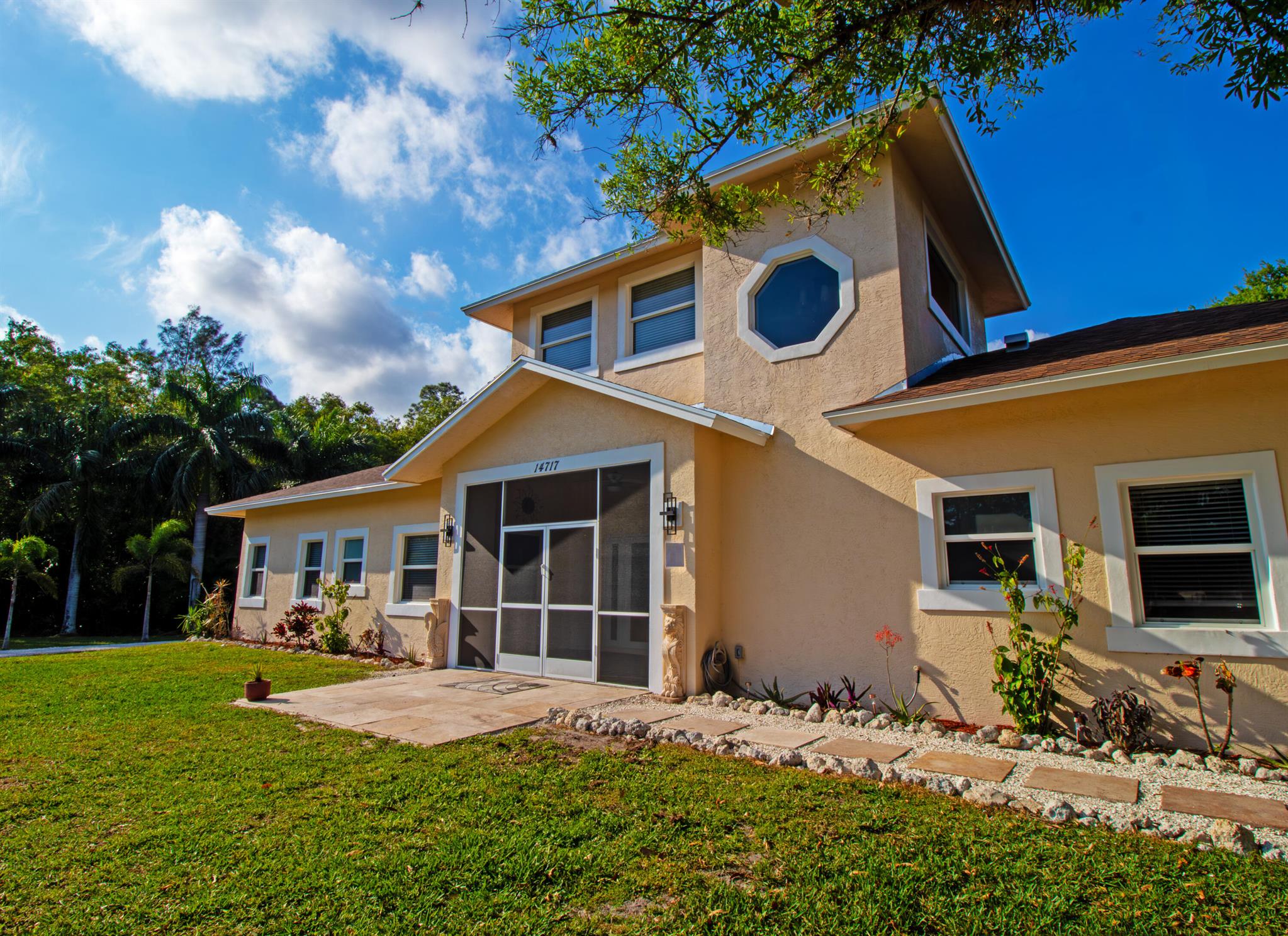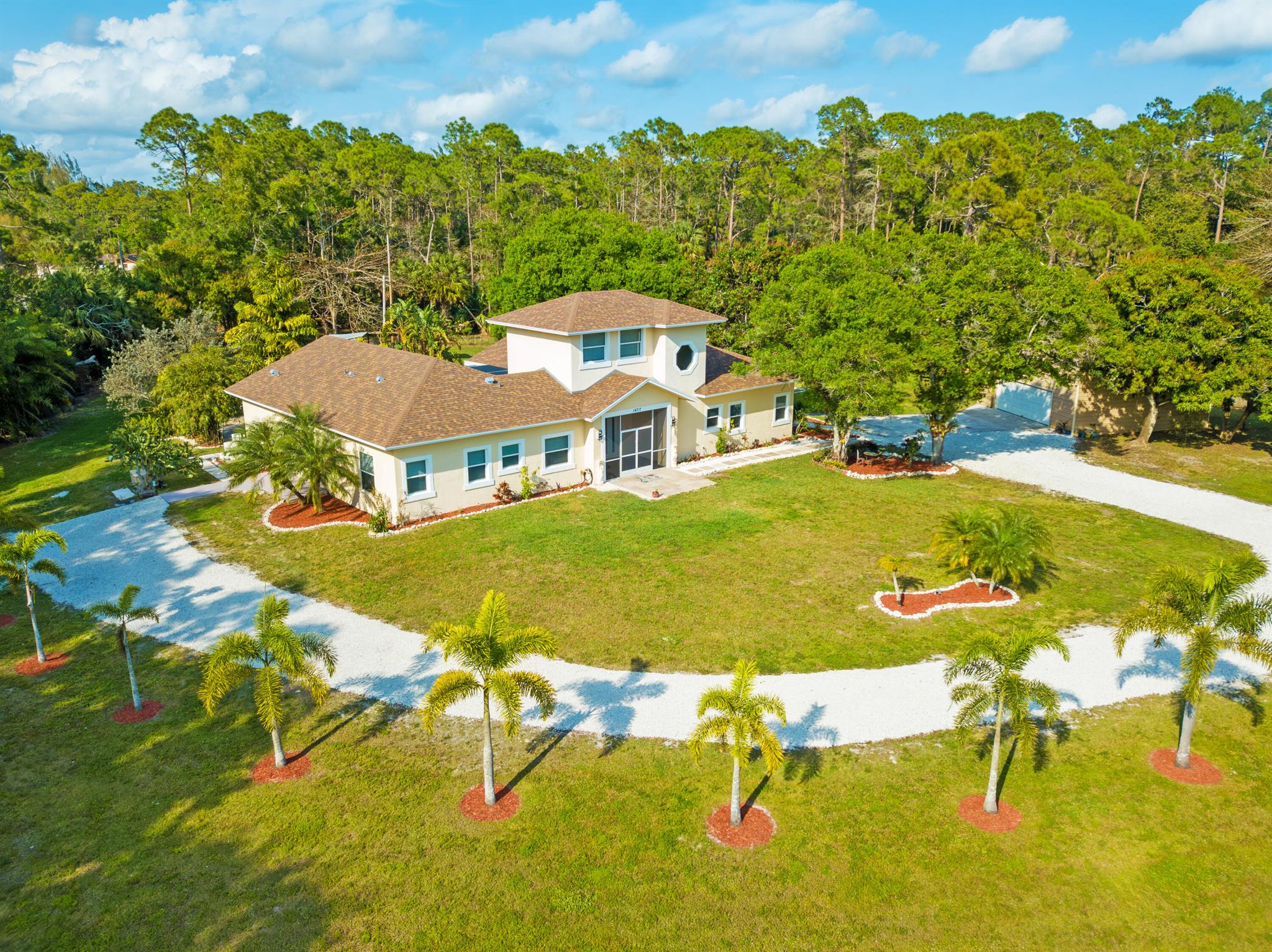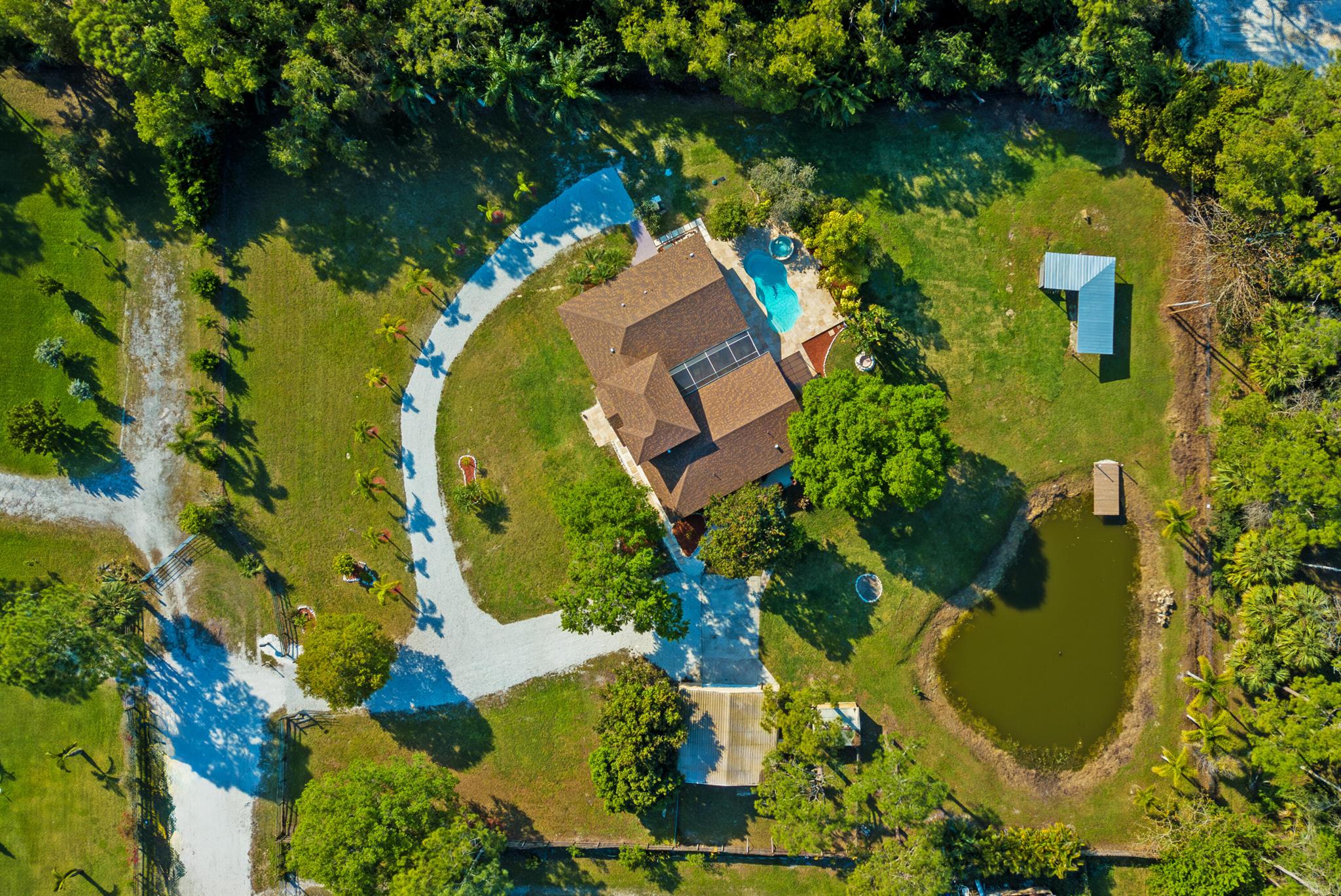 One or more photo(s) was virtually staged. This updated custom estate home located on a secluded cul-de-sac presents the best of country and upscale living. Designed for entertaining, relax and enjoy the great room, family room with bar, as well a free-form pool with raised hot-tub and waterfall. The new screened in courtyard can be accessed from the kitchen, master, & family room areas and adjoins the pool. New Travertine surrounds the swimming pool & courtyard. The home has a new roof with a closed cell insulation system, new high impact windows & doors, whole house generator, & two on-demand water heaters. New porcelain tile throughout the first floor & Granite countertops in kitchen & baths. Open stable & pond with dock. Large detached garage with work shop