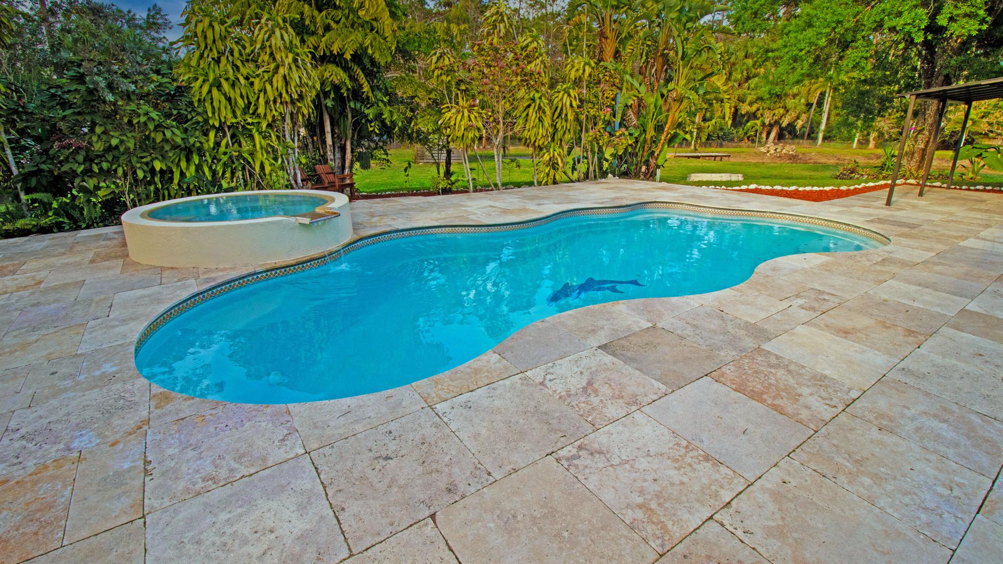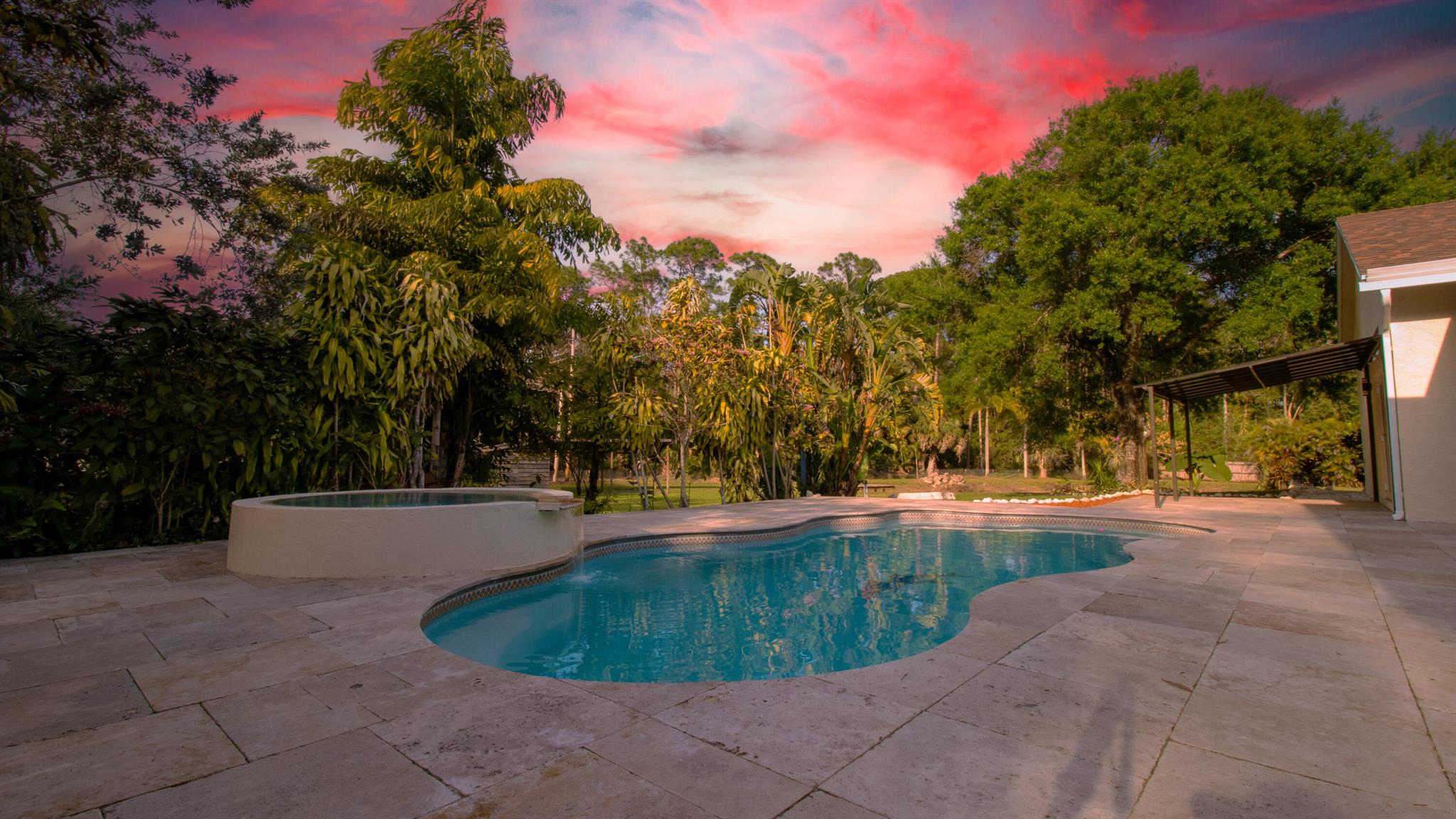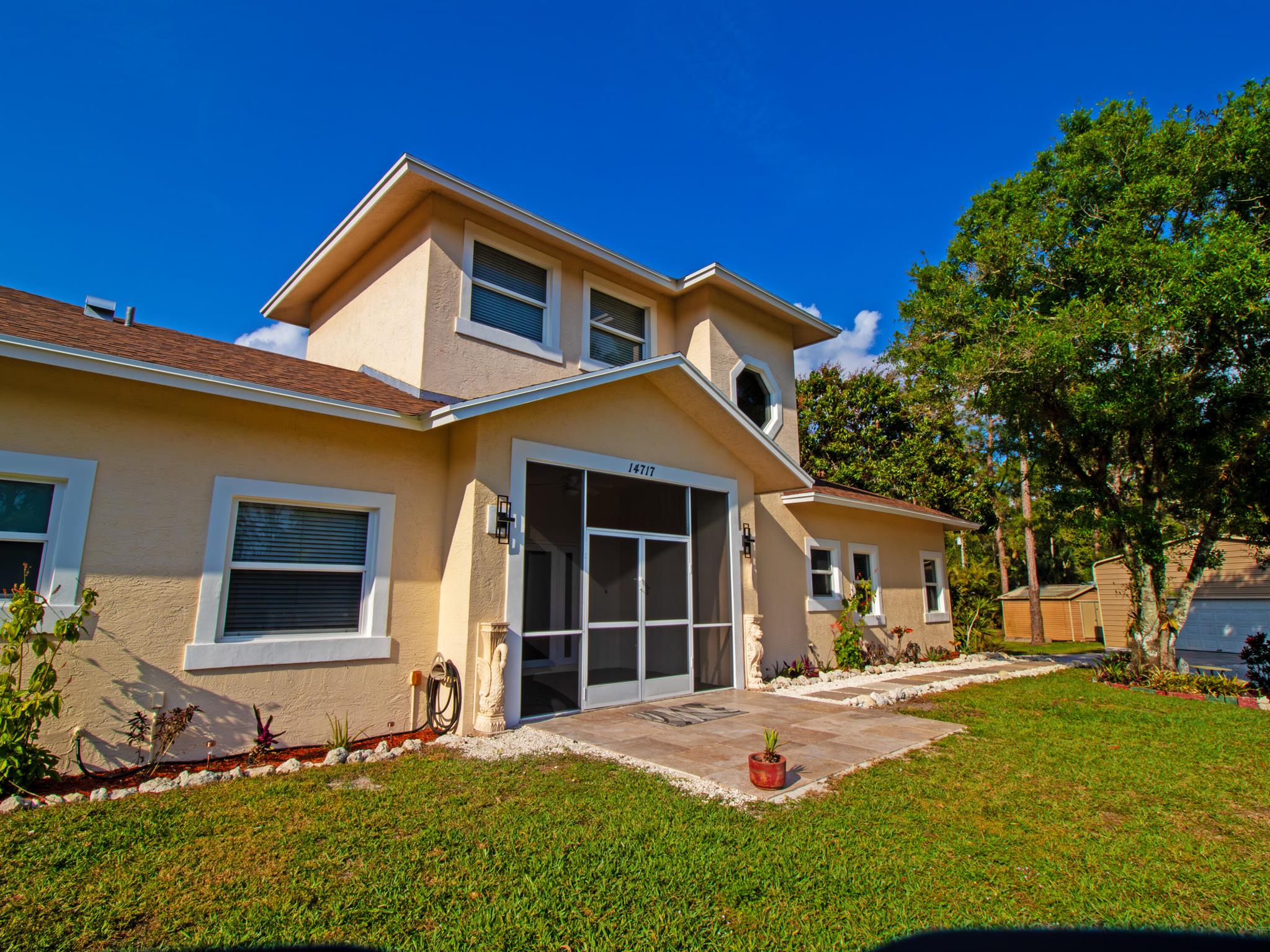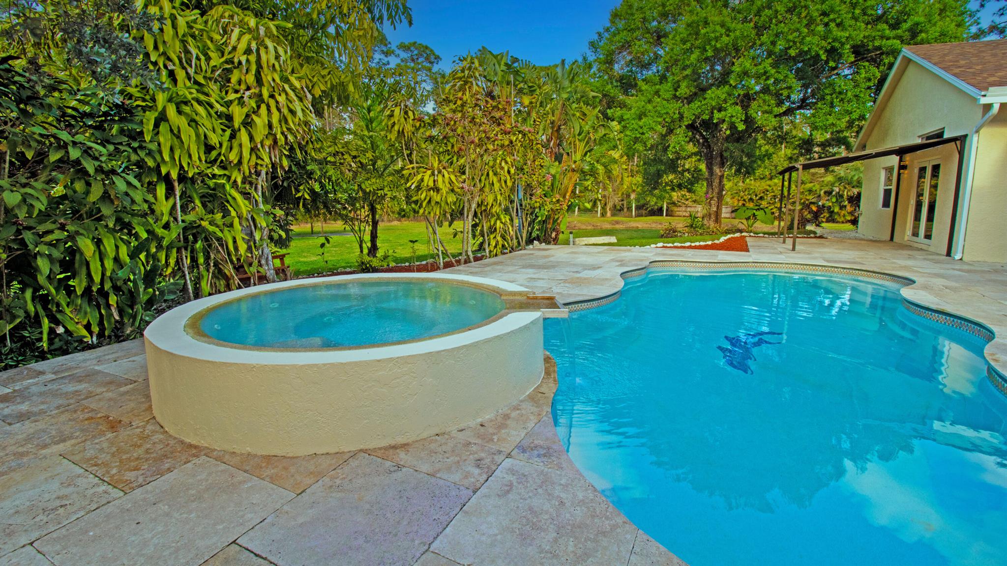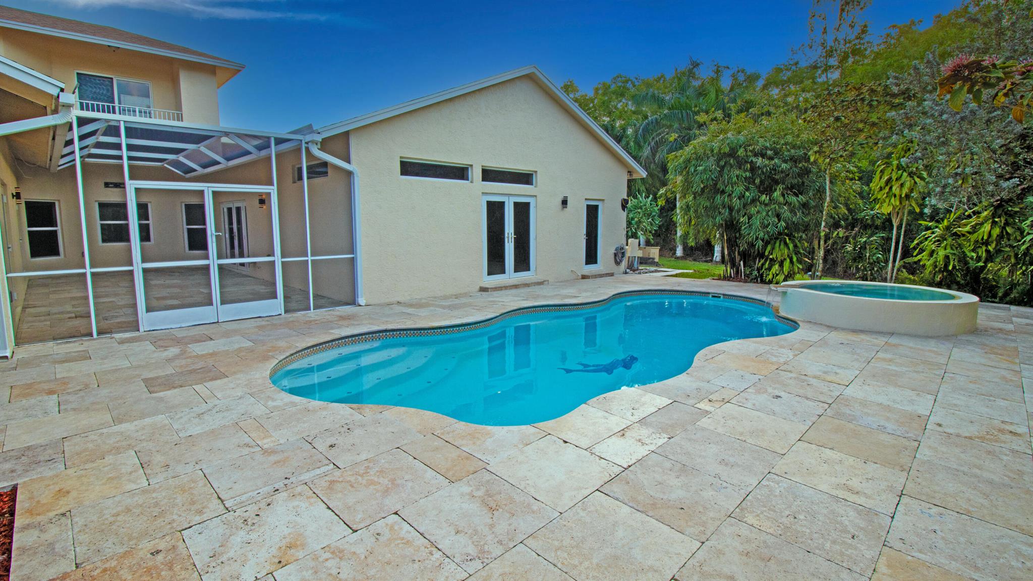 One or more photo(s) was virtually staged. This updated custom estate home located on a secluded cul-de-sac presents the best of country and upscale living. Designed for entertaining, relax and enjoy the great room, family room with bar, as well a free-form pool with raised hot-tub and waterfall. The new screened in courtyard can be accessed from the kitchen, master, & family room areas and adjoins the pool. New Travertine surrounds the swimming pool & courtyard. The home has a new roof with a closed cell insulation system, new high impact windows & doors, whole house generator, & two on-demand water heaters. New porcelain tile throughout the first floor & Granite countertops in kitchen & baths. Open stable & pond with dock. Large detached garage with work shop