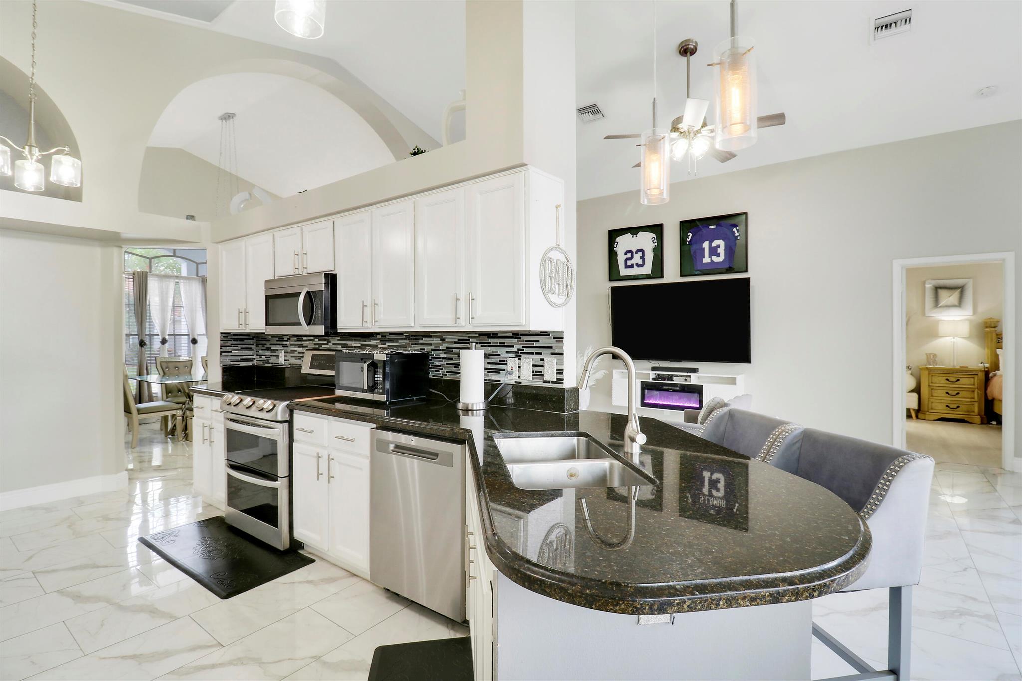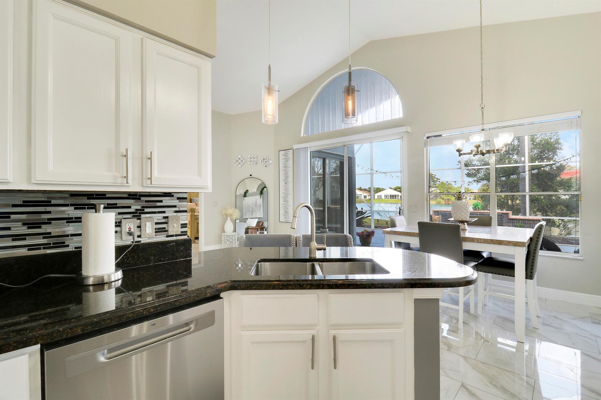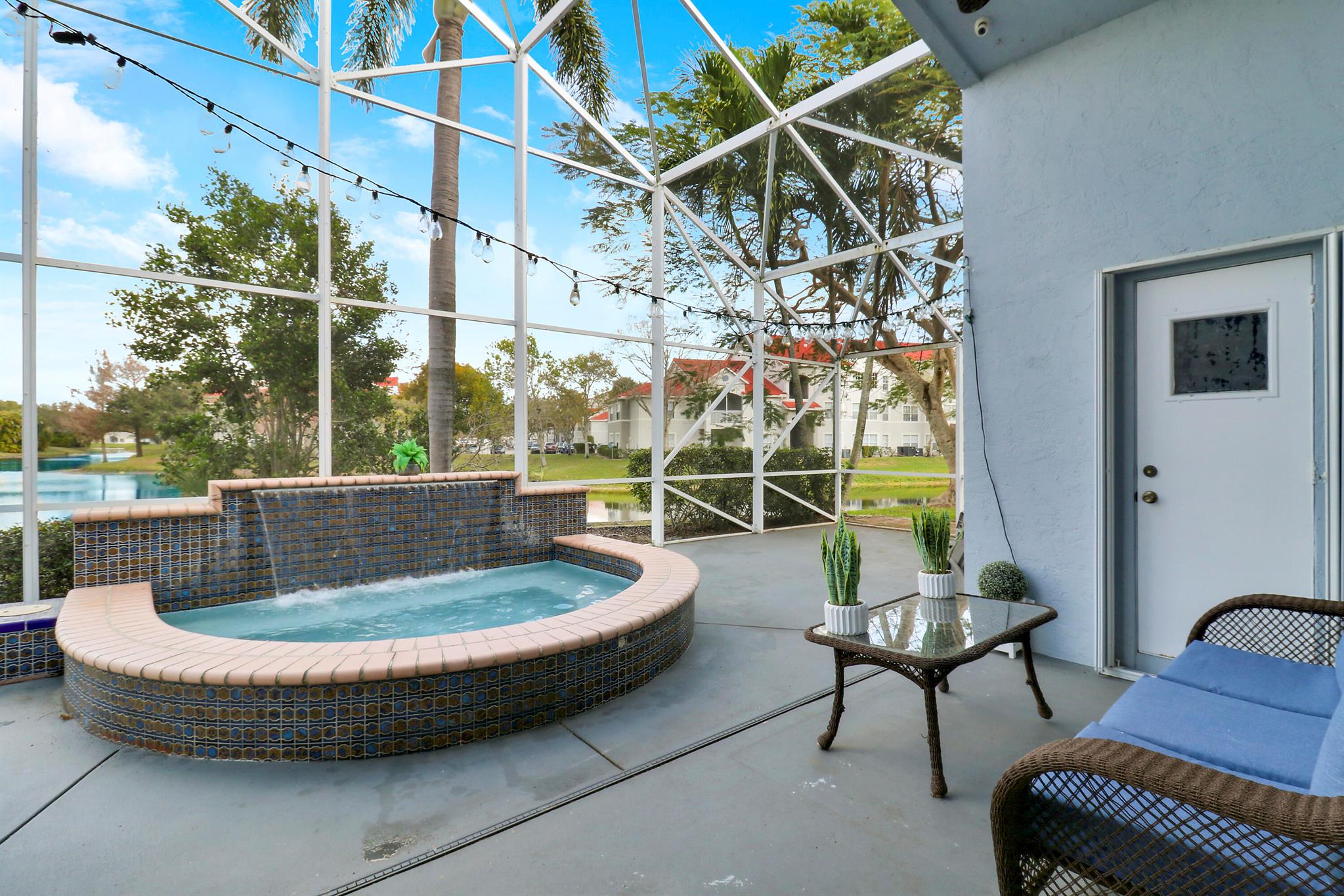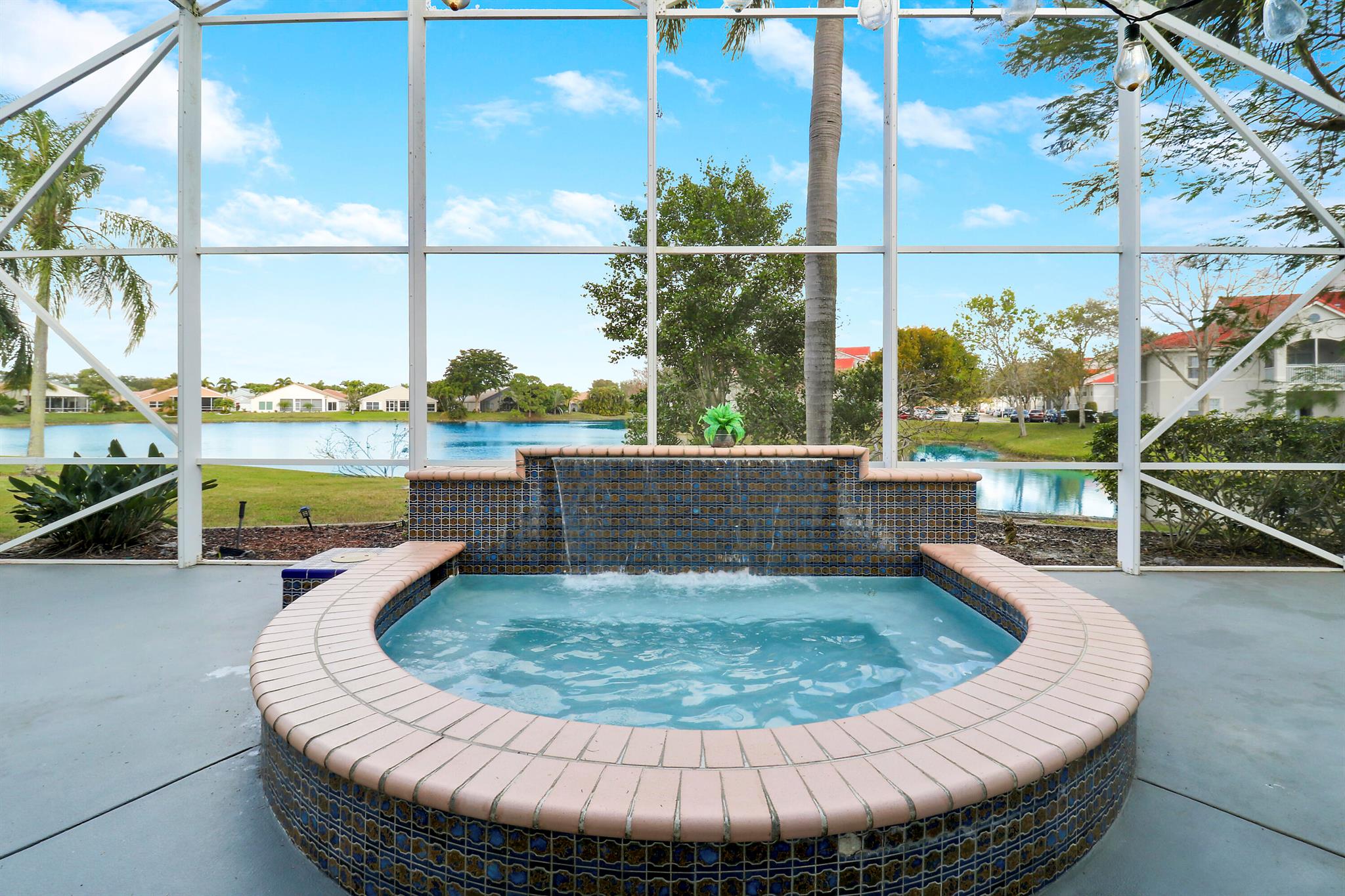 PRICED TO SELL! Lovely 4-bedroom 2 bath lakefront home in sought after River Bridge. This home boasts the following upgrades: 2024 ROOF, UPDATED KITCHEN BACKSPLASH, APPLIANCES, FLOORS & GUEST BATHROOM. Additional features include a spacious SCREENED IN PATIO w/A LARGE INGROUND JACUZZI w/WATERFALL OVERLOOKING THE LAKE. Accordion shutters throughout and so much more. Owner is motivated. Call today for your private tour.