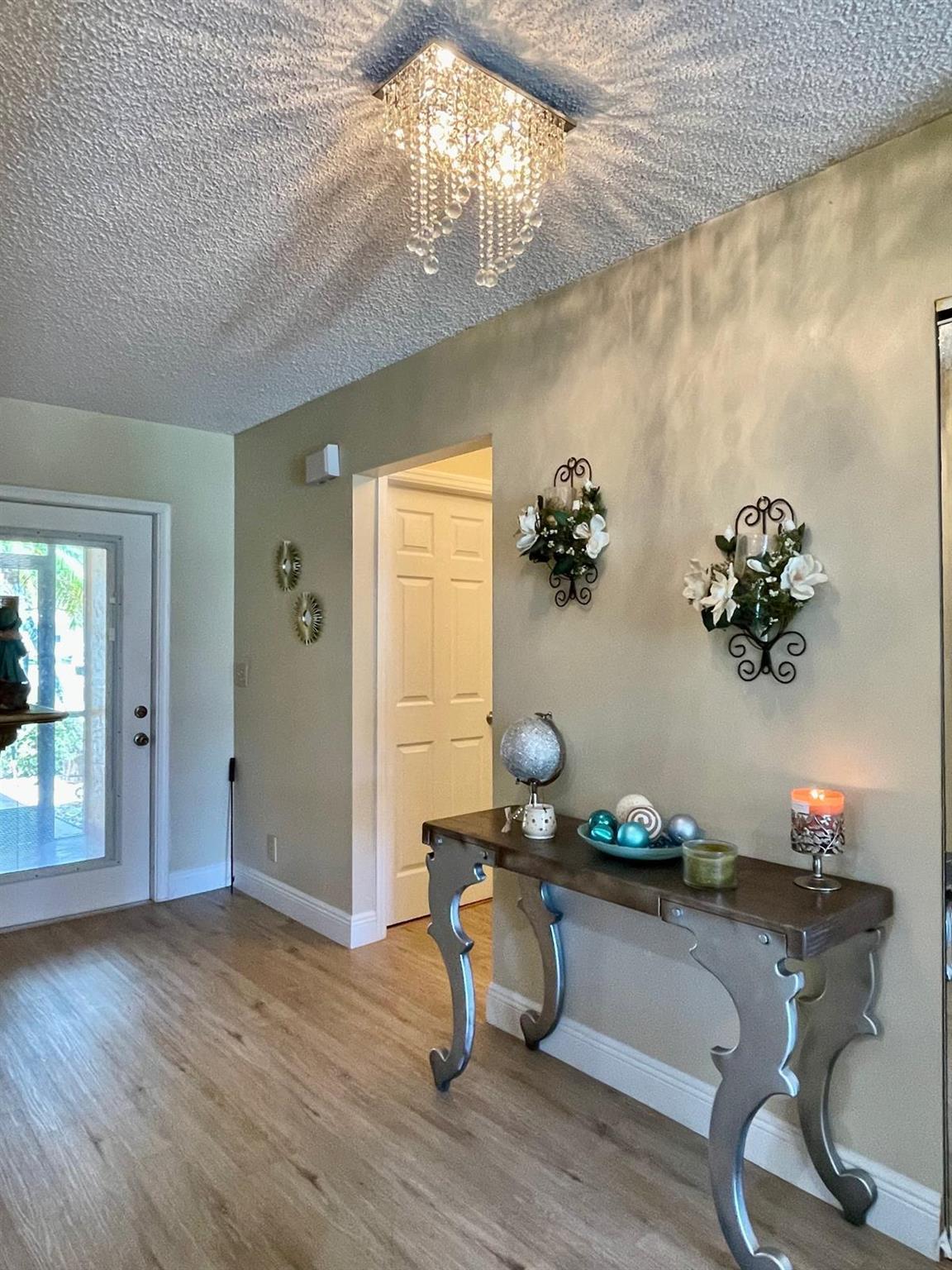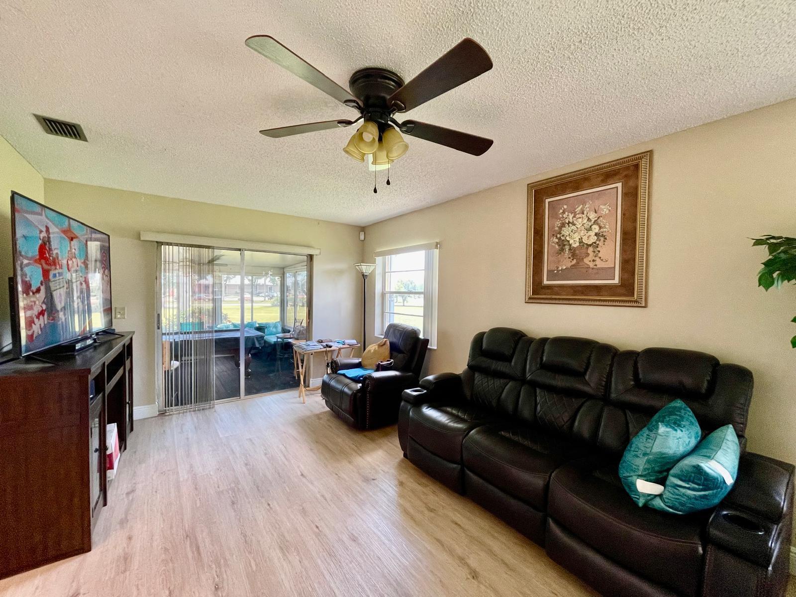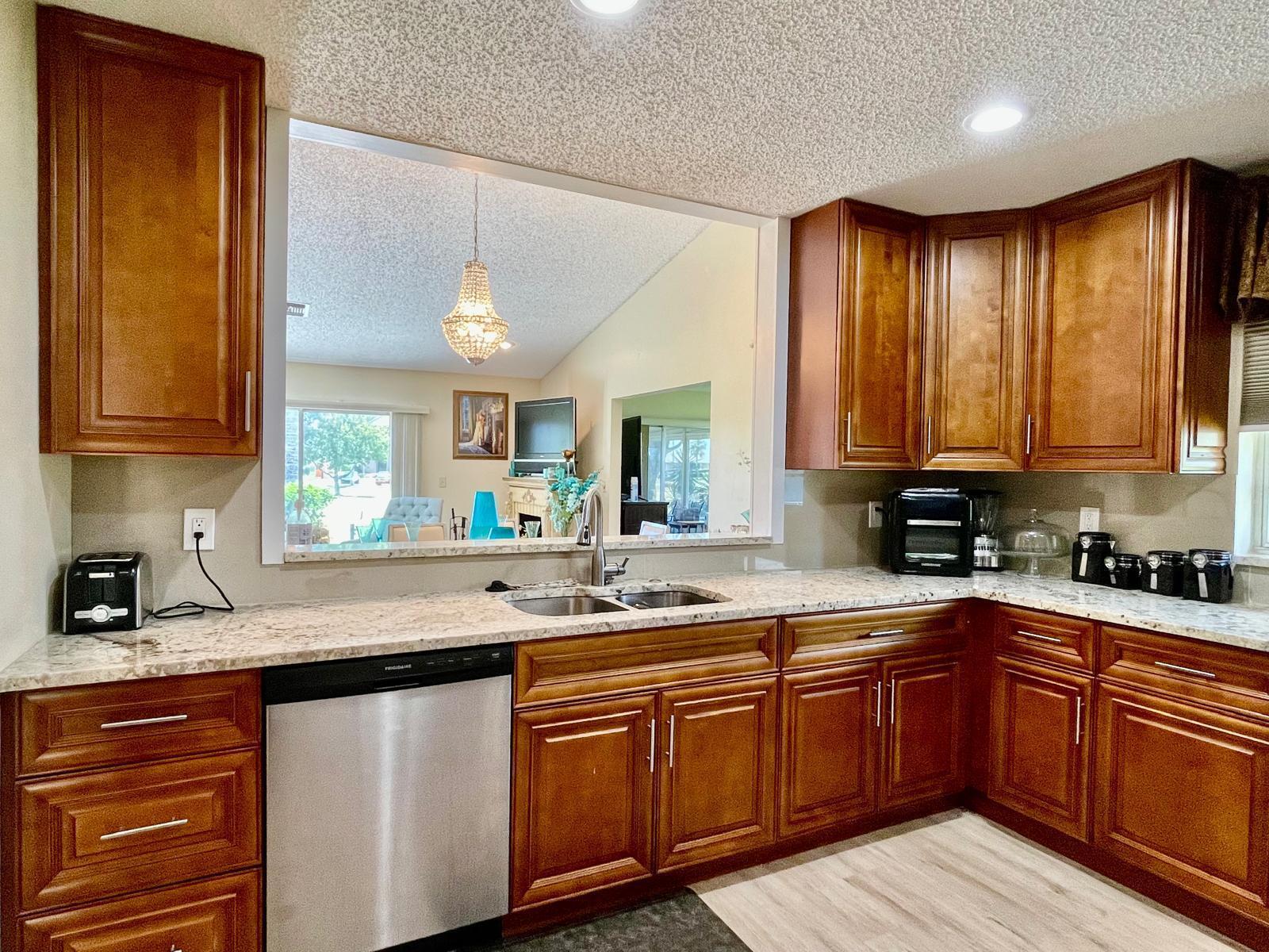 Don’t miss out in owning your own piece Oasis! Single-family home with large Den/Florida room, 1 car garage, newer 2021 roof, located in well maintained gated golf community (No membership required). Beautiful grounds and lakes surround you followed by a beautiful golf course view. Home is newly renovated – kitchen and both bathrooms are spectacular, gorgeous flooring throughout, spacious covered patio lets you enjoy the Florida evenings. Volume ceilings, tons of natural light for your spacious floor plan! This home has been loved & well cared for!
