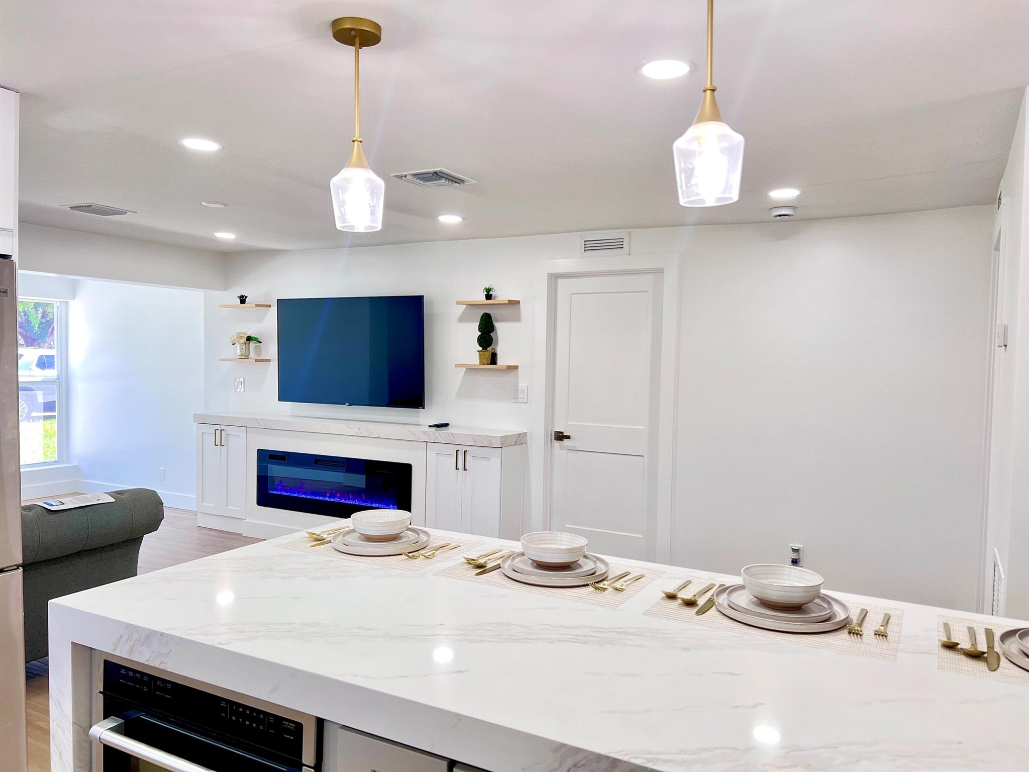Step into luxury with this fully renovated 4 bed, 2 bath in the Heart of Delray Beach offering 1,698 of total Sqft Whether you’re looking for your forever home or the perfect high-performing Airbnb, this home checks every box. Located just steps from vibrant Atlantic Avenue and world-renowned Delray Beach, this turnkey property features: 2025 Brand New Roof 2025 Hurricane-Impact Windows New Electrical, Plumbing, and HVAC System + Ductwork Open Concept Living with Zen Fireplace Gourmet Chef’s Kitchen with 36” cooktop, built-in oven, microwave drawer, pot filler, and statement 3in quartz countertops.