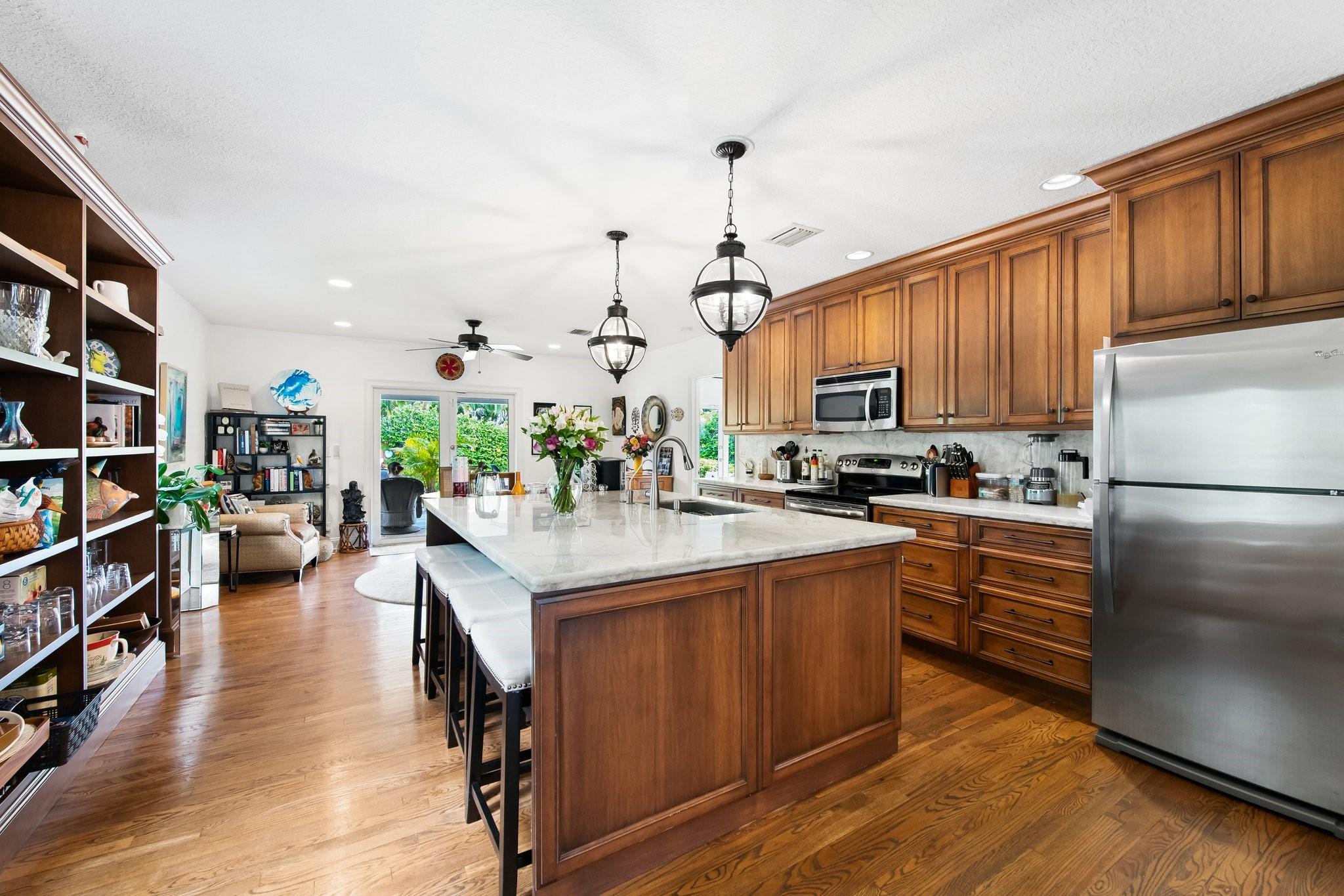 This elegant 3-bedroom, 2-bathroom home offers 1,736 square feet of living space, featuring hardwood floors and a spacious kitchen with a large island. Enjoy the added family room and expansive master suite for extra comfort. Outside, relax by the expansive pool, covered patio, and outdoor kitchen on an 8,100 square foot lot. Located on a tree-lined street, you’re close to Fresh Market, Flagler Village, Las Olas shops, and the beach. Experience casual elegance and modern amenities in this exceptional home.
