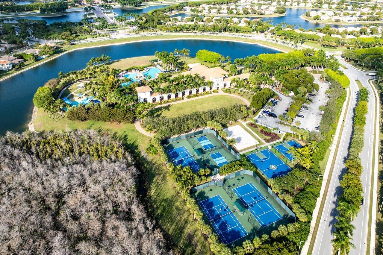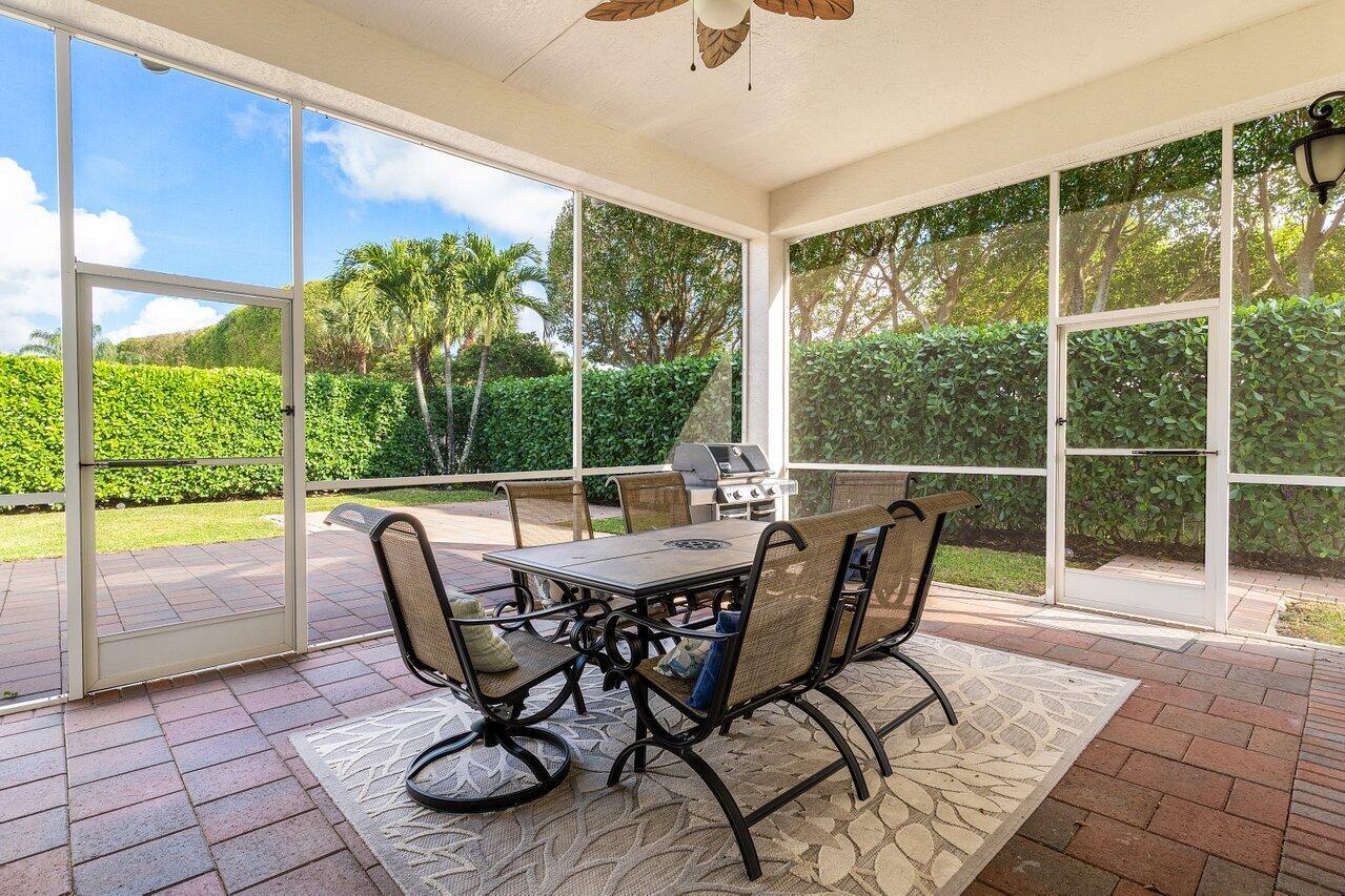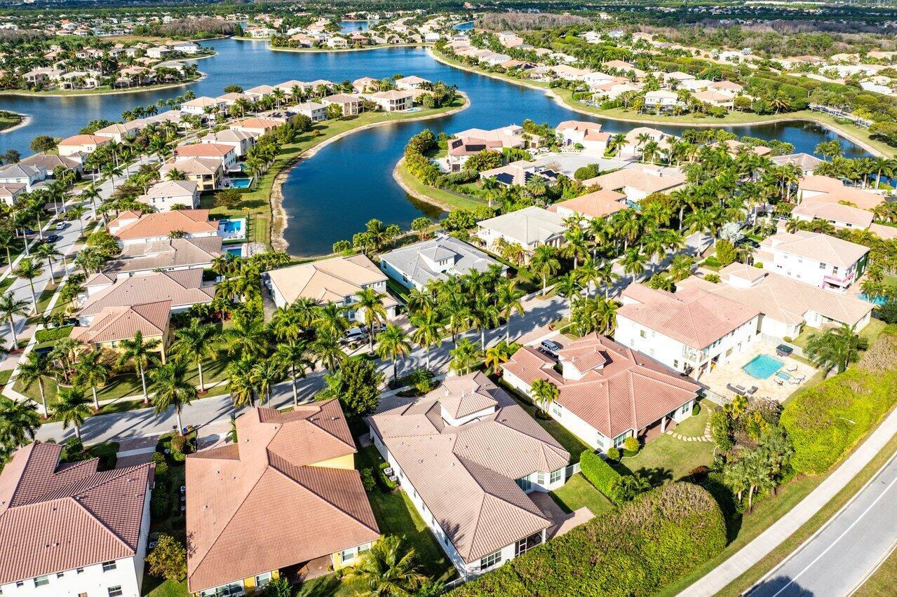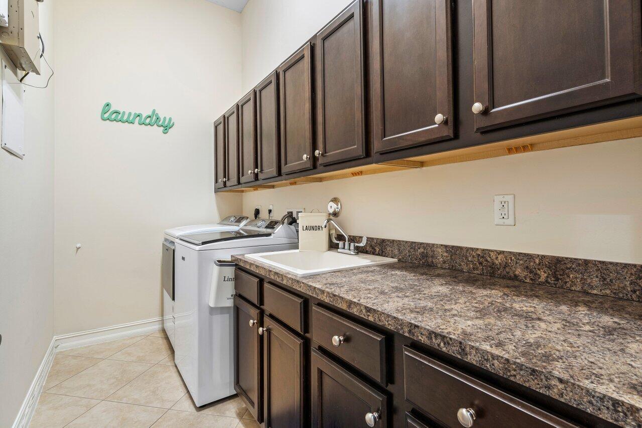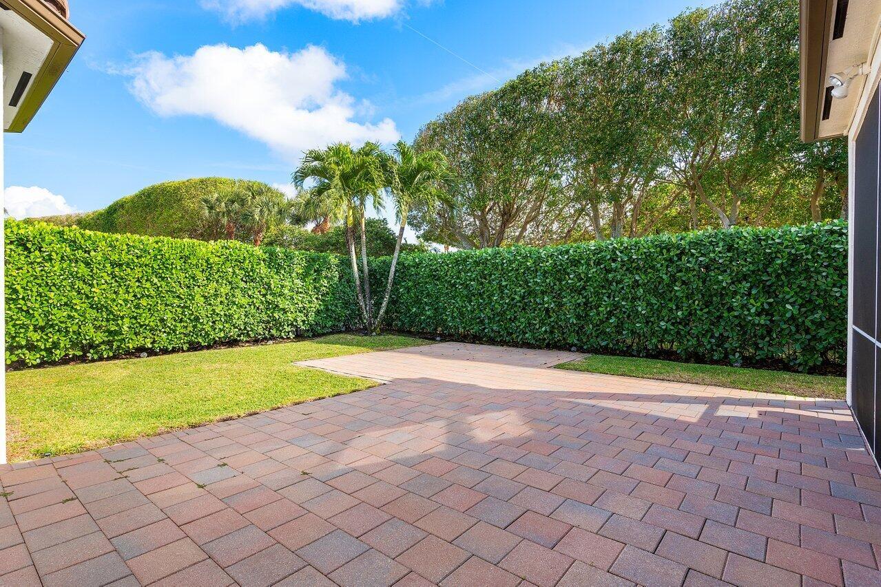 Welcome to this exquisite single-story, 5-bedroom, 4.5-bathroom estate with a 3-car garage, nestled in the highly sought-after community of Olympia. From the moment you arrive, the lush tropical landscaping and oversized circular paver driveway create an impressive entrance, setting the stage for the elegance within. Step inside to find soaring 11-foot ceilings, diagonal tile flooring, upgraded baseboards, and tray ceilings with intricate crown molding, all enhancing the home’s luxurious feel. Natural light floods through large plantation-shuttered windows, illuminating the thoughtfully designed spaces. The formal living room features an electric fireplace, recessed LED lighting, and a refined ambiance, perfect for welcoming guests. The adjacent formal dining room, with its