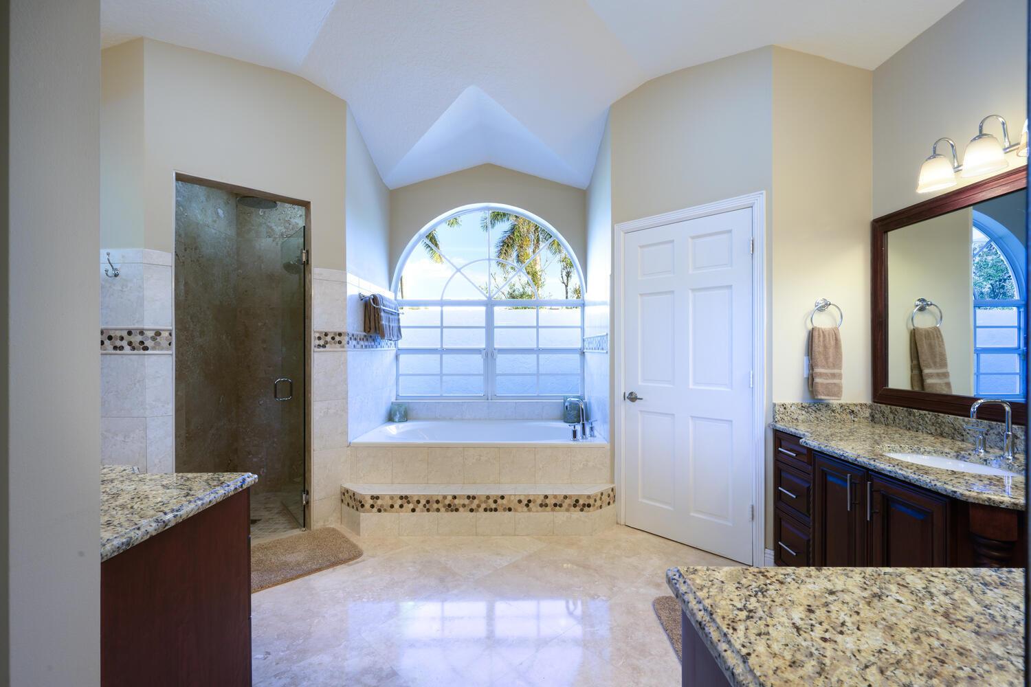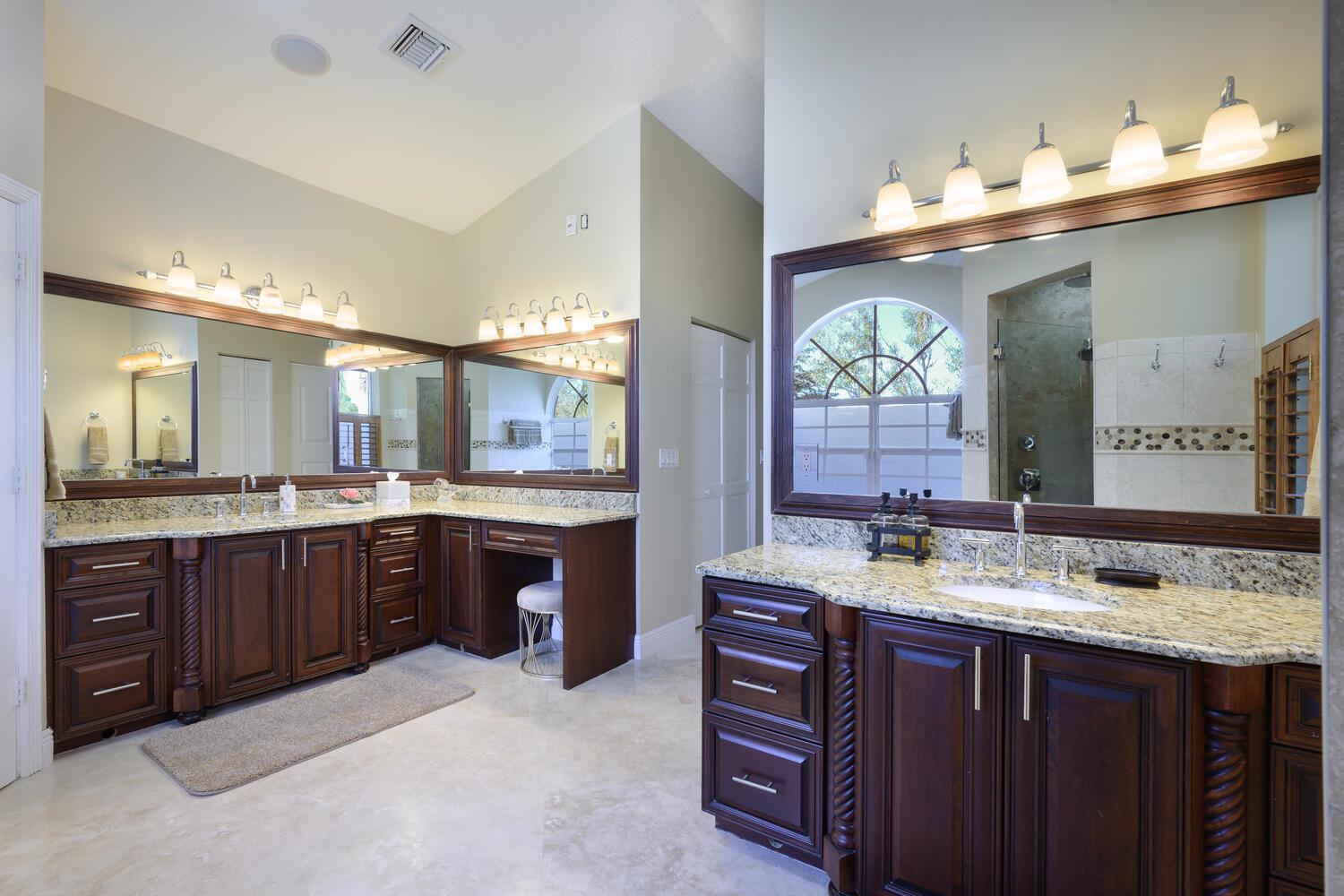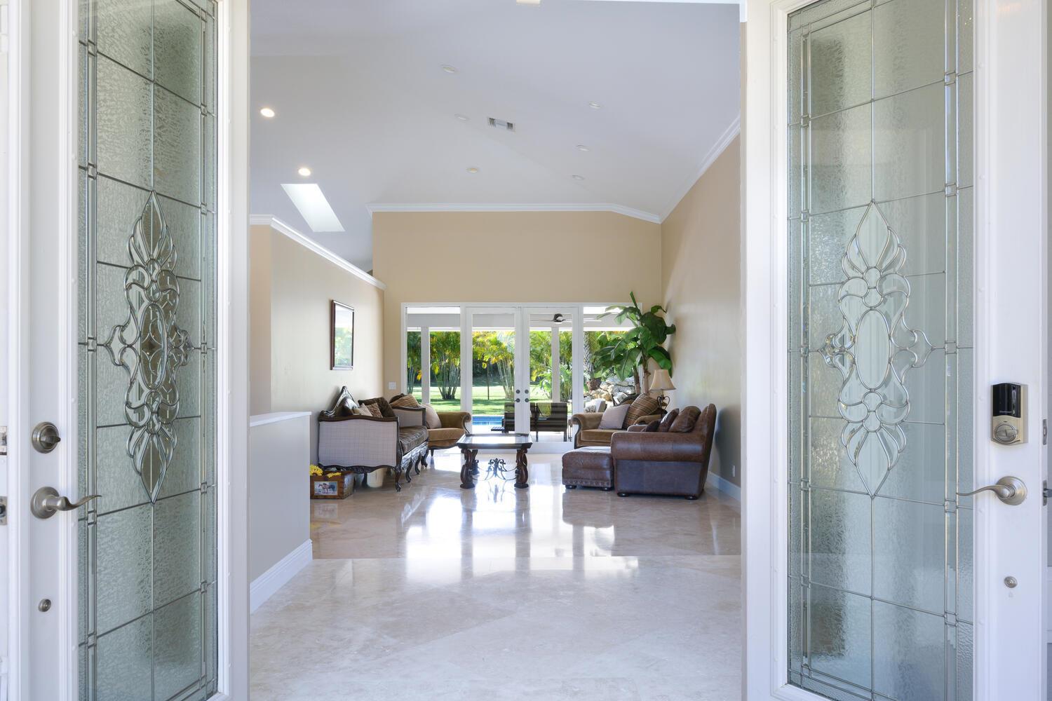 Experience luxury living in this four-bedroom, three-bath, two-car garage pool home, located in the sought after community of Steeplechase. The traditional design, CBS structure, and front East exposure provide an inviting ambiance on this expansive 1.31-acre lot. New flat concrete tile roof $76,230 with 5 year warranty, partial impact windows, and doors and captivating views of the garden, pool, and water feature. This residence boasts marble and tile flooring throughout, with the living room featuring sliders to the outside, vaulted ceiling, recessed lighting, and crown molding. The family room exudes sophistication with marble floors, vaulted ceiling, skylights, and a full bar equipped with built-in cabinets, wine cooler, sink, wine racks, and granite countertops.