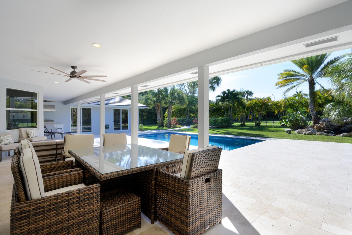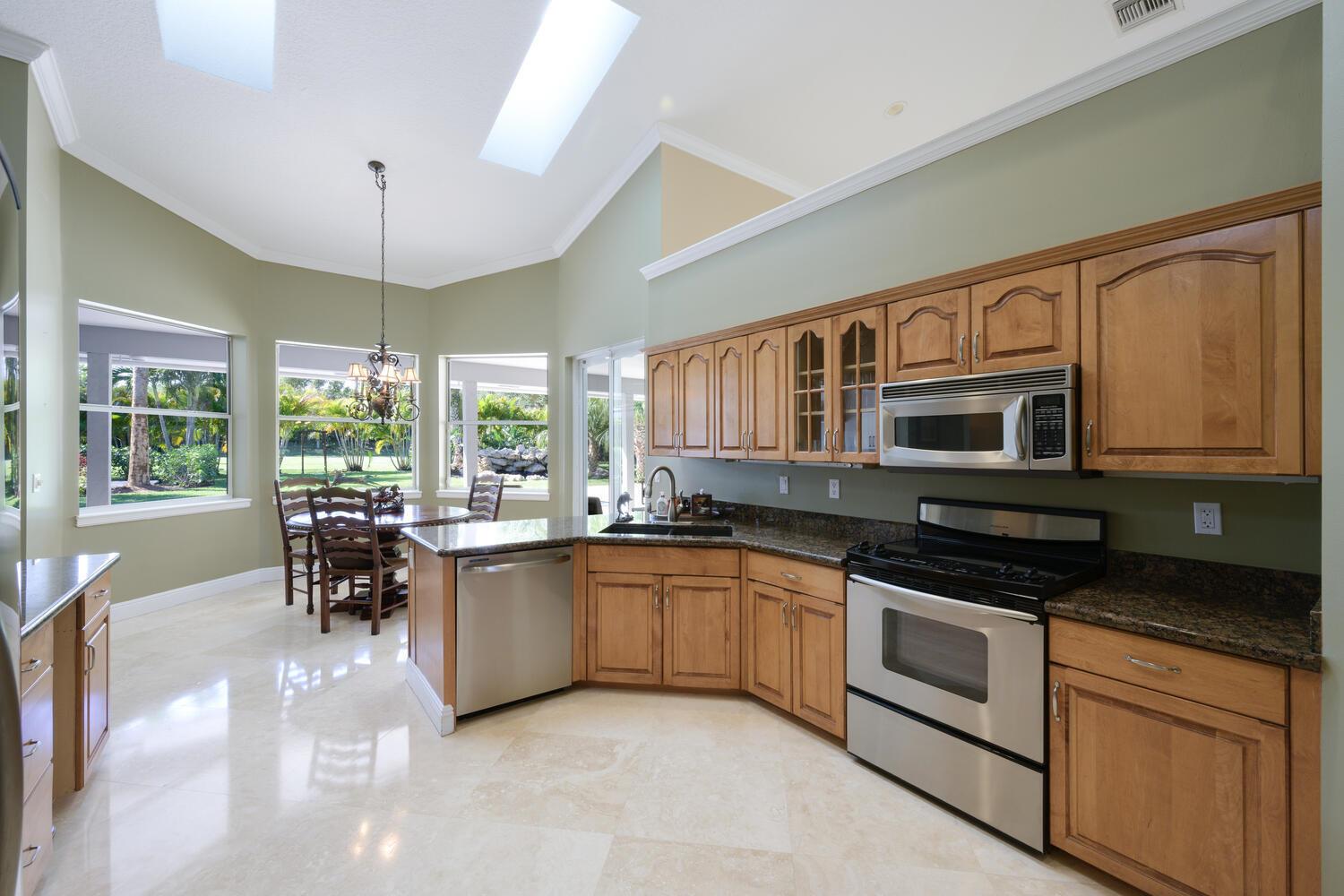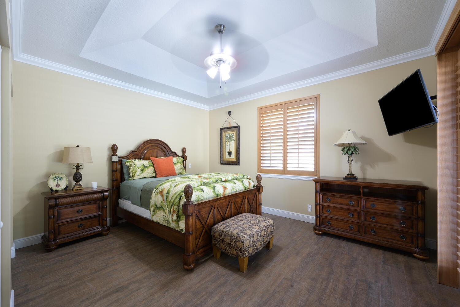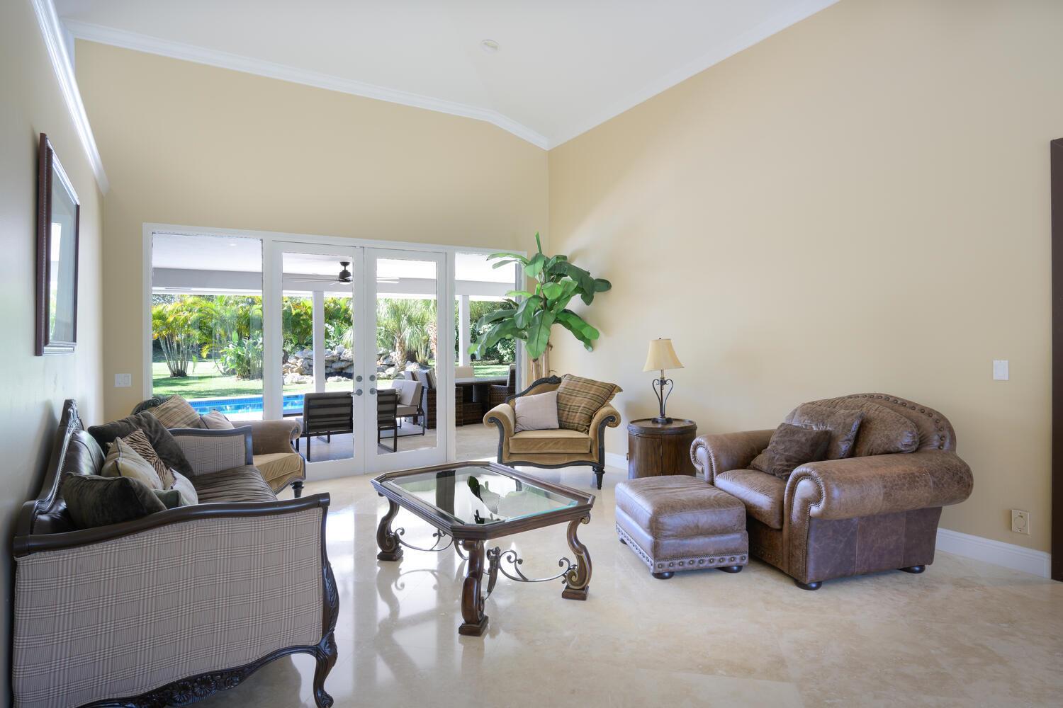 Experience luxury living in this four-bedroom, three-bath, two-car garage pool home, located in the sought after community of Steeplechase. The traditional design, CBS structure, and front East exposure provide an inviting ambiance on this expansive 1.31-acre lot. New flat concrete tile roof $76,230 with 5 year warranty, partial impact windows, and doors and captivating views of the garden, pool, and water feature. This residence boasts marble and tile flooring throughout, with the living room featuring sliders to the outside, vaulted ceiling, recessed lighting, and crown molding. The family room exudes sophistication with marble floors, vaulted ceiling, skylights, and a full bar equipped with built-in cabinets, wine cooler, sink, wine racks, and granite countertops.