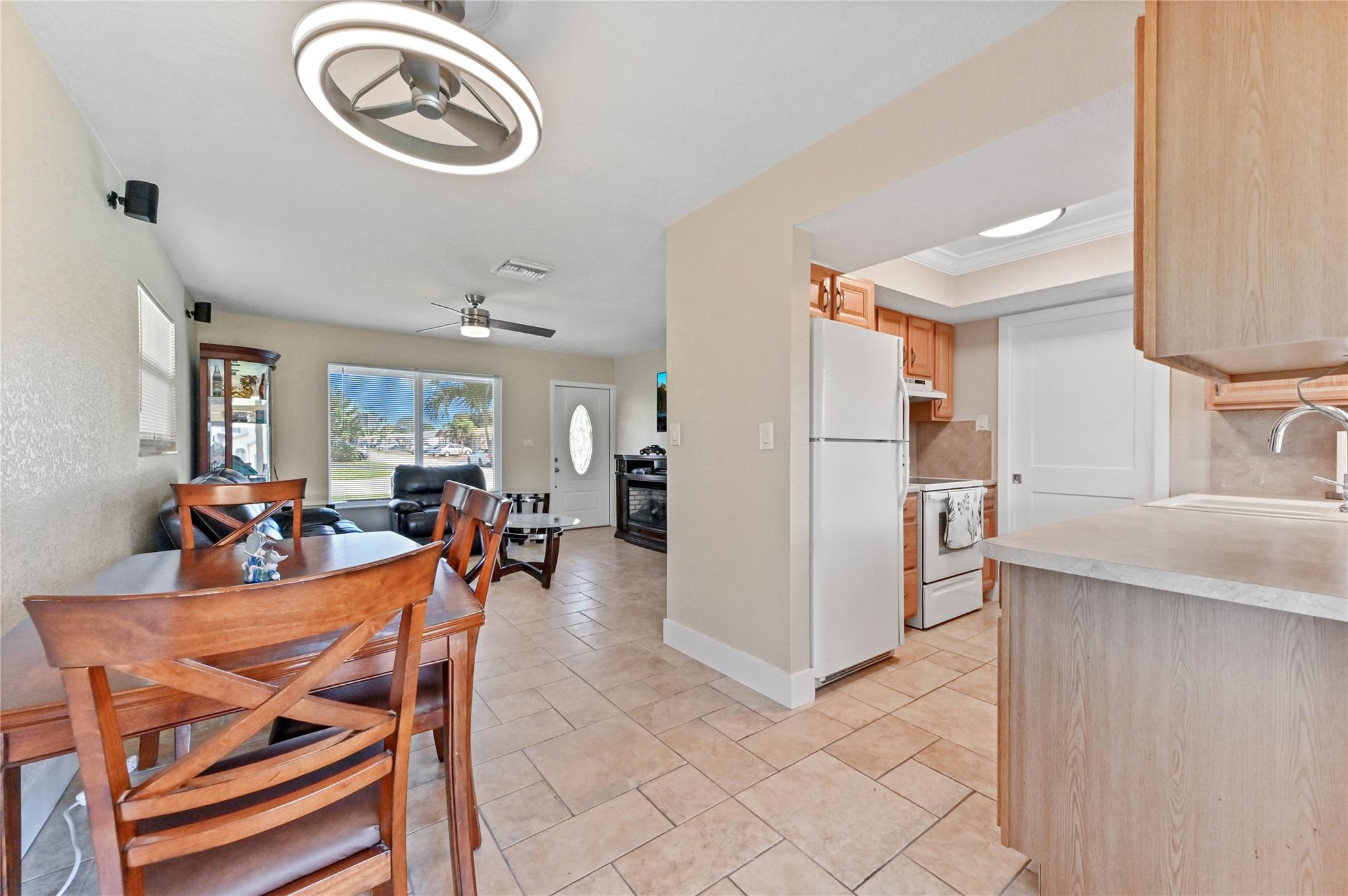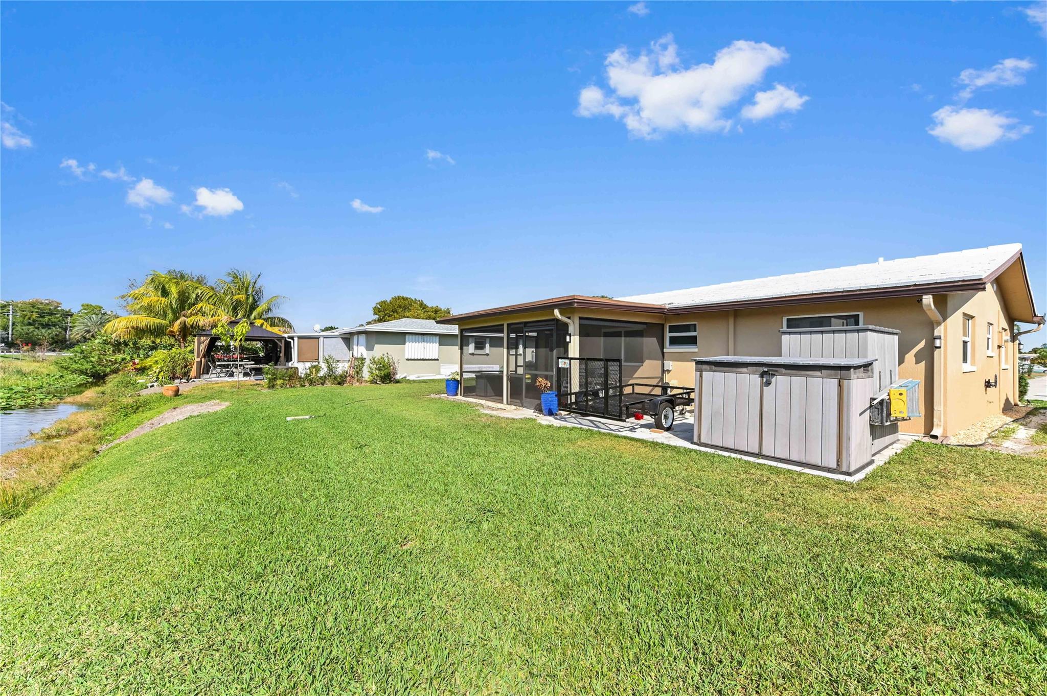 Brand new roof 4/2025 on this 2 bedrooms 2 bath home with canal view offers a range of desirable features The kitchen boasts wood cabinets, smooth top range & brand new fridge The primary bedroom features 2 closets while the primary bath has shower-only design with frameless shower doors The guest bathroom includes a shower with designer tile The second bedroom is being used for storage Inside laundry includes full-size washer and dryer and Brand new electrical panel box The home has partial impact windows and a good size screened patio overlooking the canal Freshly painted Interior and immaculate condition makes this home move-in ready Low HOA fee of $30 per month is attractive. The association indicates an age restriction of 55 or older pets welcomed
