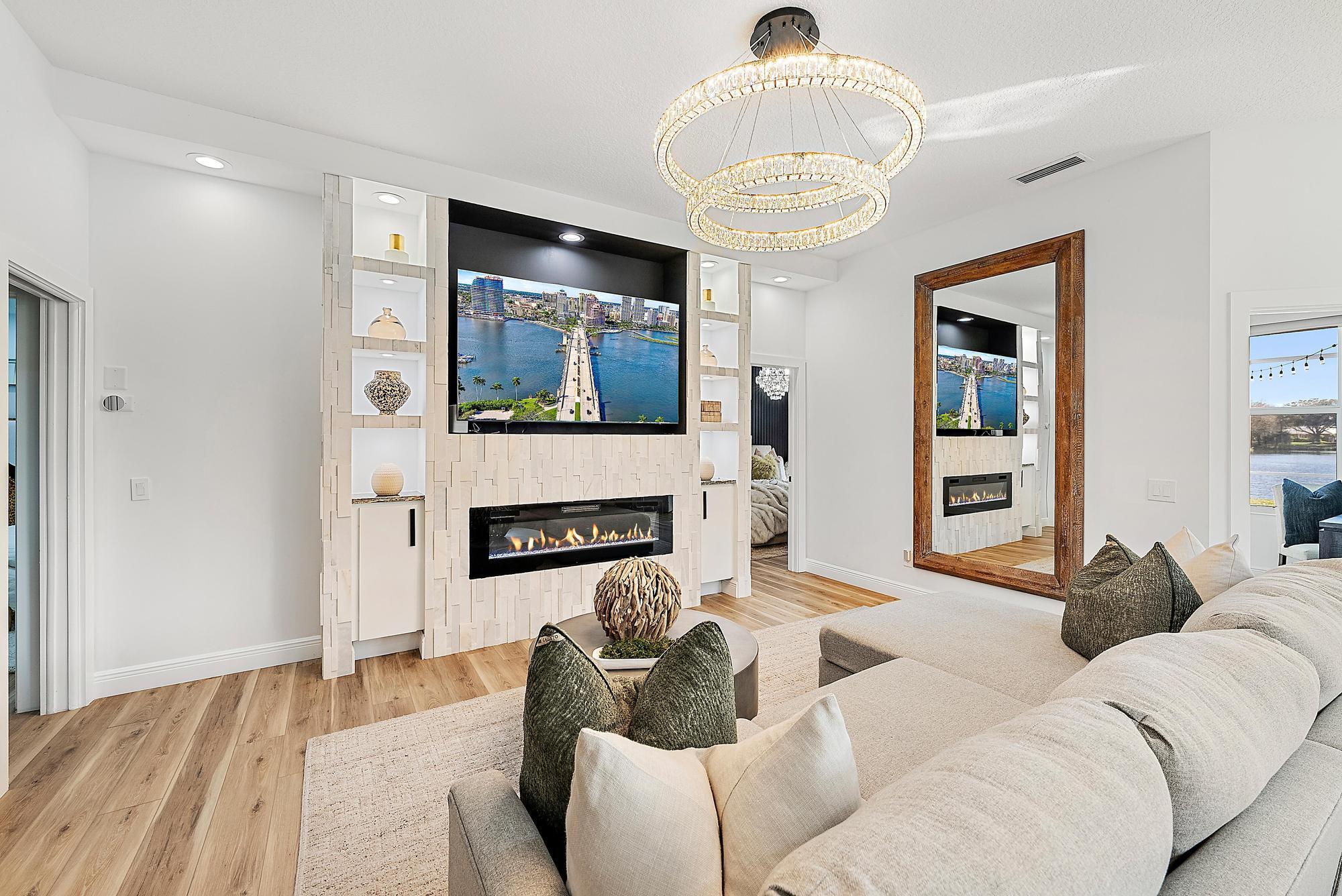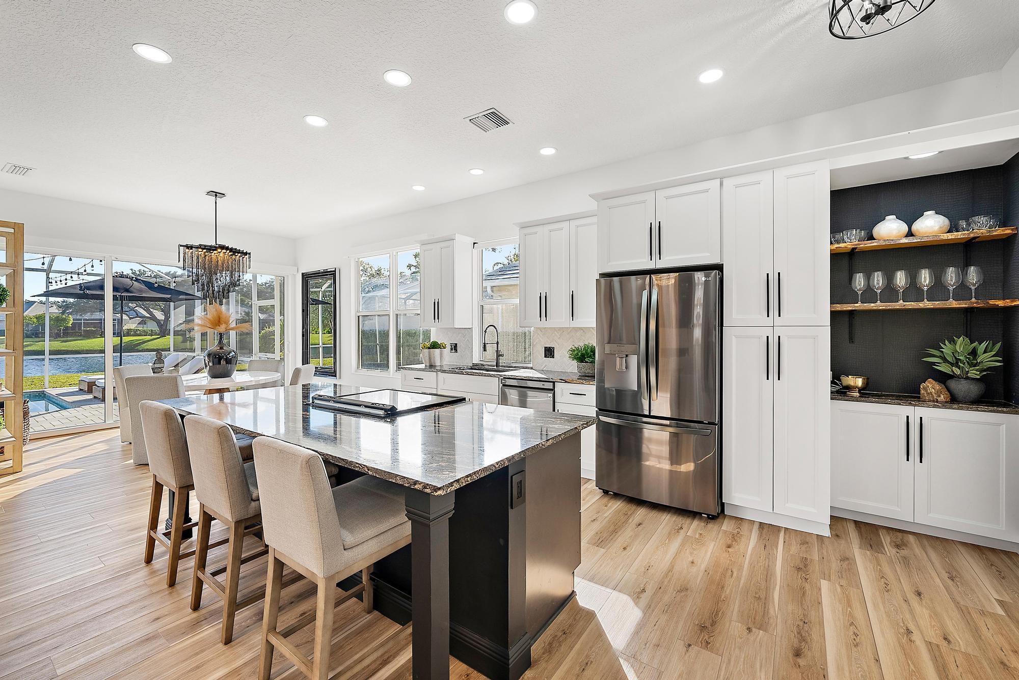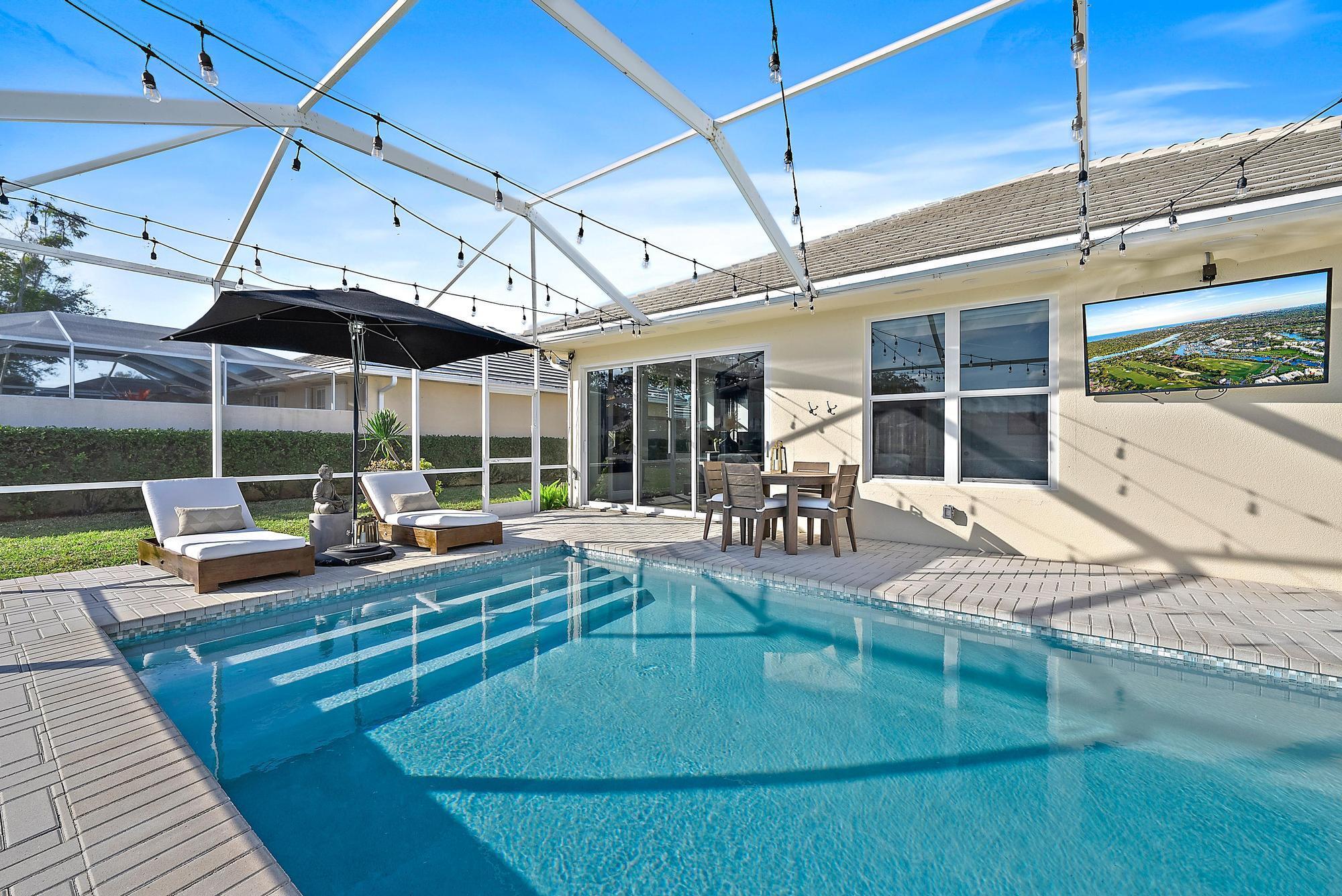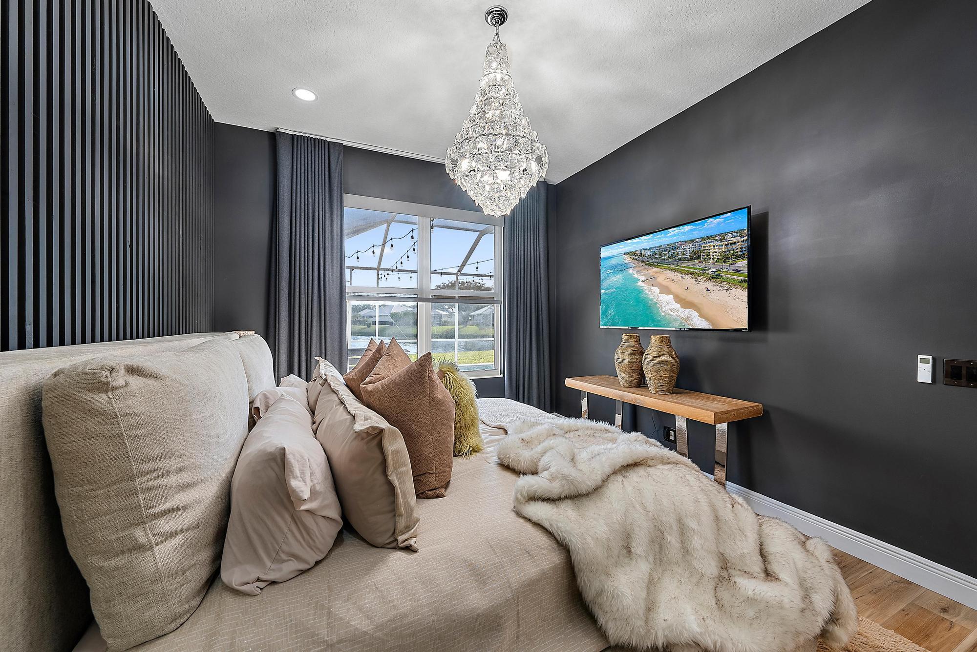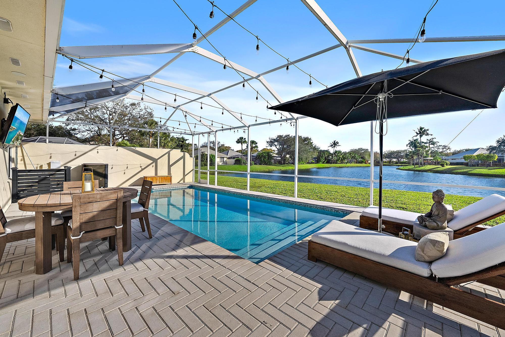 Welcome to your new sanctuary, nestled on a beautiful tree lined street in South Florida. This stunning home sits on a picturesque lake offering relaxation and restoration in the heart of Palm Beach Gardens. Professionally landscaped and designed, this home ensures no detail has been overlooked. All new hurricane doors and windows, shade store electric blinds and drapes, custom built tiled electric fireplace and mantel, stunning crystal chandeliers and modern fans. custom glass in bathrooms, new interior glass doors, pull out shelving in kitchen, complete pool renovation including resurfacing ,tile, heater, and pavers, epoxy garage floor, whole house freshly painted inside and out, new tankless water heater(23) AC (24) Roof (21). Low cost HOA includes cable, internert ,front yard.