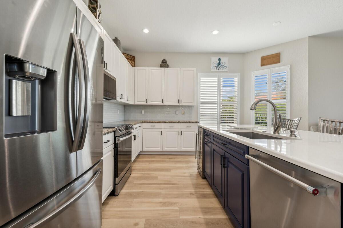 Freshly updated 4/2 single family ranch home in Canyon Lakes. Kitchen features quartz and granite countertops, oversized single level island, recessed LED lighting, new appliances with tile backsplash and built-in pantry and wine refrigerator. Master bedroom includes his and hers walk-in closets, laminate floors and fully remodeled master bath. Remaining bedrooms feature laminate flooring, built-in closet systems and plantation shutters. Spectacular long lake views from the fully screened in lanai. Fenced side yard was recently turfed and features a 3 hole putting green. Entire house has accordion shutters. Generator hookup in garage connected to electrical panel. Listing excludes electric car charger and two light fixtures in dining room and entrance way.