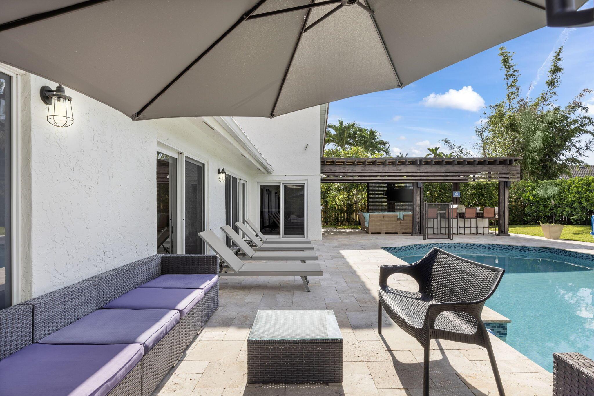 Welcome to your dream home in the prestigious and highly sought-after neighborhood Palm Beach Farms in East Boca Raton, located within the best school zone in Palm Beach County. This stunning 4-bedroom, 2-bathroom pool home residence offers a perfect blend of luxury, comfort, and modern design. The home features high ceilings that enhance the sense of space and light throughout, brand new renovated bathrooms with modern fixtures and custom high end tile, and a newly updated kitchen equipped with top-of-the-line appliances and sleek cabinetry. The large, private landscaping, along with a circular driveway, adds to the home’s charm and convenience. Step into a backyard paradise with stunning pavers, a pergola perfect for outdoor entertaining, and a built-in grill with granite counterops,