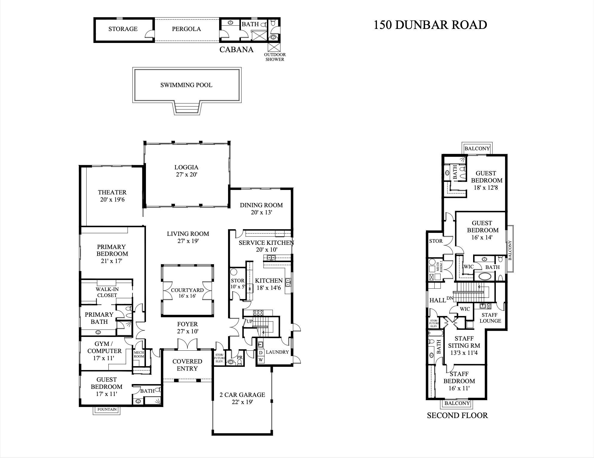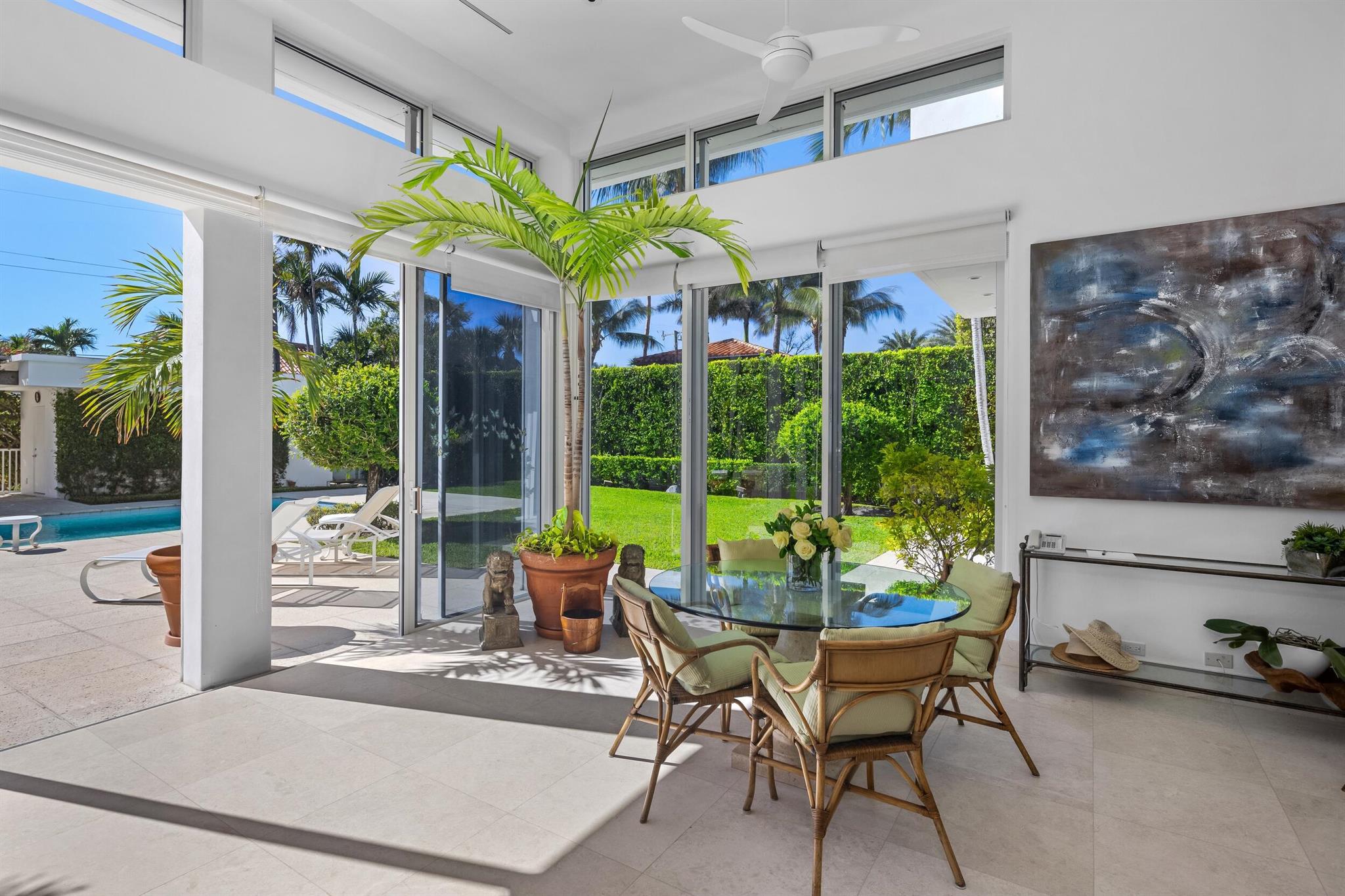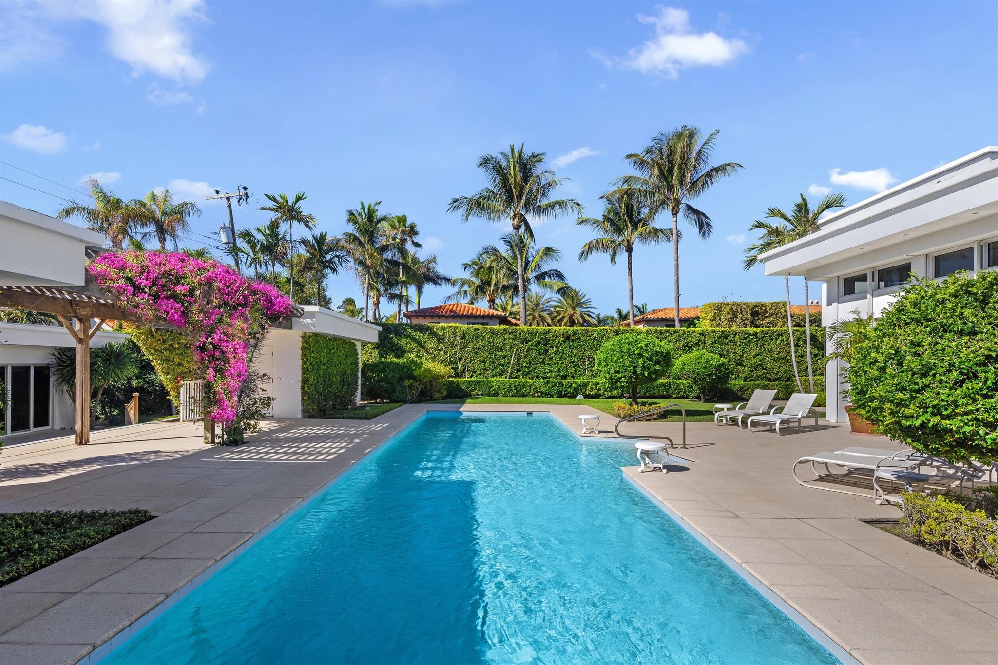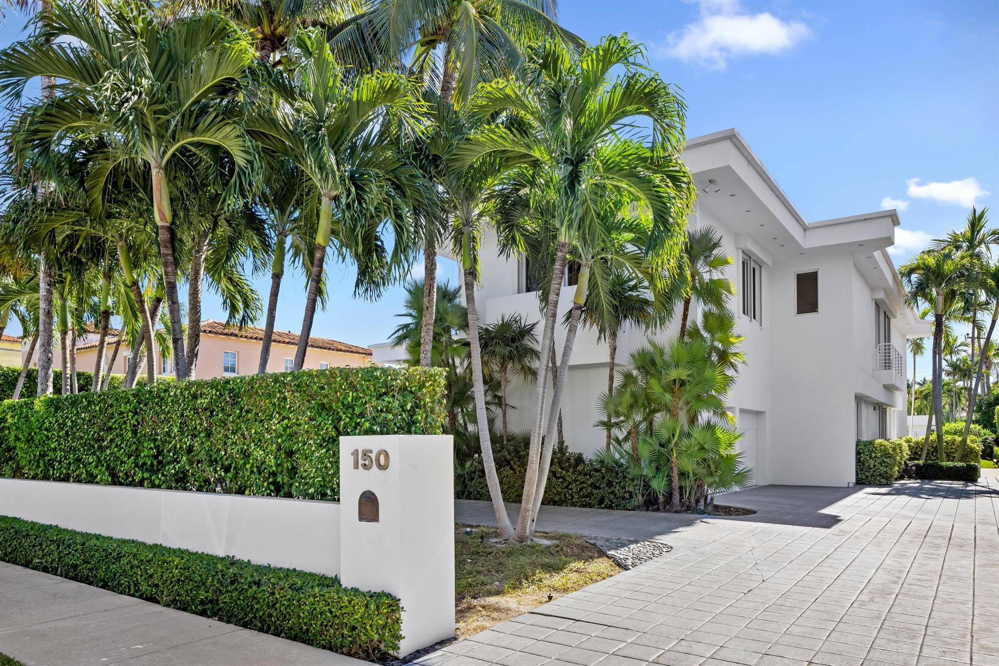 Previously listed as a compound with an additional residence, 150 Dunbar is now being offered as a single parcel in the heart of Palm Beach. Designed by the renowned architect Gene Lawrence, this two-story contemporary home is built to entertain on an expansive 19,600+/- SF lot. The two-story residence, encompassing 5,700+/- SF under air, features 5 bedrooms with en suite bathrooms, including a ground-floor primary suite with an office and an upstairs apartment with a lounge and kitchenette. Additional highlights include multiple living spaces, a formal dining room, a well-appointed kitchen with a butler’s pantry, and a 2-car garage, with provisions for an elevator installation.The outdoor space is a private retreat, featuring a heated lap pool, cabana bath, ample storage, and