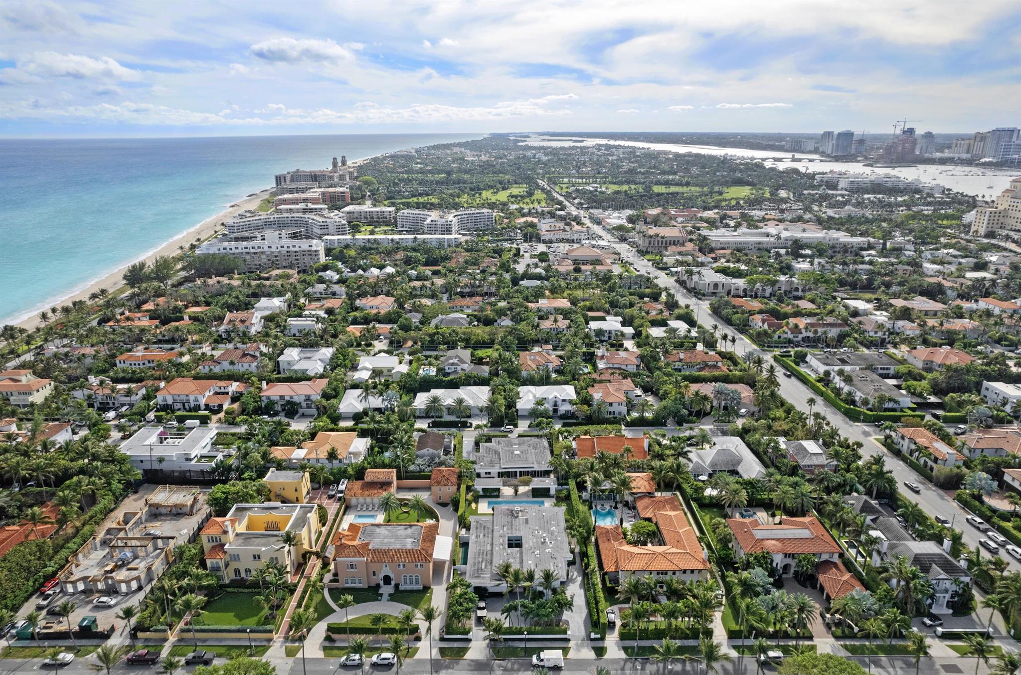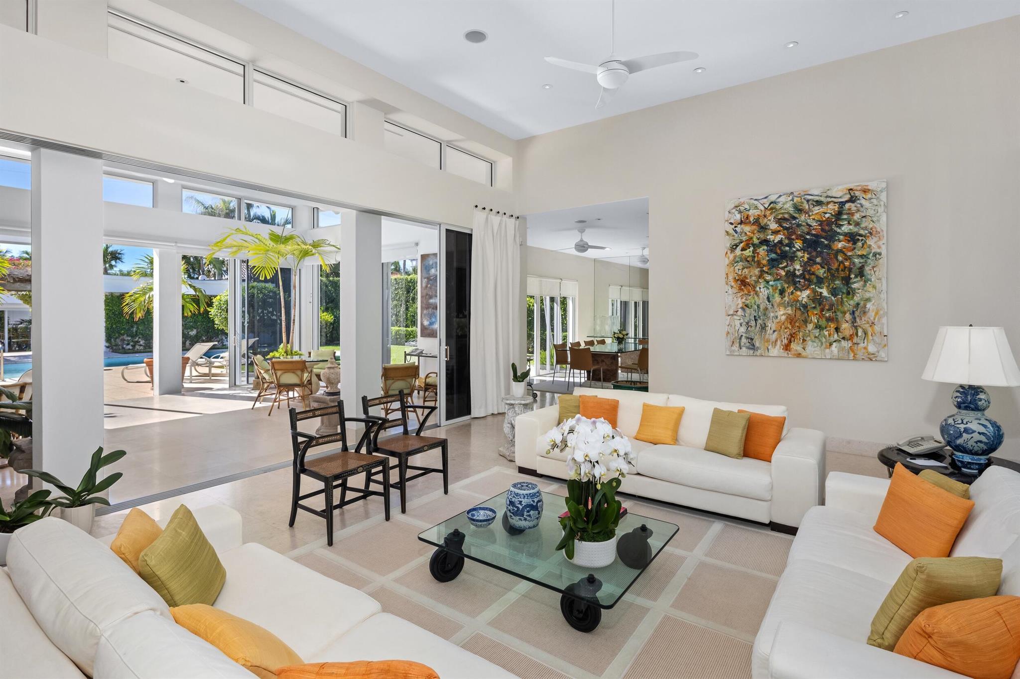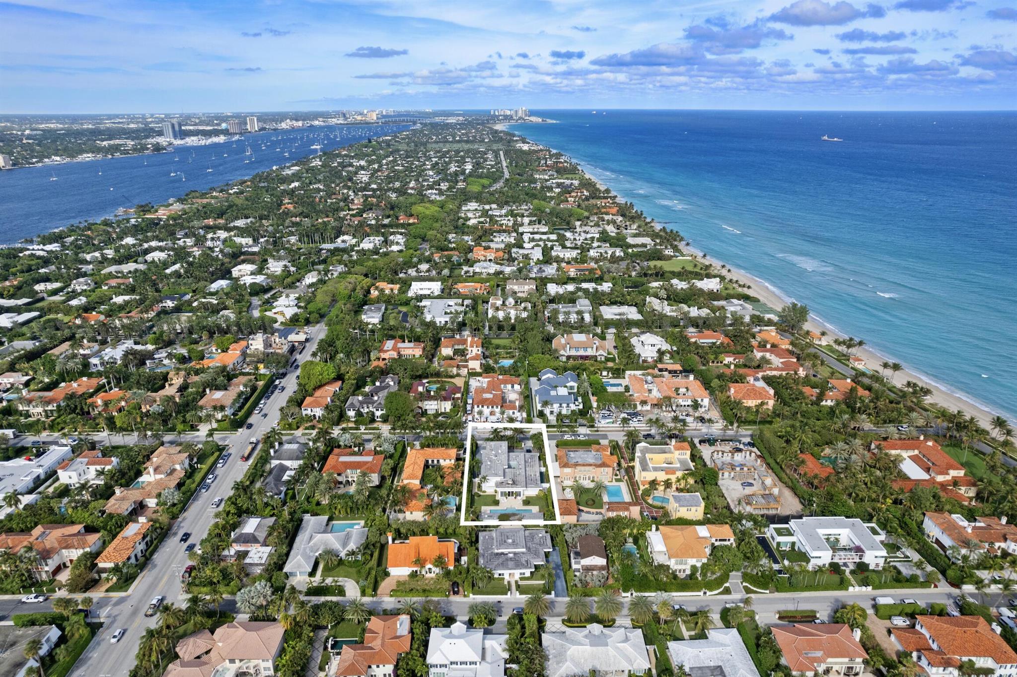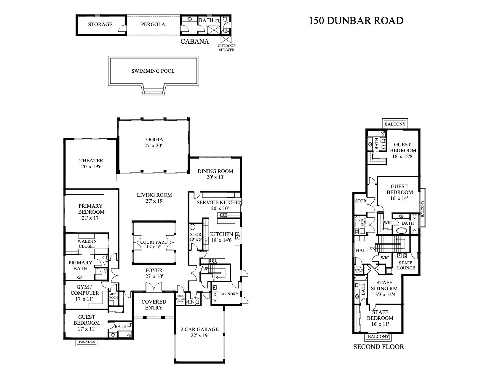Previously listed as a compound with an additional residence, 150 Dunbar is now being offered as a single parcel in the heart of Palm Beach. Designed by the renowned architect Gene Lawrence, this two-story contemporary home is built to entertain on an expansive 19,600+/- SF lot. The two-story residence, encompassing 5,700+/- SF under air, features 5 bedrooms with en suite bathrooms, including a ground-floor primary suite with an office and an upstairs apartment with a lounge and kitchenette. Additional highlights include multiple living spaces, a formal dining room, a well-appointed kitchen with a butler’s pantry, and a 2-car garage, with provisions for an elevator installation.The outdoor space is a private retreat, featuring a heated lap pool, cabana bath, ample storage, and