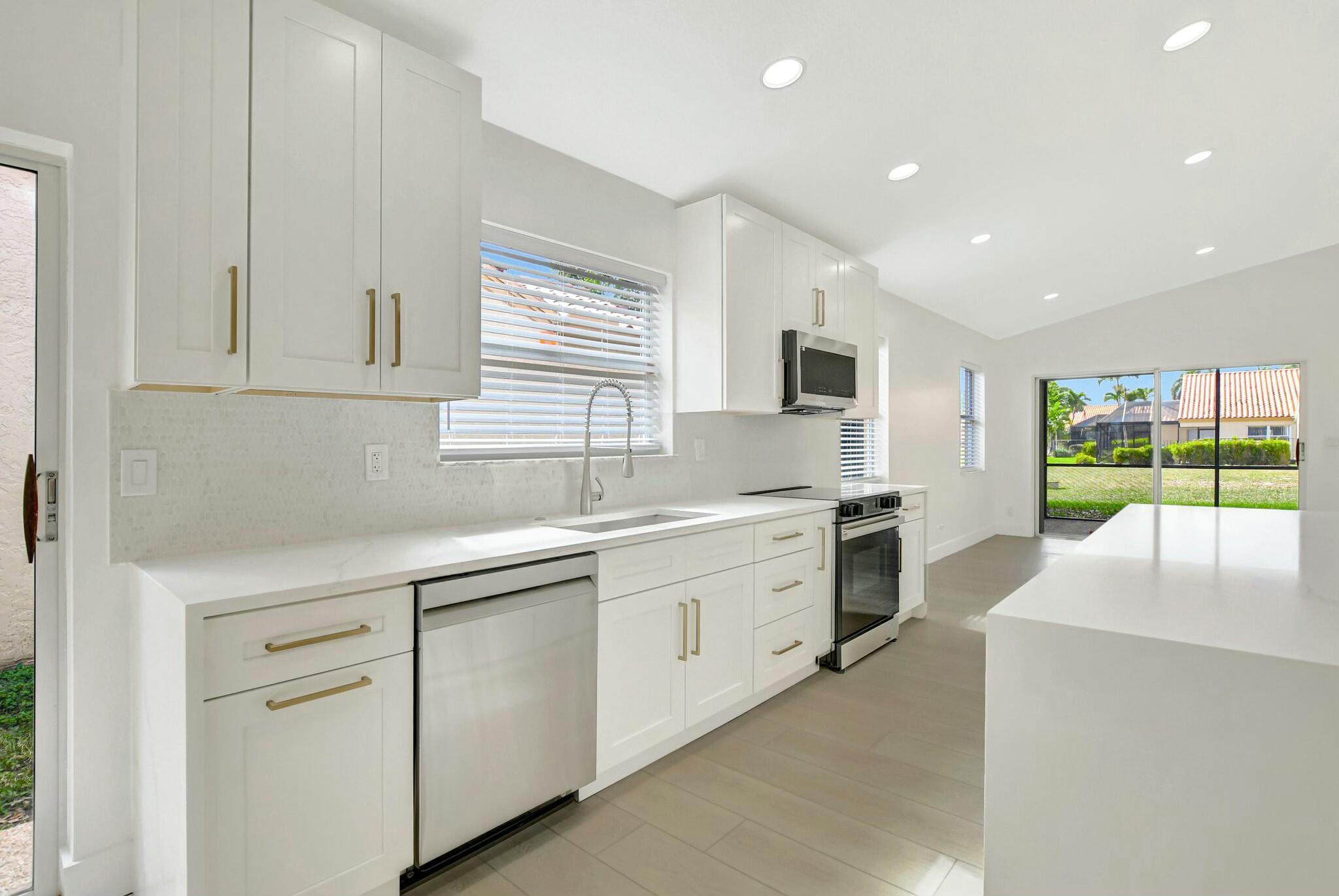 Welcome Home! Be the first to live inside this fully renovated 3 bedroom 2 bath home. Step outside to your screened in patio over looking the lake. Open floor plan perfect for hosting. No detail has been over looked. Roof 2023, AC NEW, HOT Water Heater NEW Brentwood HOA Includes: Exterior Painting, Landscaping (Front and Back), Cable and Internet, Clubhouse, Two Community Pools/Spa , Tennis Courts, Basketball and Racquetball. Truly a hidden gem of Boca!