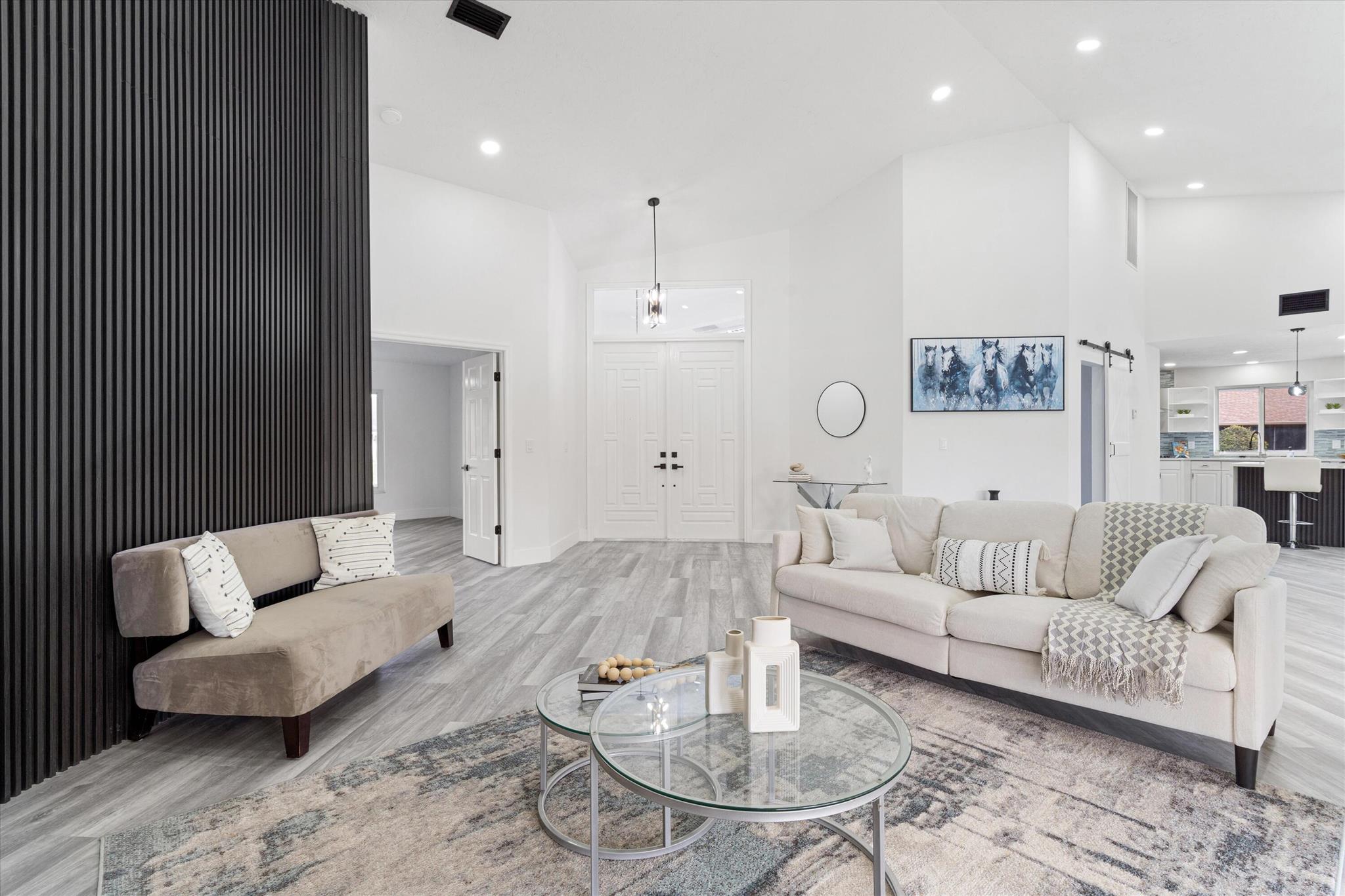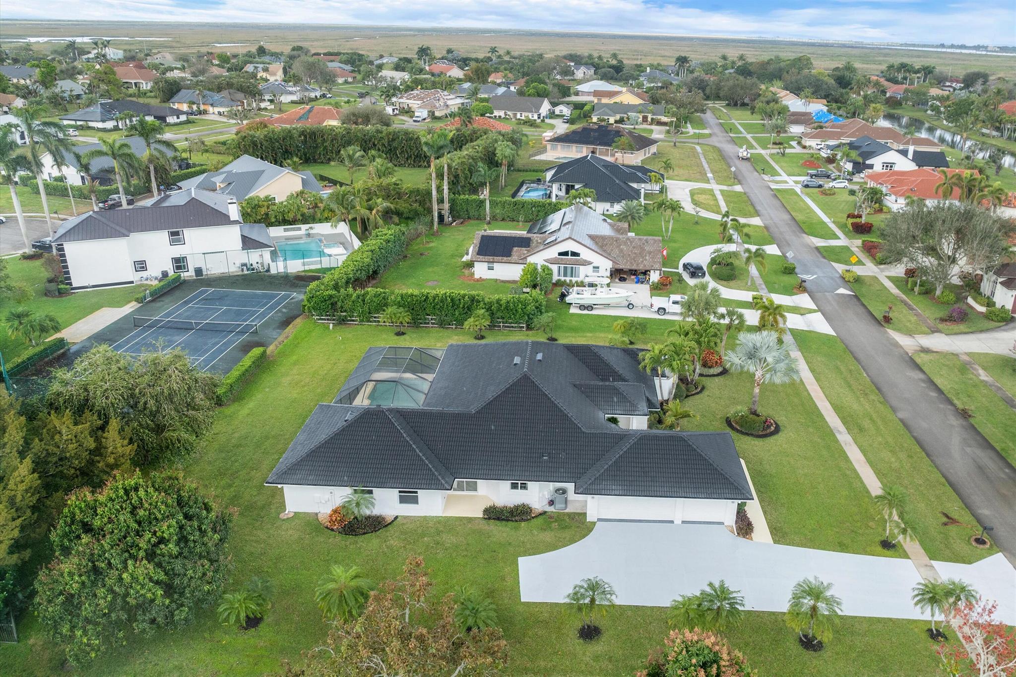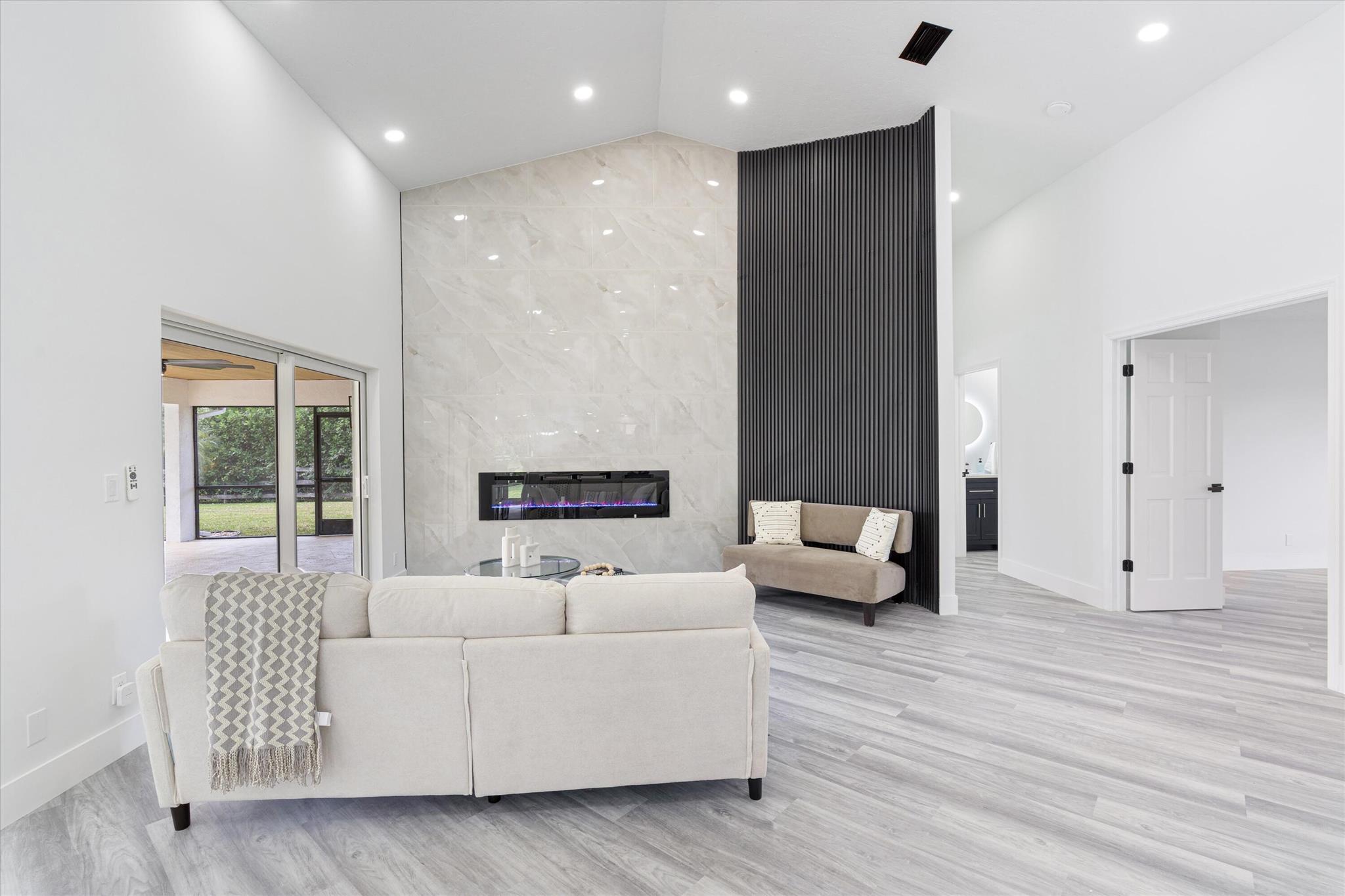 Discover your luxury modern home in the highly desired Meadow Wood neighborhood! An upgraded property boasting 5 Bed/3.5 bath, an office, & 3 car garage. Split floor plan with large bedrooms, state-of-the-art kitchen, smart appliances, and an oversized island with beautiful Calacatta Quartz countertops. New permitted impact windows, dual water heaters, dual zone AC, on a spacious half-acre lot. Gorgeous master bath with soaking tub, double shower heads, water jets & a towel heater. Families who like to host will enjoy a covered patio, a large backyard, lush landscaping, and a newly resurfaced Diamond Brite saltwater pool with new equipment. Low HOA fees, close to shopping, dining, A-rated schools, & equestrian events. Schedule a private showing today & fall in love with this dream home!