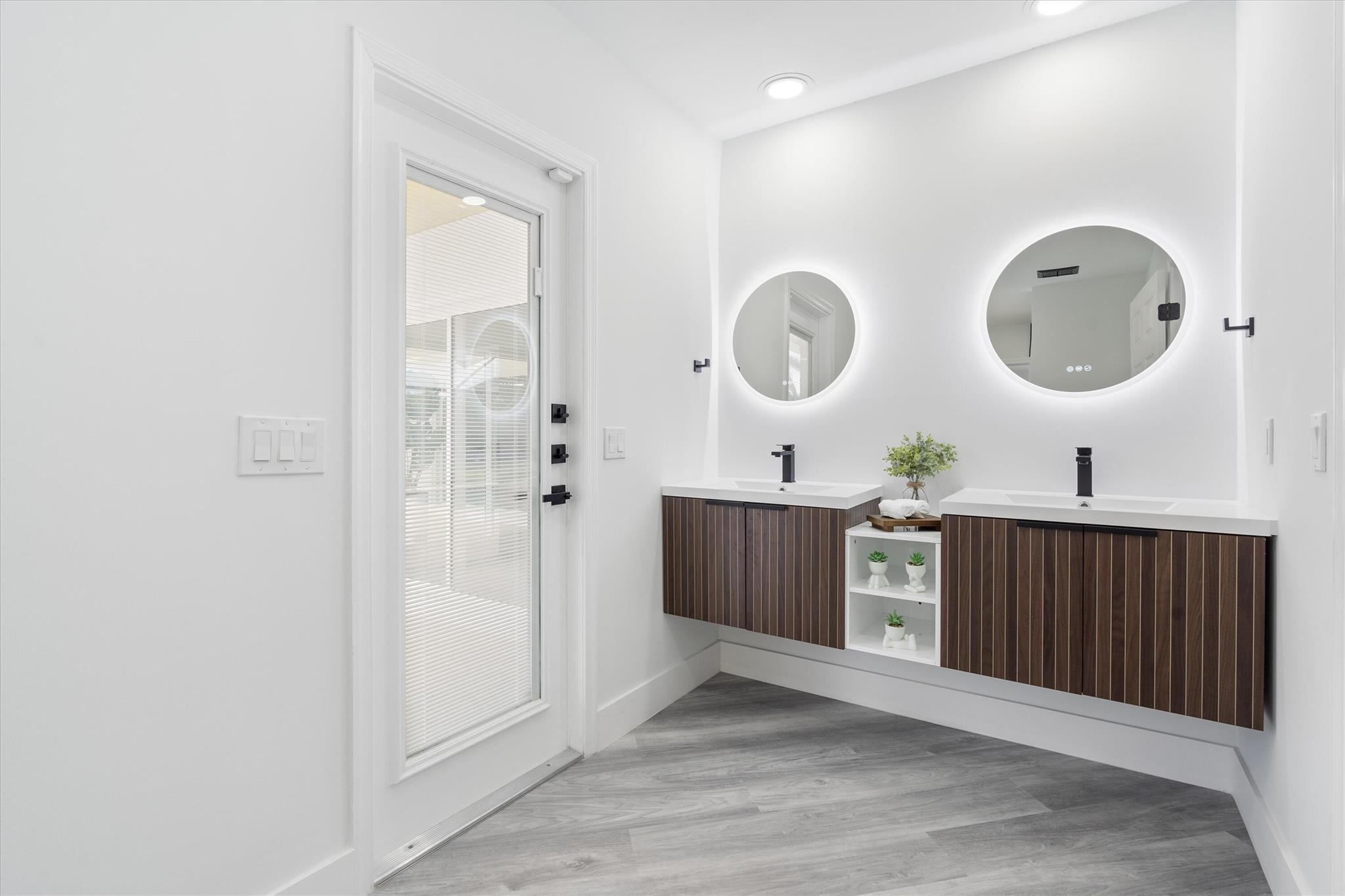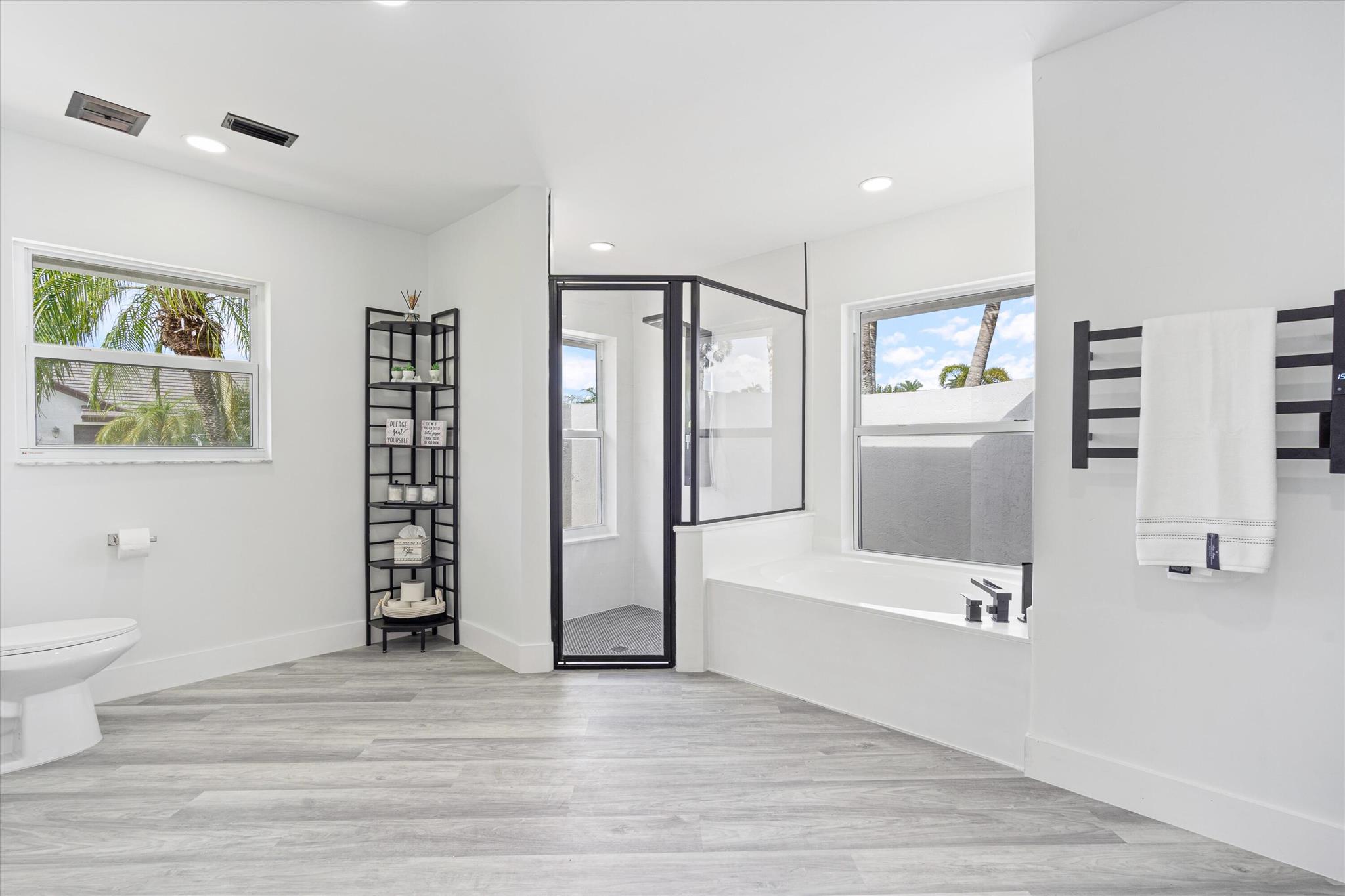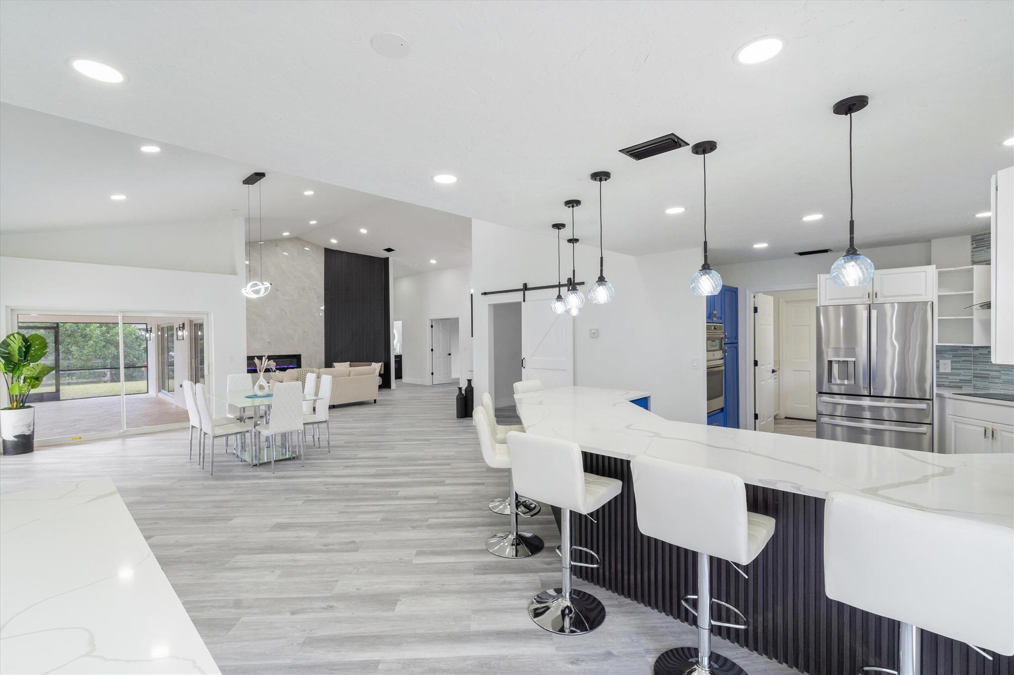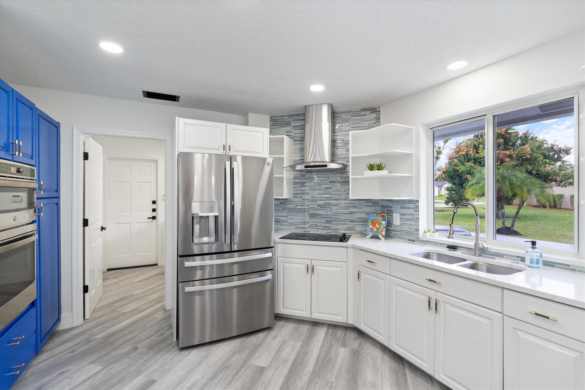Discover your luxury modern home in the highly desired Meadow Wood neighborhood! An upgraded property boasting 5 Bed/3.5 bath, an office, & 3 car garage. Split floor plan with large bedrooms, state-of-the-art kitchen, smart appliances, and an oversized island with beautiful Calacatta Quartz countertops. New permitted impact windows, dual water heaters, dual zone AC, on a spacious half-acre lot. Gorgeous master bath with soaking tub, double shower heads, water jets & a towel heater. Families who like to host will enjoy a covered patio, a large backyard, lush landscaping, and a newly resurfaced Diamond Brite saltwater pool with new equipment. Low HOA fees, close to shopping, dining, A-rated schools, & equestrian events. Schedule a private showing today & fall in love with this dream home!