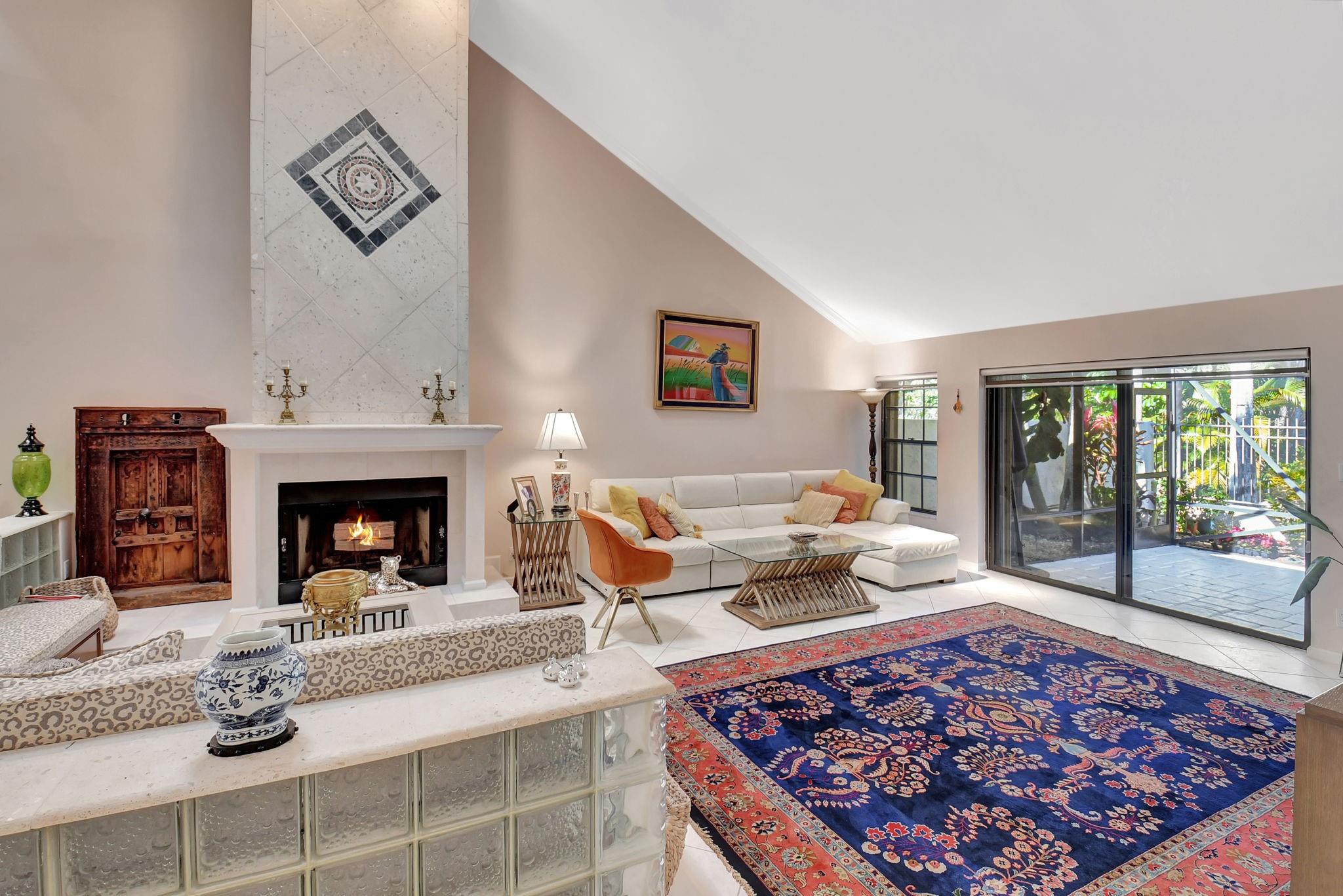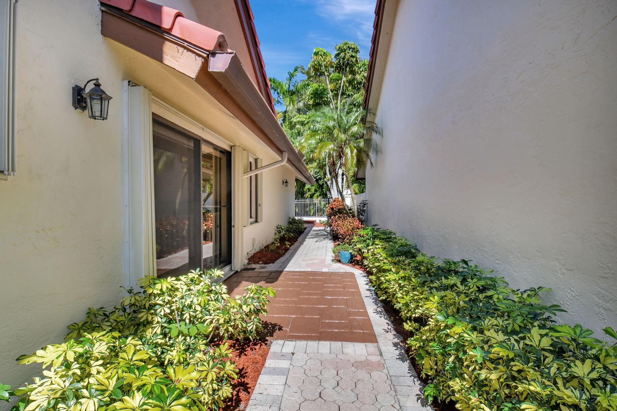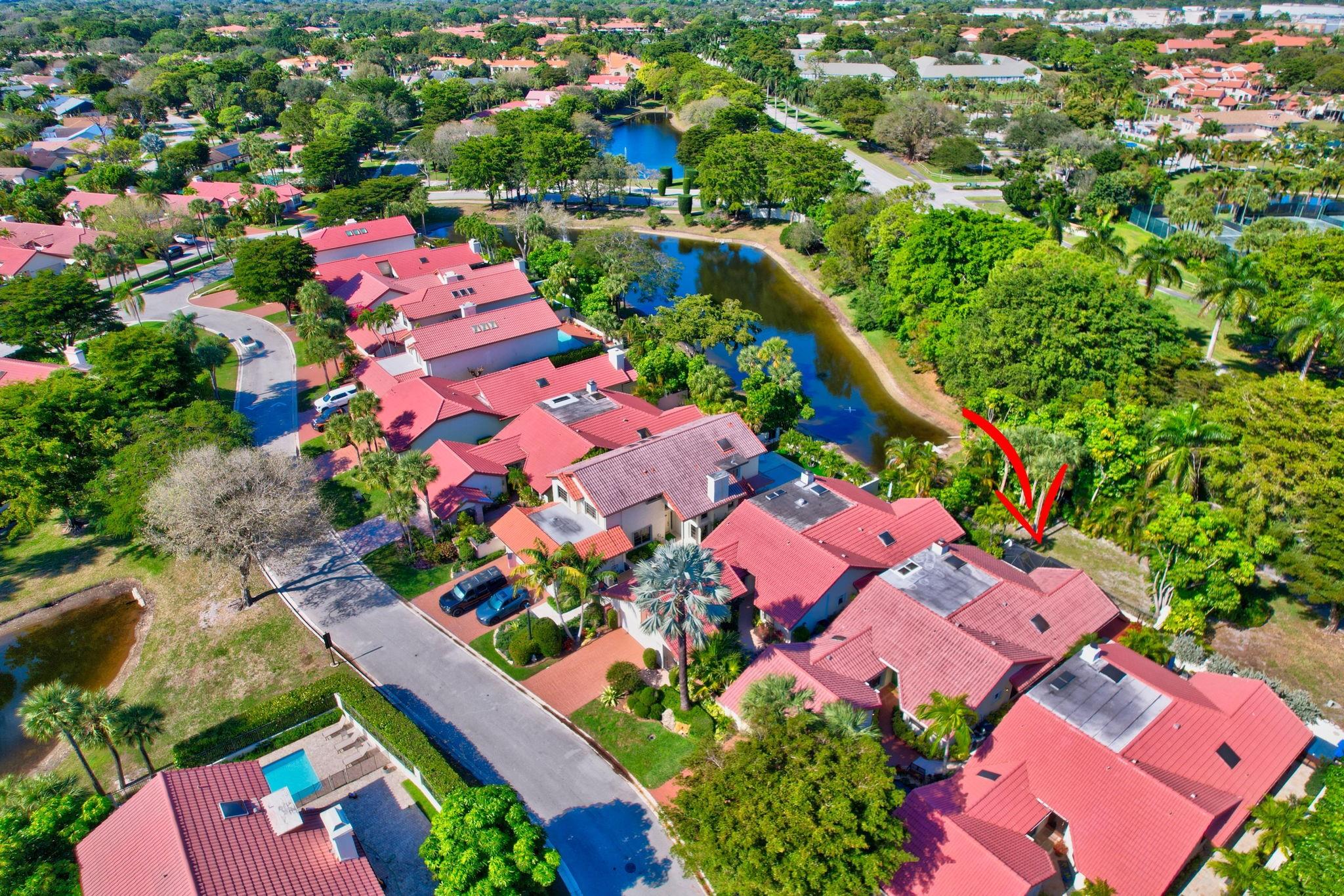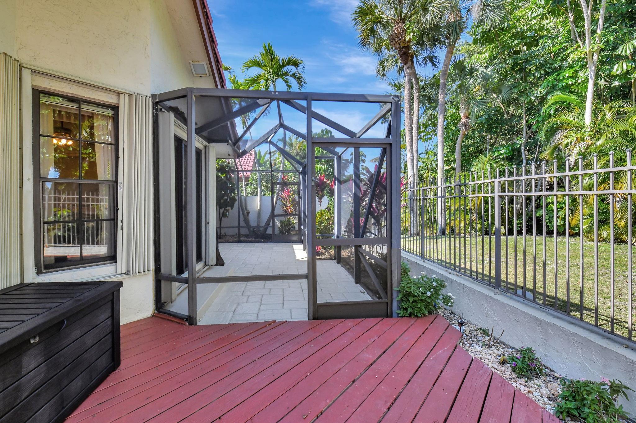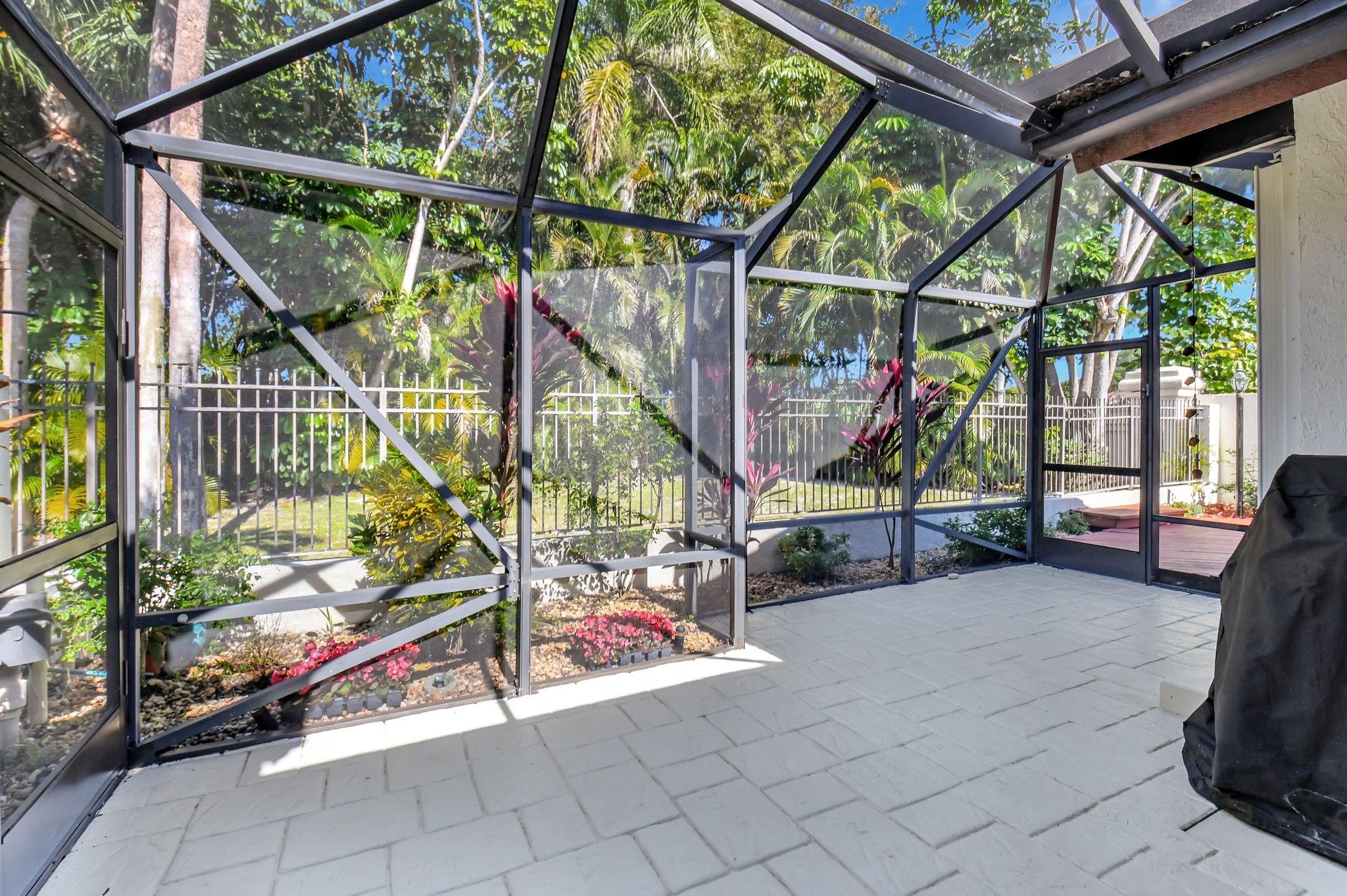 Rarely offered beautifully updated three bedroom plus family room Cayman model. Spacious split bedroom floorplan features soaring smooth ceilings, formal dining & living room with floor to ceiling fireplace. Generous updated kitchen offers granite countertops, smooth-top range w/double ovens, breakfast bar & SS appliances. Primary suite offers vaulted ceilings, beautiful updated bath with granite top vanity, relaxing soaking tub & tiled shower. Tropical lushly landscaped zen-like courtyard entry w/tranquil waterfall & koi pond. Side courtyard leads to your open patio plus a screened in patio perfect for outdoor living & entertaining. Enjoy a bonus greenspace space outside your back patio with a lake view, plenty of space to walk the dog and for the kids to play (maintained by the HOA).