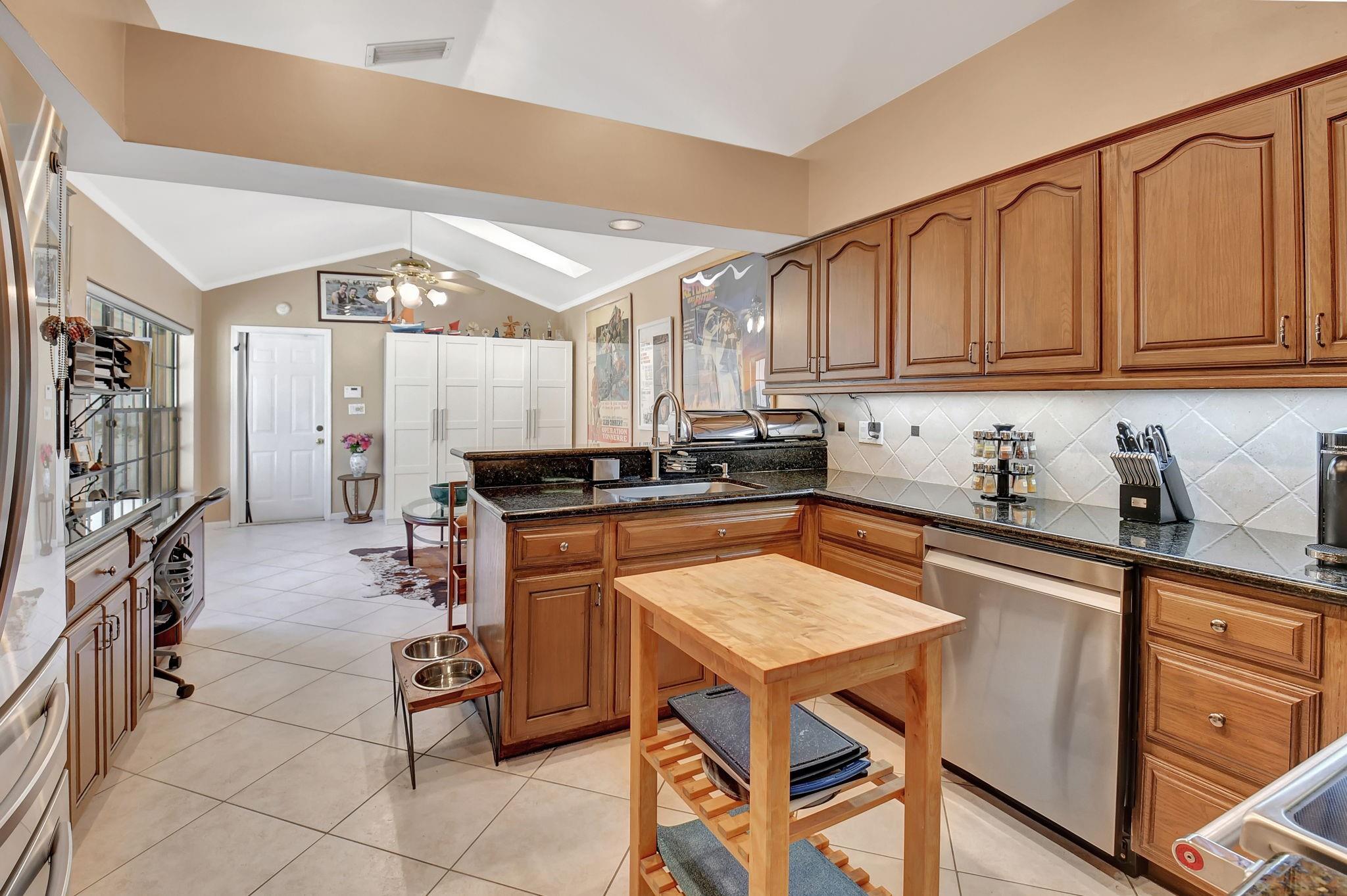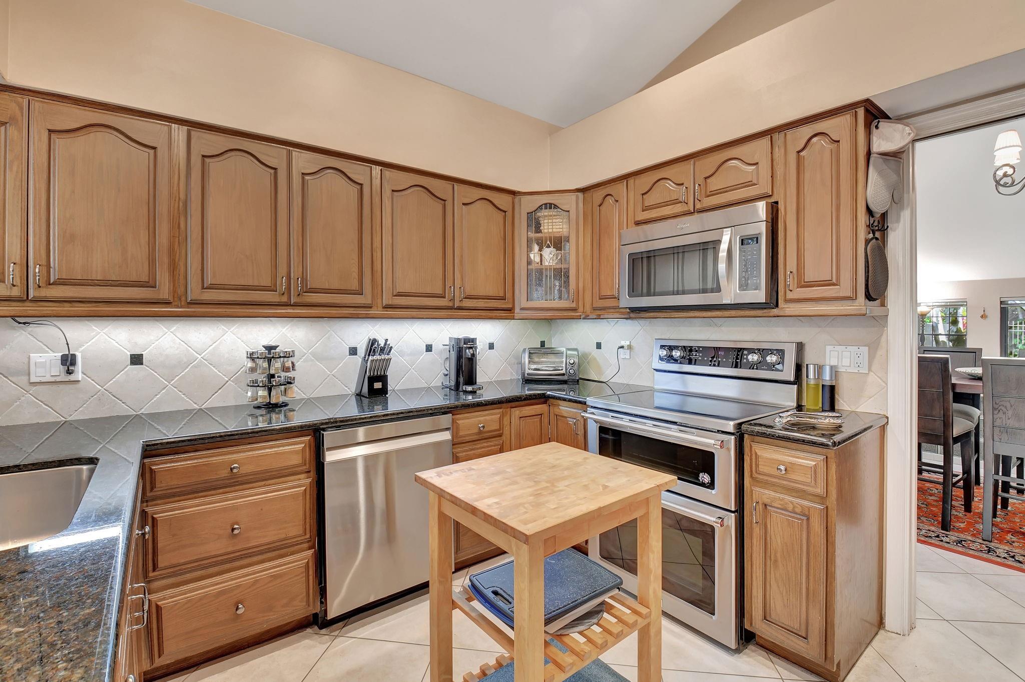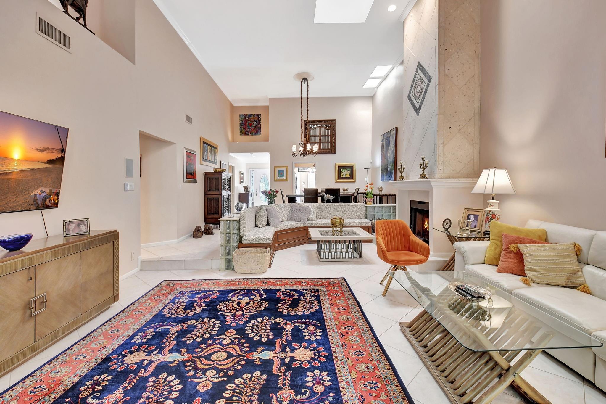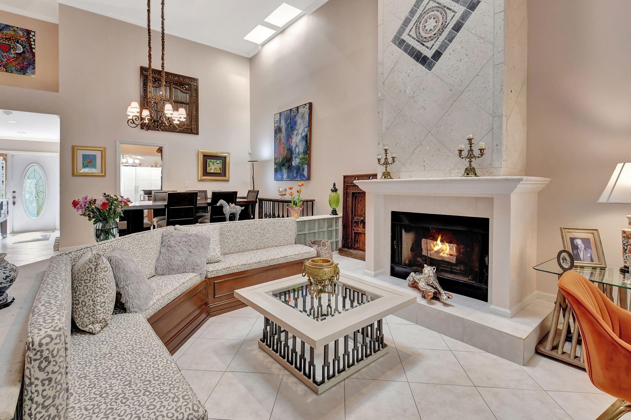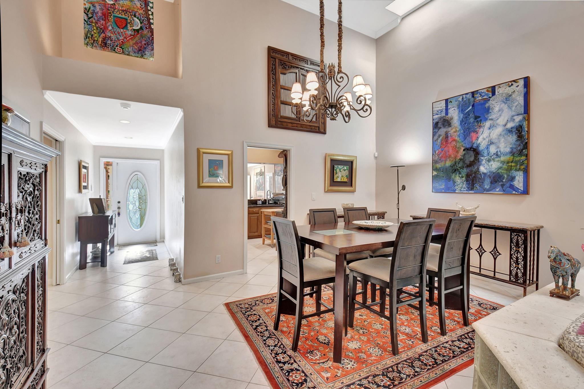 Rarely offered beautifully updated three bedroom plus family room Cayman model. Spacious split bedroom floorplan features soaring smooth ceilings, formal dining & living room with floor to ceiling fireplace. Generous updated kitchen offers granite countertops, smooth-top range w/double ovens, breakfast bar & SS appliances. Primary suite offers vaulted ceilings, beautiful updated bath with granite top vanity, relaxing soaking tub & tiled shower. Tropical lushly landscaped zen-like courtyard entry w/tranquil waterfall & koi pond. Side courtyard leads to your open patio plus a screened in patio perfect for outdoor living & entertaining. Enjoy a bonus greenspace space outside your back patio with a lake view, plenty of space to walk the dog and for the kids to play (maintained by the HOA).