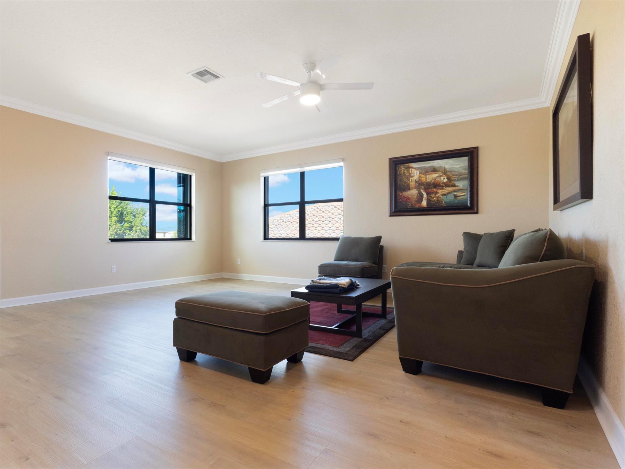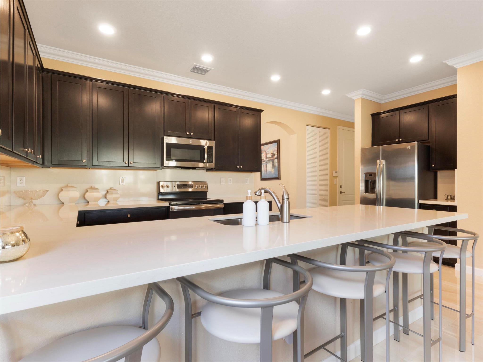 This is the stunning single-family home is in a prime location with breathtaking water views. It features 4 spacious bedrooms, a large loft, a living room, a family room, and a spacious kitchen with a massive quartz countertop, complemented by brand-new tile flooring throughout the downstairs. For convenience, there are two sets of washers and dryers–one upstairs and another in the downstairs garage. The covered patio includes a summer kitchen with a built-in grill and stove. All downstairs windows and sliding doors are equipped with hurricane impact glass, while the upstairs has accordion shutters. Enjoy easy access to top-rated schools, parks, shopping, dining, and major highways.