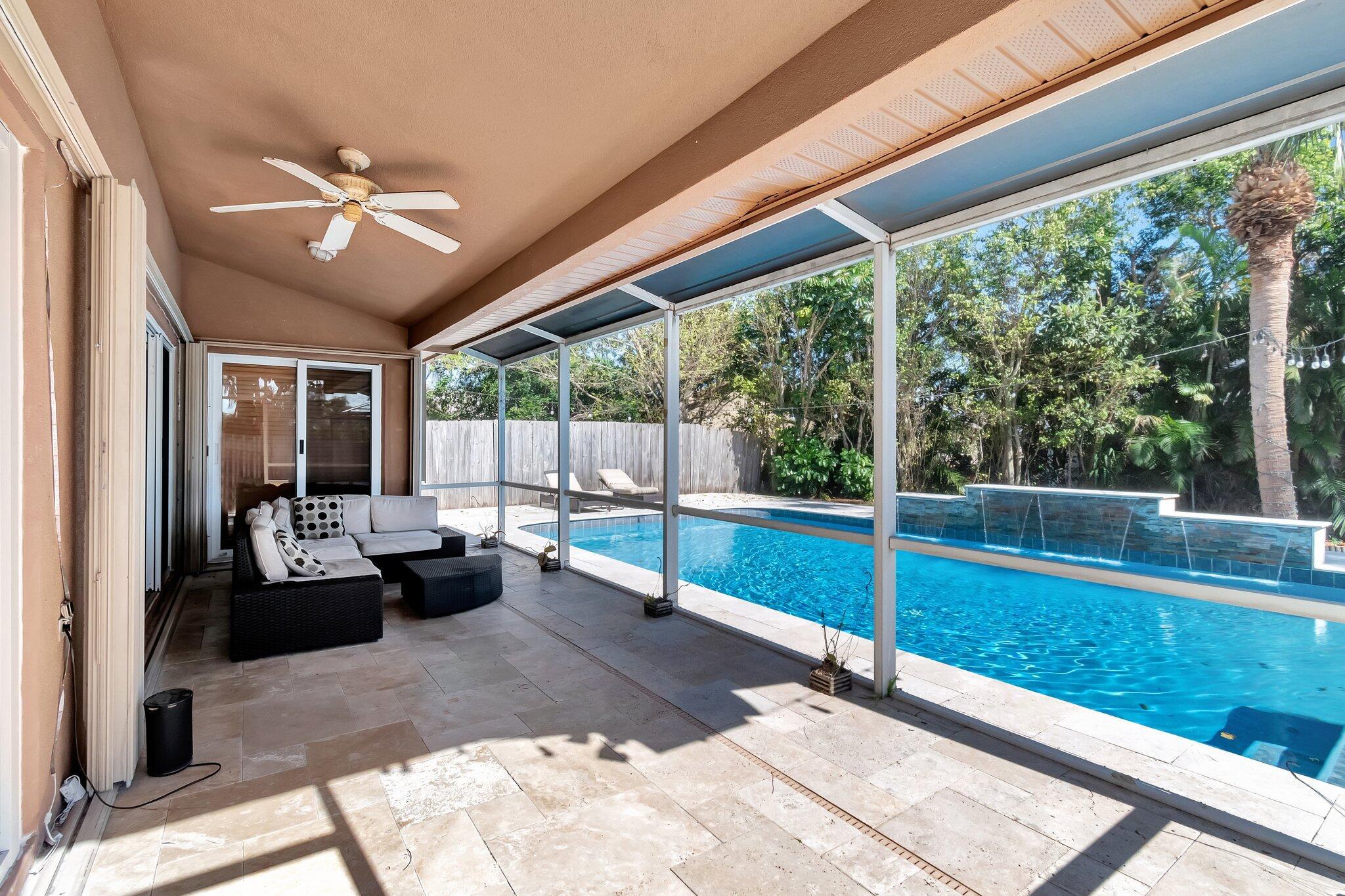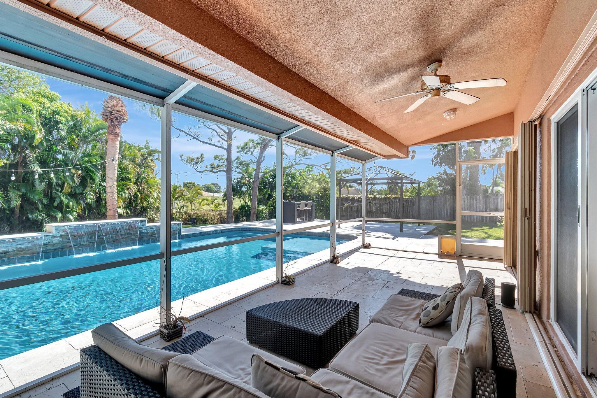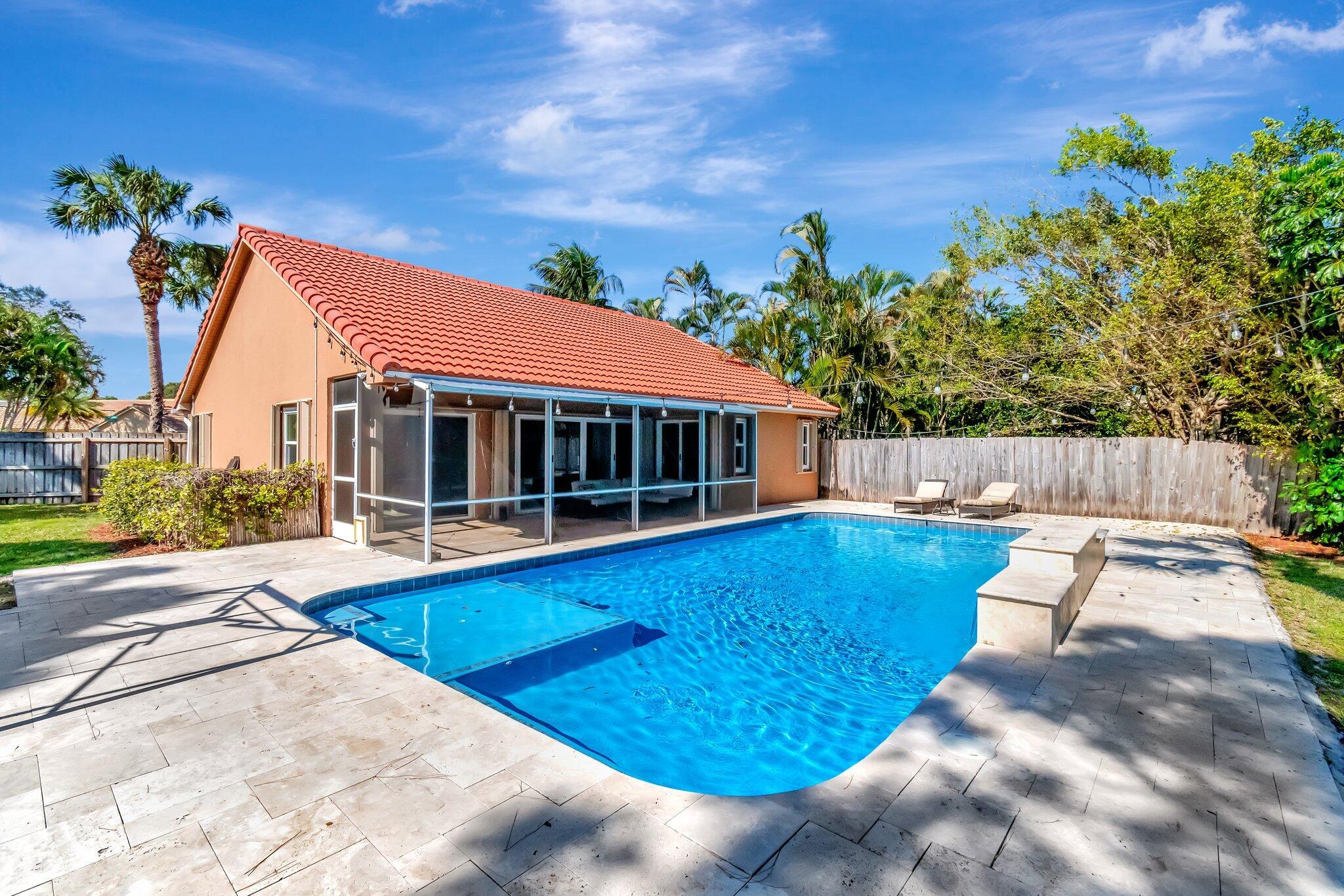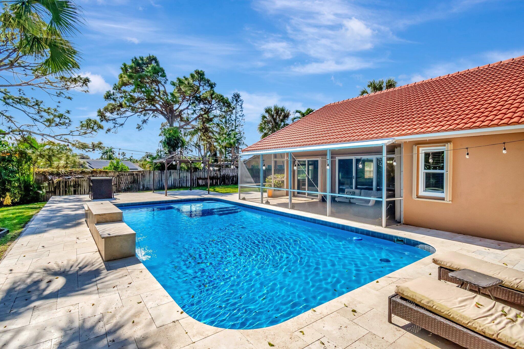 NEW Roof 2023, , NEW impact windows & doors 2023, stylish new front door! Welcome to this beautifully upgraded 3bed, 2bath pool home! Nestled in the desirable Sabal Lakes neighborhood, this home boasts outdoor Living at Its Best! The backyard is a true entertainer’s paradise: Largest fenced yard in the neighborhood; Large newly renovated volleyball pool with a lounge shelf. A newly installed screened-in travertine porch/patio/pool decking. Cozy gazebo; sand fire pit; Large side yard. Step inside, bright and airy open-concept living/family/kitchen/dining area, vaulted ceilings, granite countertops, and a massive kitchen island that comfortably seats eight! Expansive master suite with jacuzzi tub, 2sinks. Dedicated office space. separate laundry room
