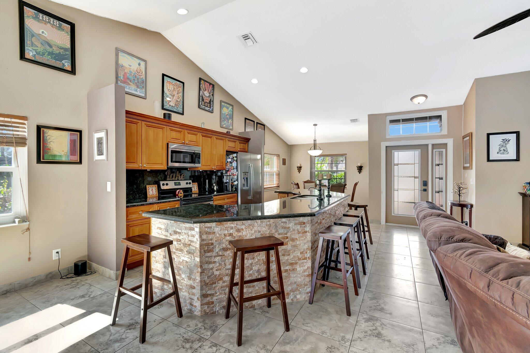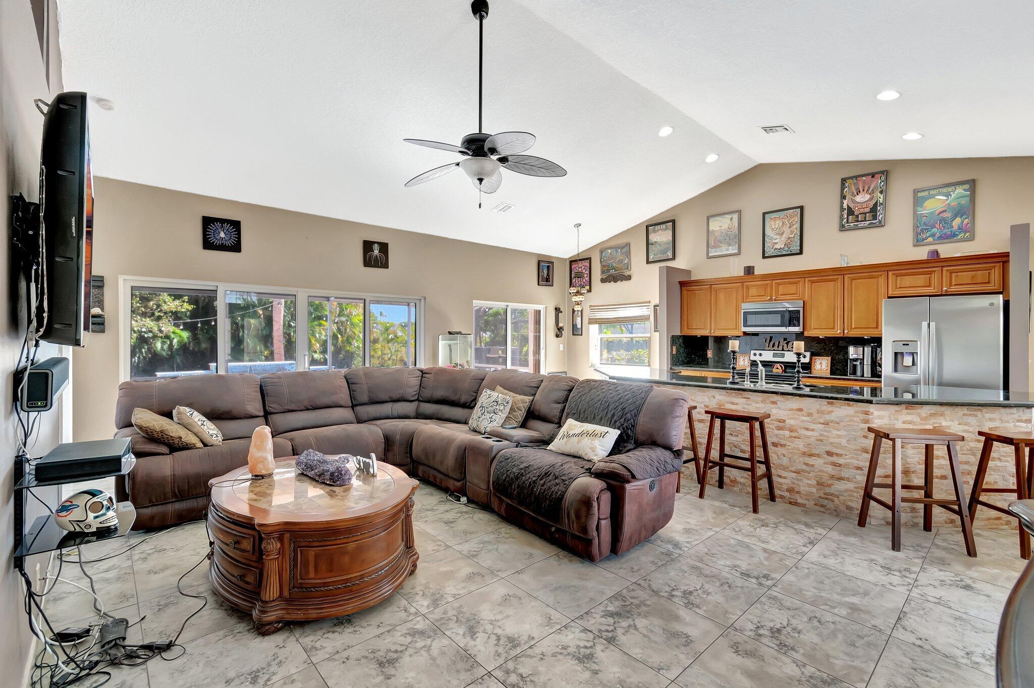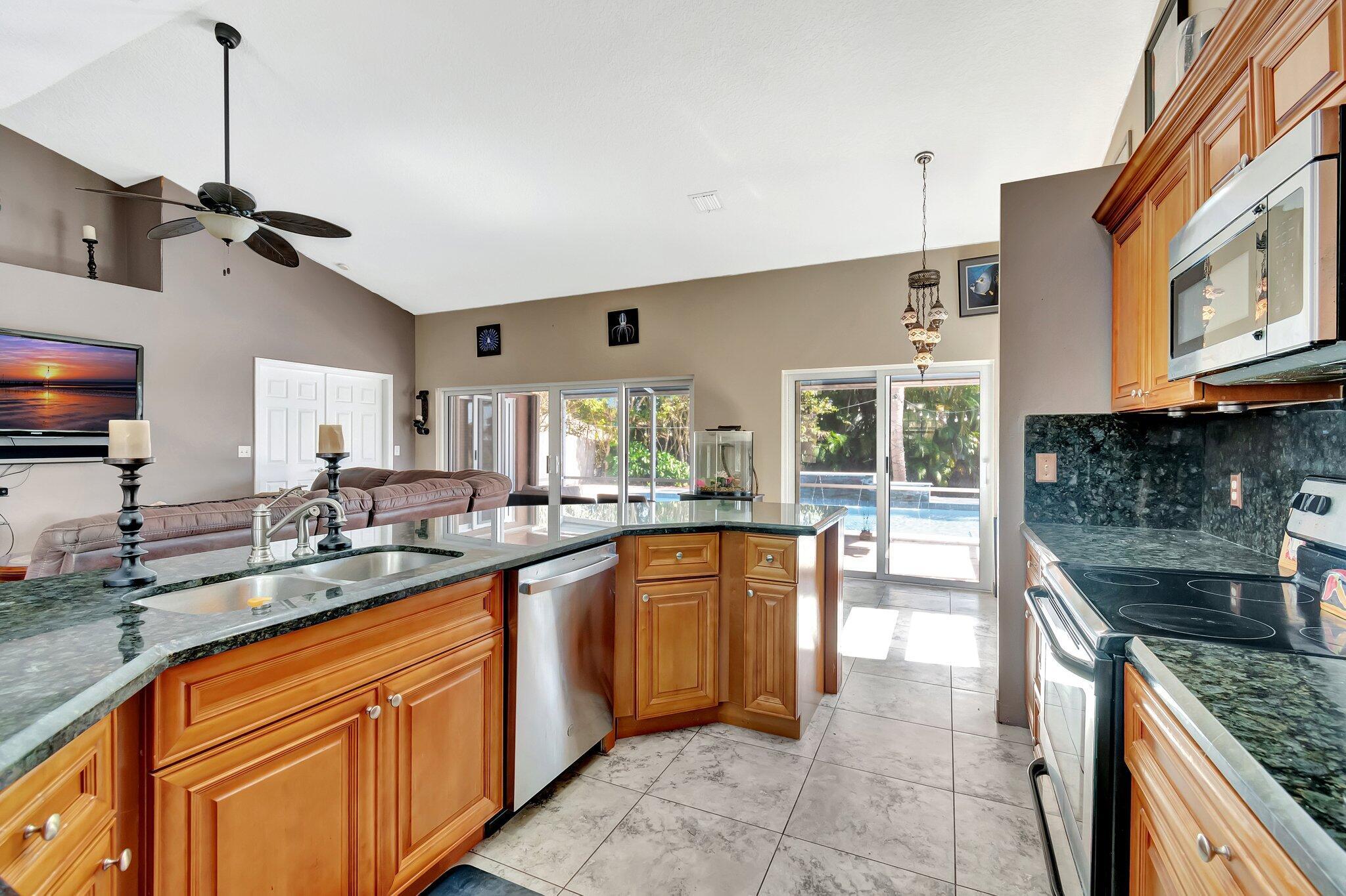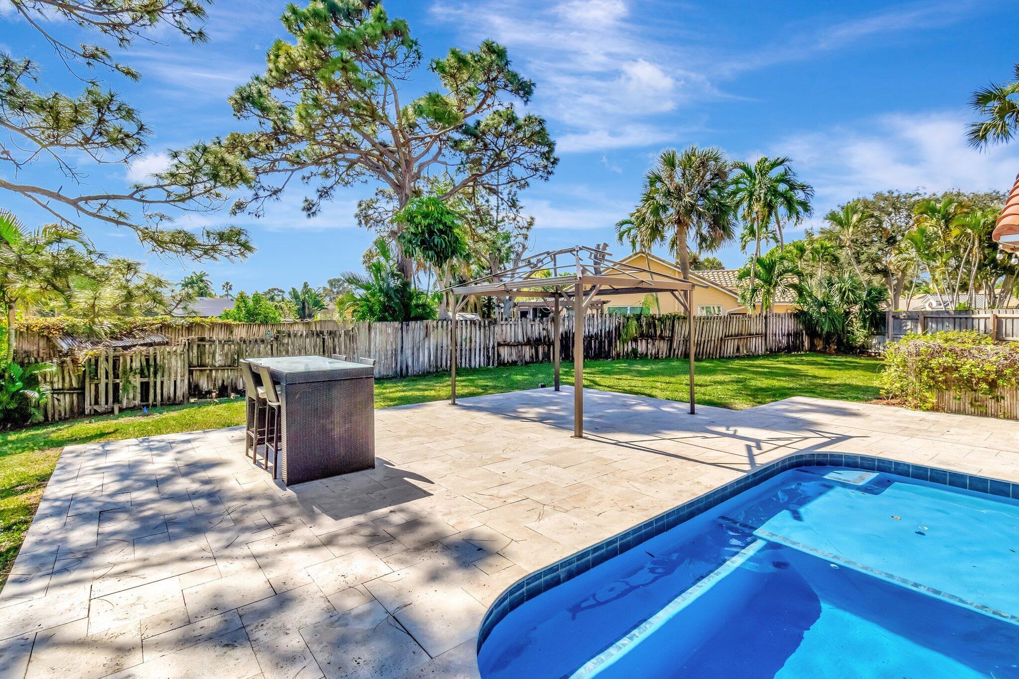 NEW Roof 2023, , NEW impact windows & doors 2023, stylish new front door! Welcome to this beautifully upgraded 3bed, 2bath pool home! Nestled in the desirable Sabal Lakes neighborhood, this home boasts outdoor Living at Its Best! The backyard is a true entertainer’s paradise: Largest fenced yard in the neighborhood; Large newly renovated volleyball pool with a lounge shelf. A newly installed screened-in travertine porch/patio/pool decking. Cozy gazebo; sand fire pit; Large side yard. Step inside, bright and airy open-concept living/family/kitchen/dining area, vaulted ceilings, granite countertops, and a massive kitchen island that comfortably seats eight! Expansive master suite with jacuzzi tub, 2sinks. Dedicated office space. separate laundry room