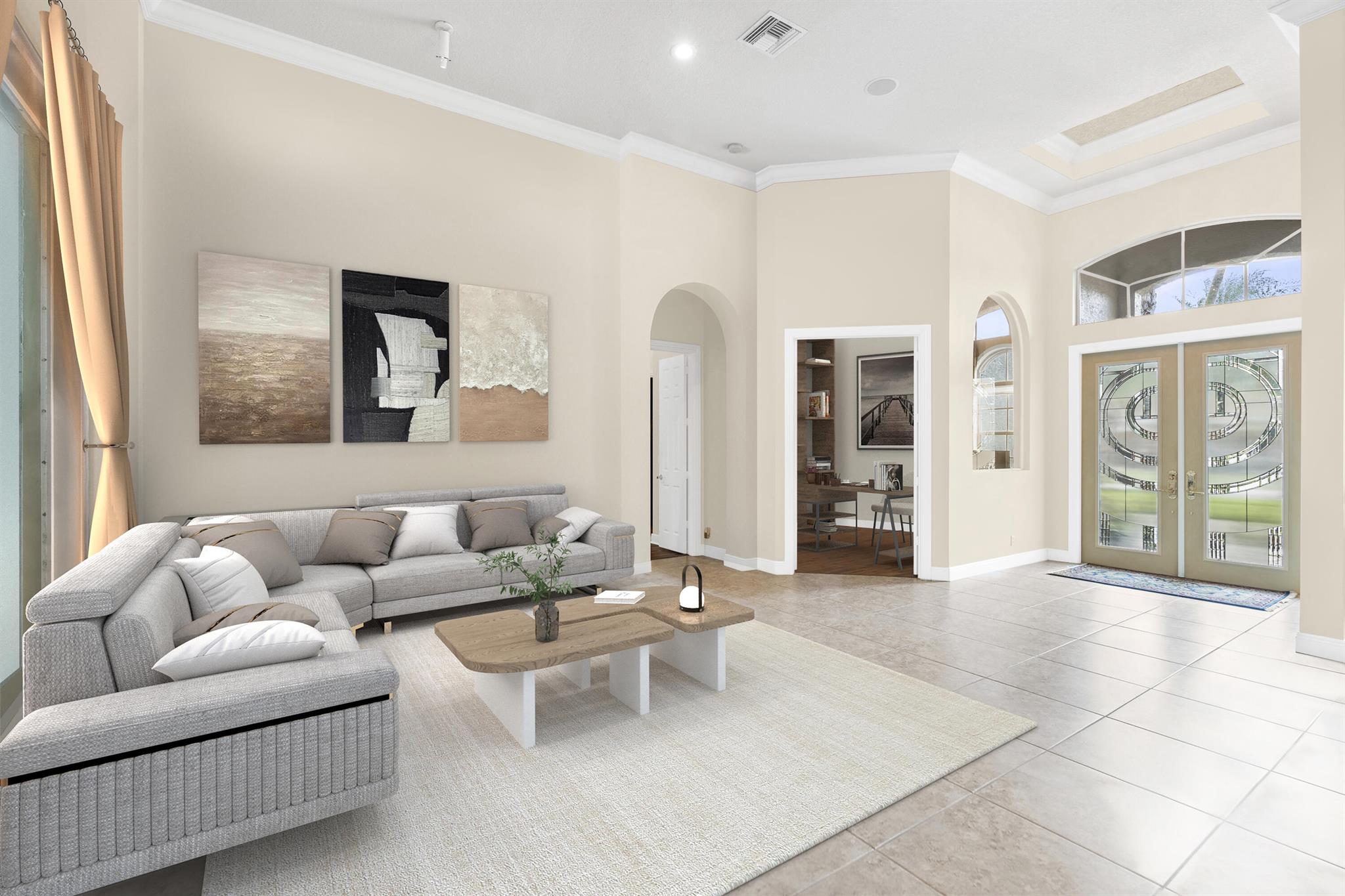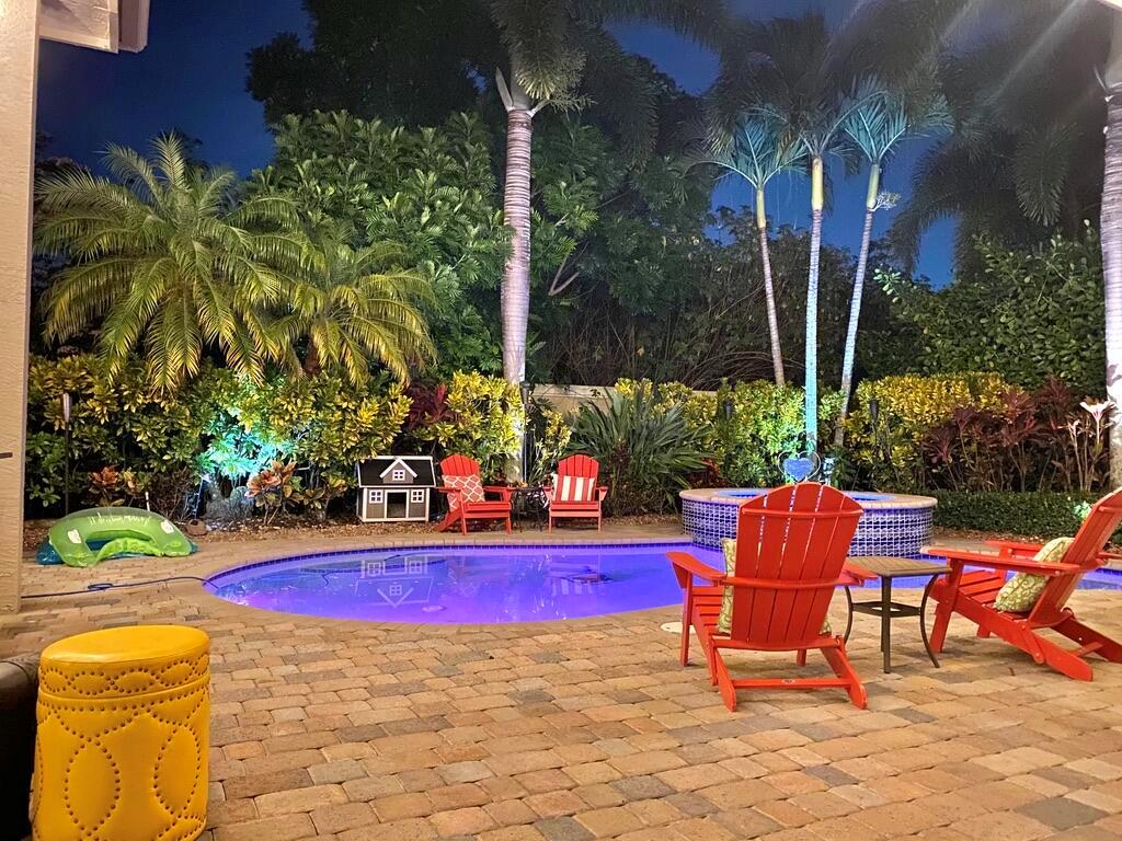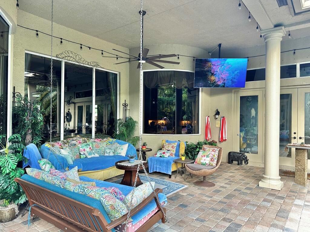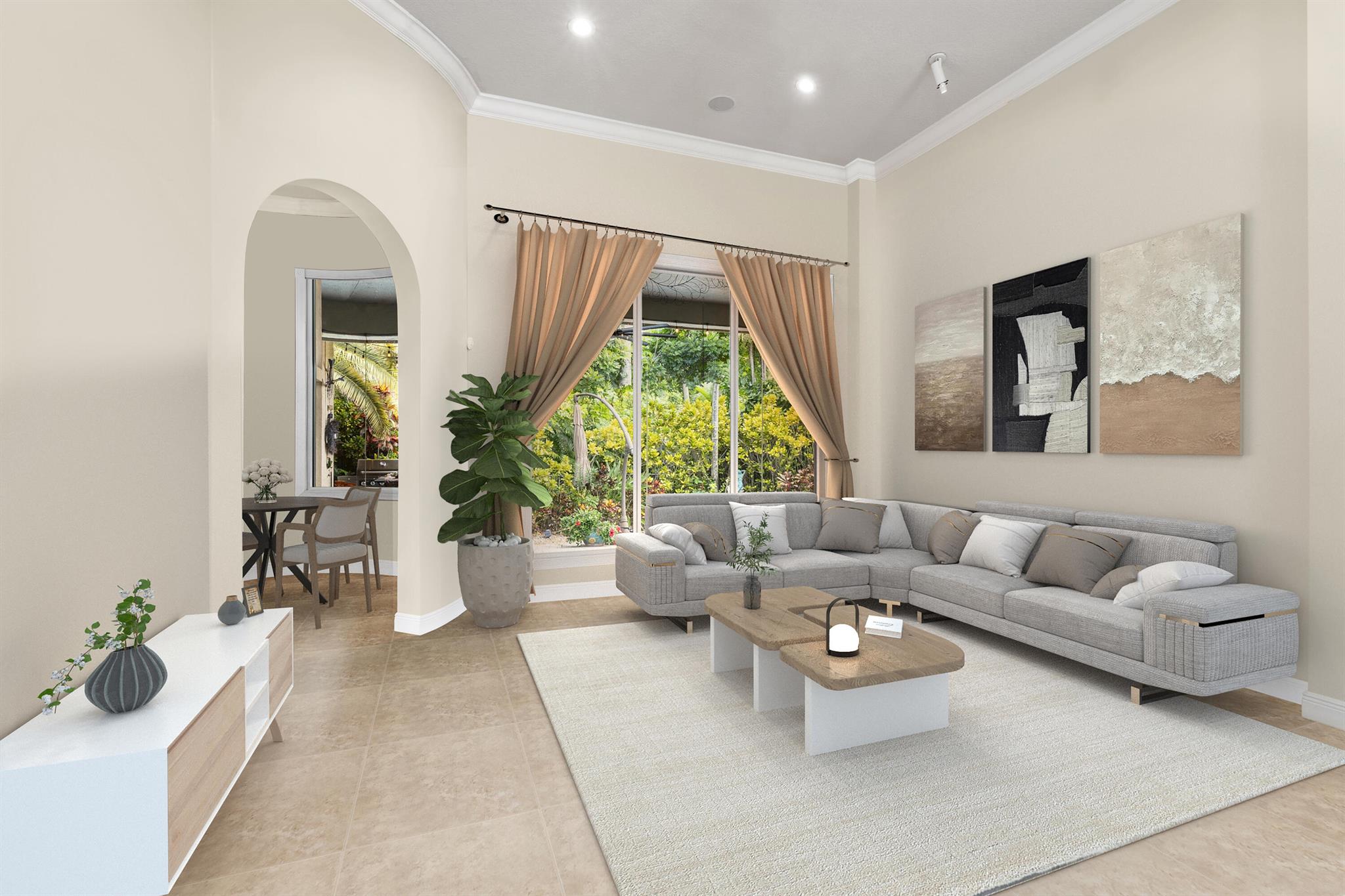 Versailles, Mediterranean stone arch. ”Chardonnay model, largest 1 lev. ”Chapelle Royale” Estate Section, 3,750 SF.: $175k+ updates: NEW ROOF, Gutters, Ext. Paint, Gas H/W Heater, 2 HVAC Systems all Pool Equip., Ft. Doors, Bar, #8 fans, #16 Art Gallery Projector lights, H/wd. Flrs., 8 TV’s, Custom lighting, new DW, gas ck. top, New Micro vented, kit. sink. 4 kingsize Bed – Bed Rms w/walk-in closets. Den/office/5th BR , Breakfast Table sits 6, Formal Dine Rm., Liv. Rm., Fam. Rm. rms. sits 12:,Ideal for Lg. Gatherings. 3.5 baths, inc. a cabana: Details: Crown & window trim, arched doorways, LED, Art & Chandelier lighting. Private back yard, shady covered lanai; Sunny Pool & Spa. Close to all daily needs. shopping, dining, banks, Equestrian venues, Turnpike, Great schools. (Also For Rent)