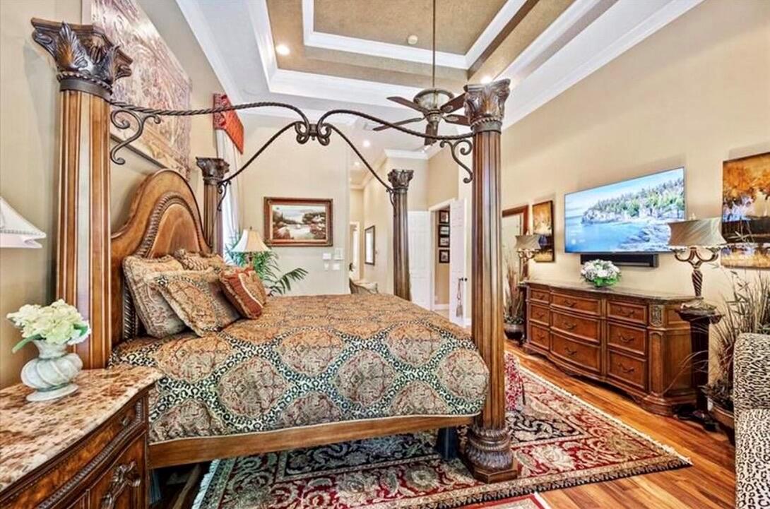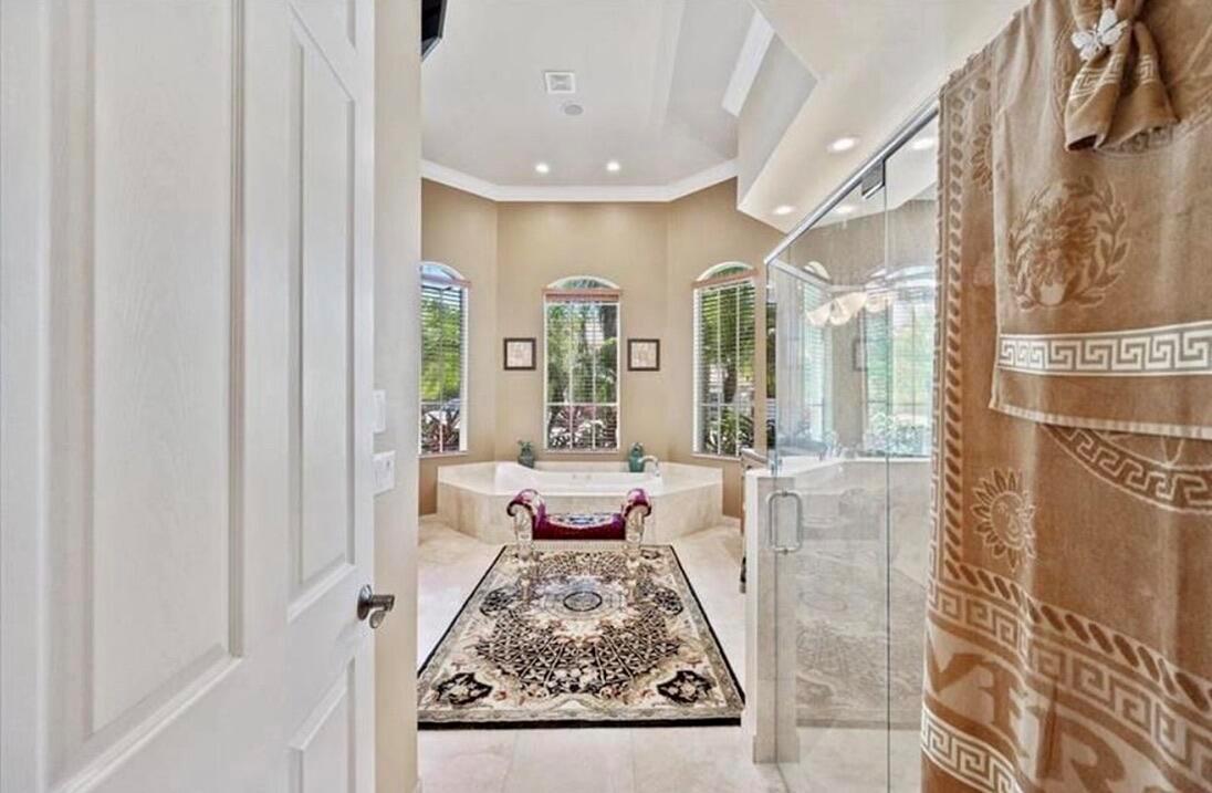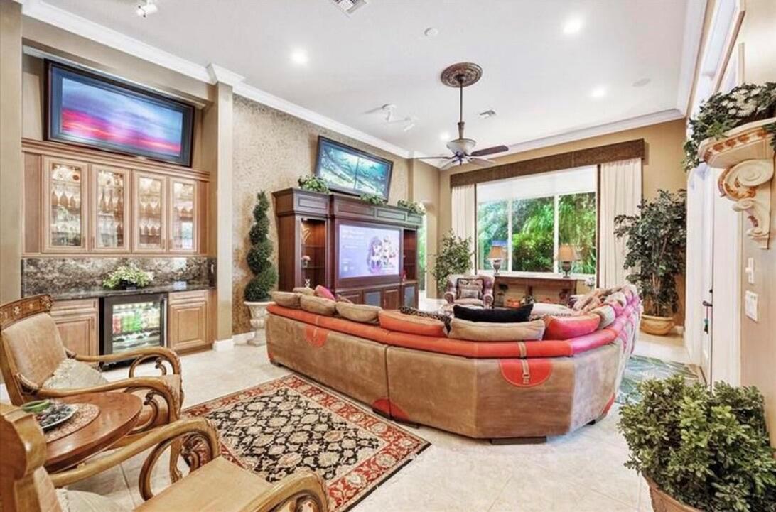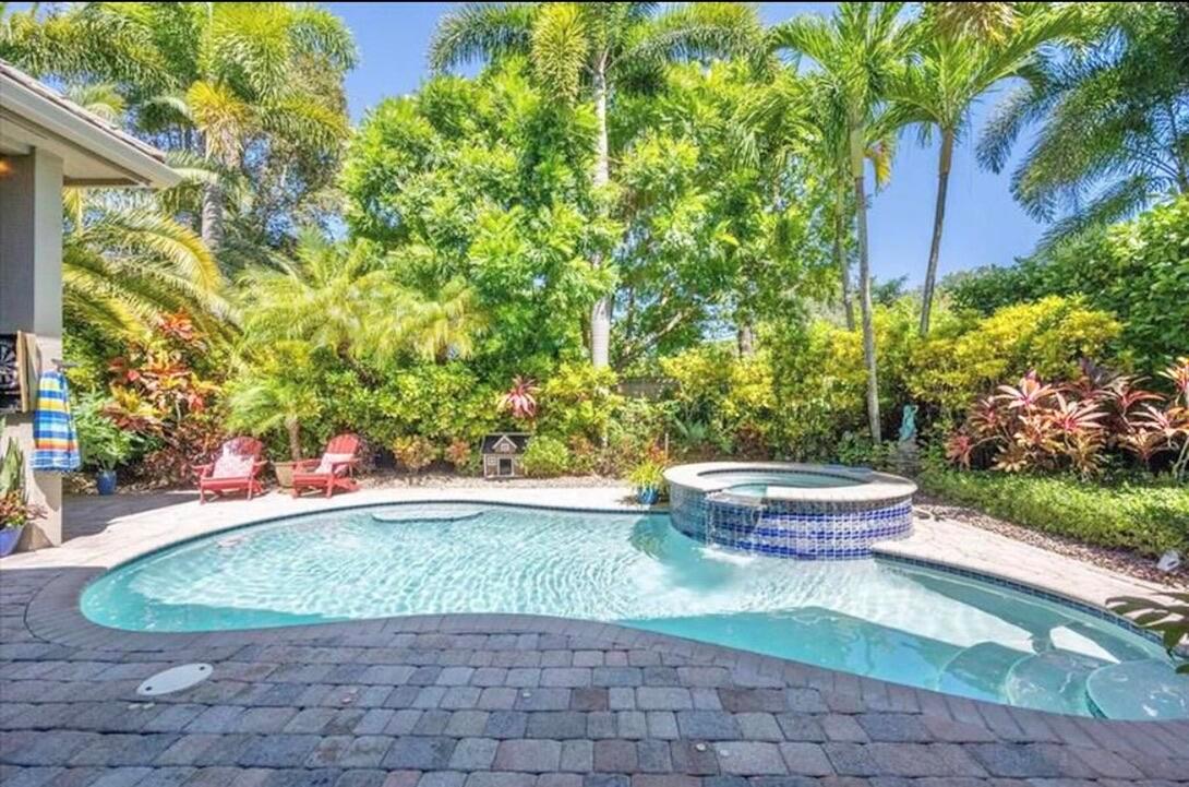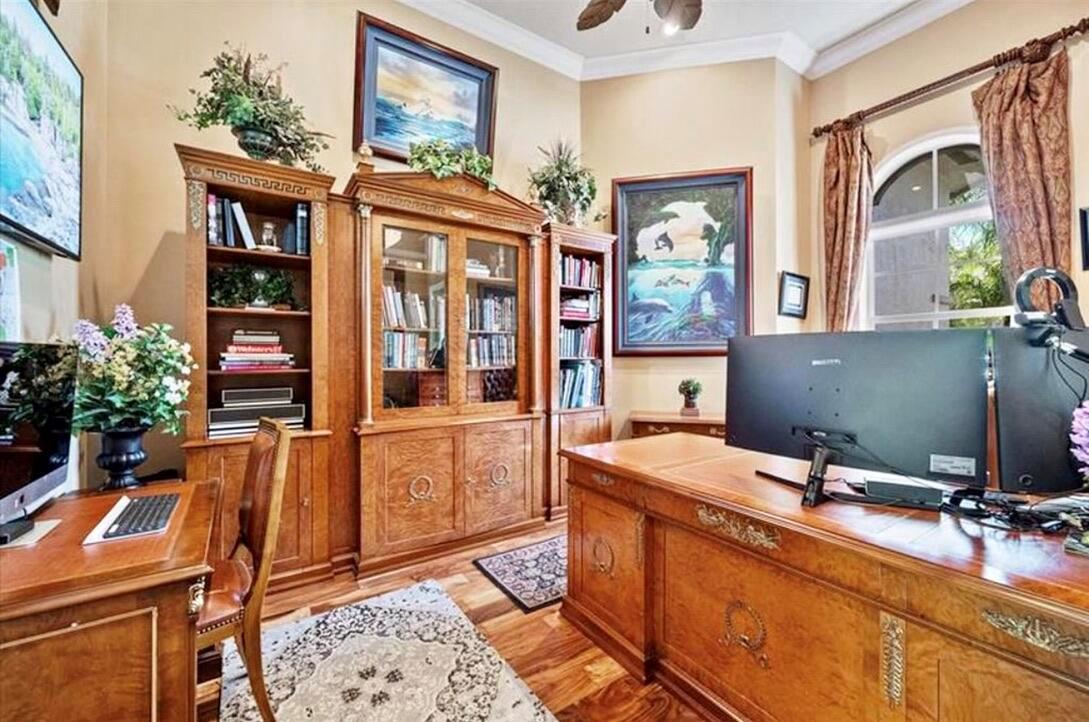 Versailles, Mediterranean stone arch. ”Chardonnay model, largest 1 lev. ”Chapelle Royale” Estate Section, 3,750 SF.: $175k+ updates: NEW ROOF, Gutters, Ext. Paint, Gas H/W Heater, 2 HVAC Systems all Pool Equip., Ft. Doors, Bar, #8 fans, #16 Art Gallery Projector lights, H/wd. Flrs., 8 TV’s, Custom lighting, new DW, gas ck. top, New Micro vented, kit. sink. 4 kingsize Bed – Bed Rms w/walk-in closets. Den/office/5th BR , Breakfast Table sits 6, Formal Dine Rm., Liv. Rm., Fam. Rm. rms. sits 12:,Ideal for Lg. Gatherings. 3.5 baths, inc. a cabana: Details: Crown & window trim, arched doorways, LED, Art & Chandelier lighting. Private back yard, shady covered lanai; Sunny Pool & Spa. Close to all daily needs. shopping, dining, banks, Equestrian venues, Turnpike, Great schools. (Also For Rent)