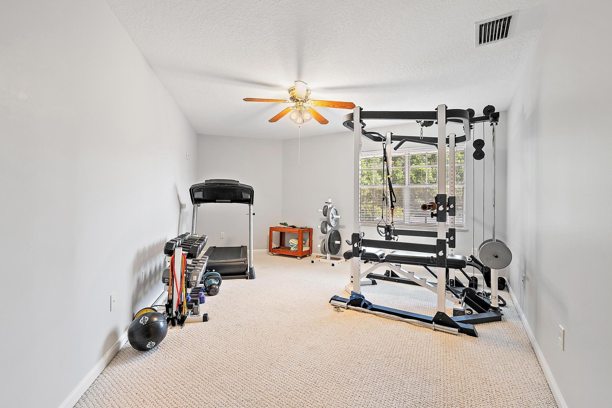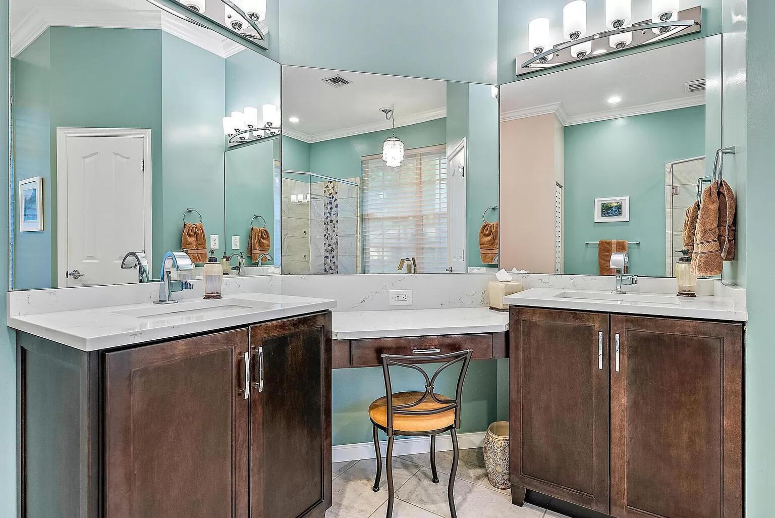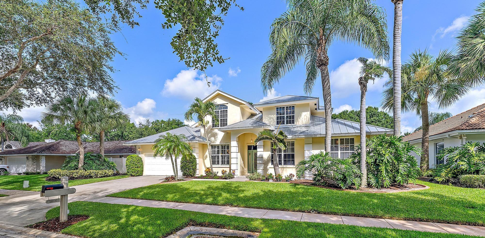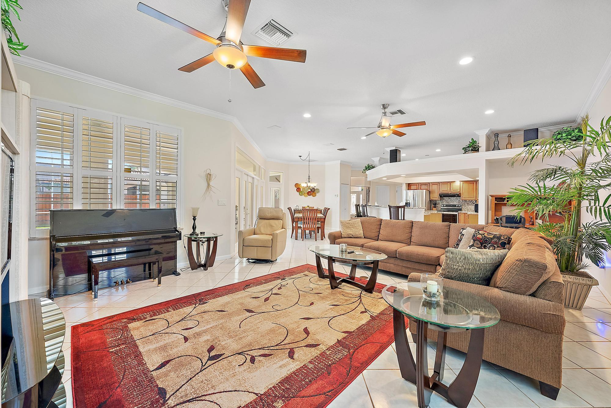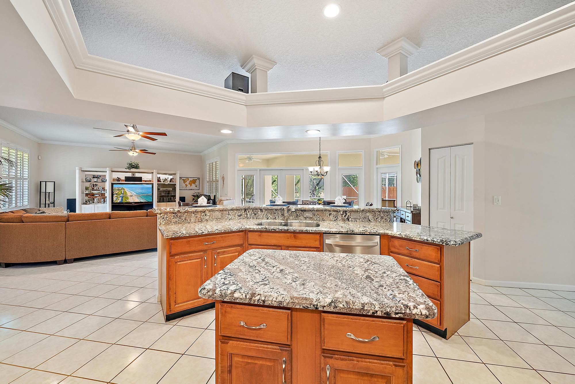 Located in The Shores of Jupiter, this 2-story pool home offers 3,665 sq ft of living space, 5 bedrooms, a den/office (convertible to a 6th bedroom) and 2.5 baths. An open floor plan includes tile flooring and crown molding on the main level, with plantation shutters. The kitchen boasts wood cabinetry, a central island, stainless steel appliances (2021) and granite countertops. A laundry room with LG washer/dryer (2016) is off the kitchen. French doors lead to a resurfaced, screen-enclosed pool and patio with preserve views. The main-level primary suite offers a renovated (2021) spa-like bathroom. Upstairs, 4 spacious bedrooms and multiple walk-in closets provide ample storage. A newer metal roof (2014)