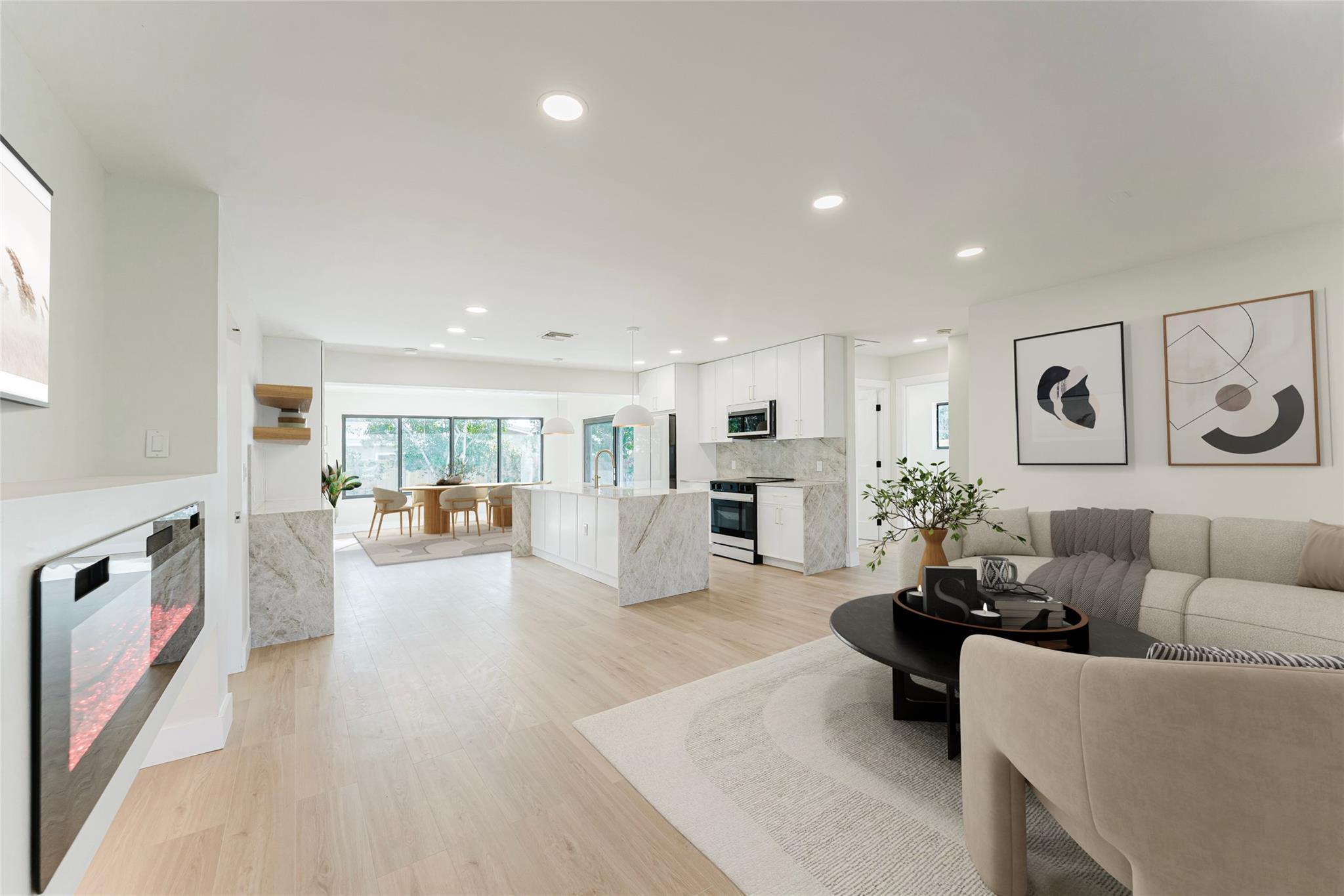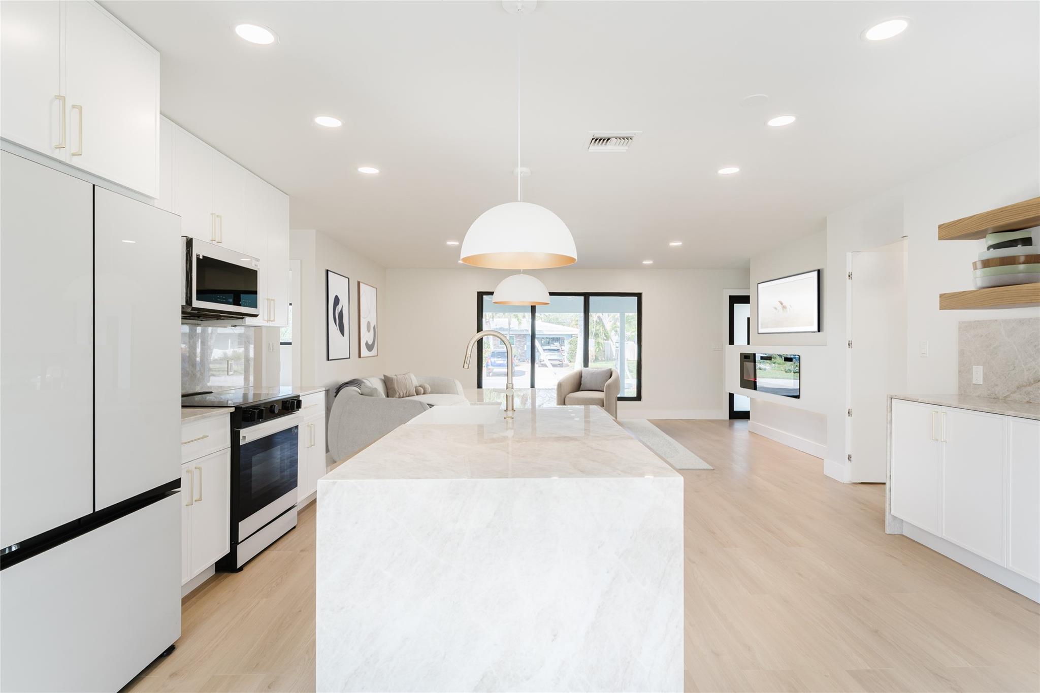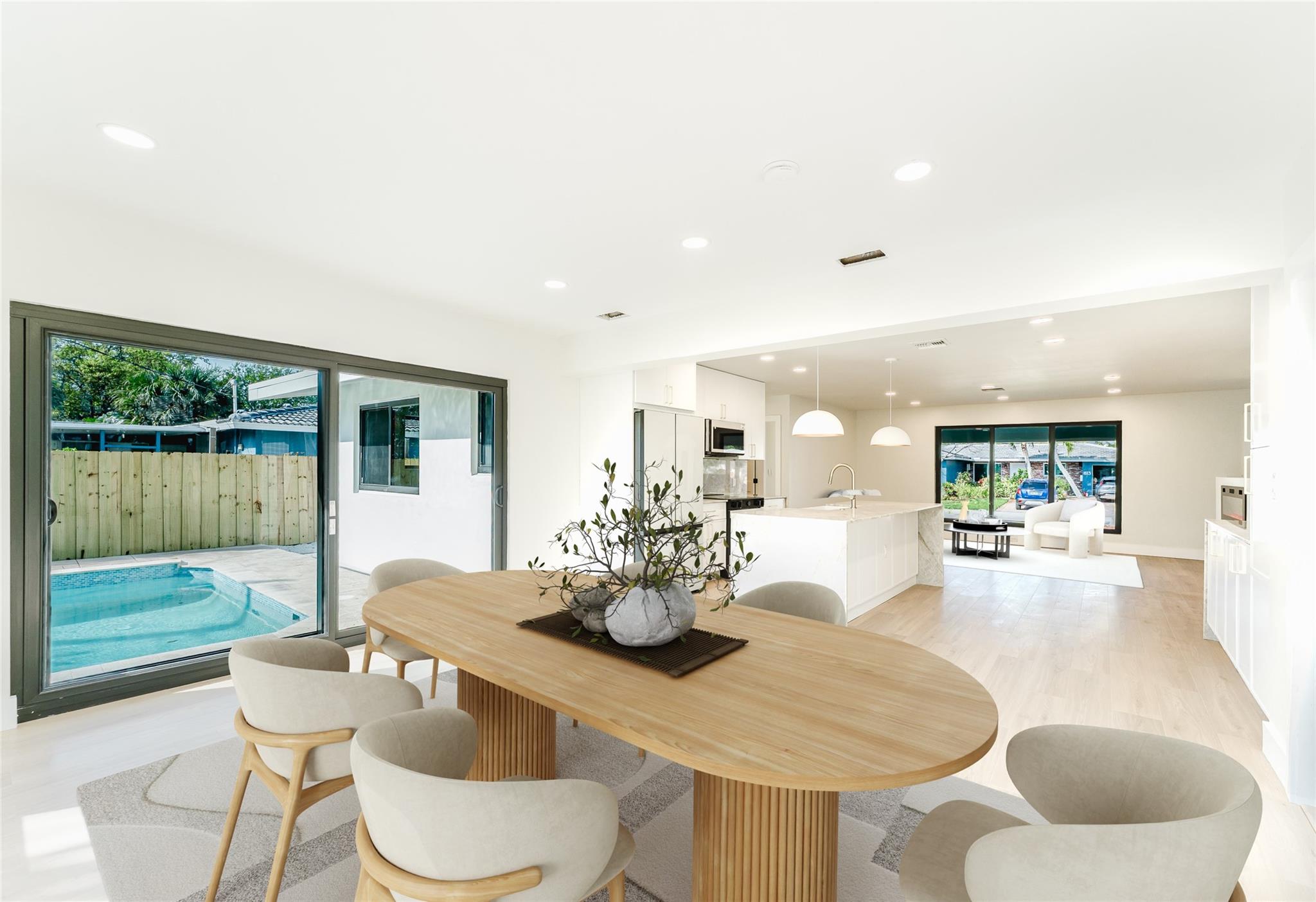Welcome home to this beautiful open concept 3/2 single family home with a pool in the desirable coastal area The Cove in Deerfield Beach. This home has been fully updated with new kitchen cabinets, farmhouse sink, luxury quartzite countertops with top of the line designed appliances. Enjoy your cozy living room with an electrical fireplace. The dining room looks out to the new pool area! All new bathrooms. New 2025 impact windows and doors. New washer/dryer. New paved driveway. Roof replaced in 2023. Plumbing and electric upgraded recently. Side yard is 11ft by 31ft with ample room for a boat! Minutes to the beach, restaurants, grocery, and shopping. This is the home you are looking for!