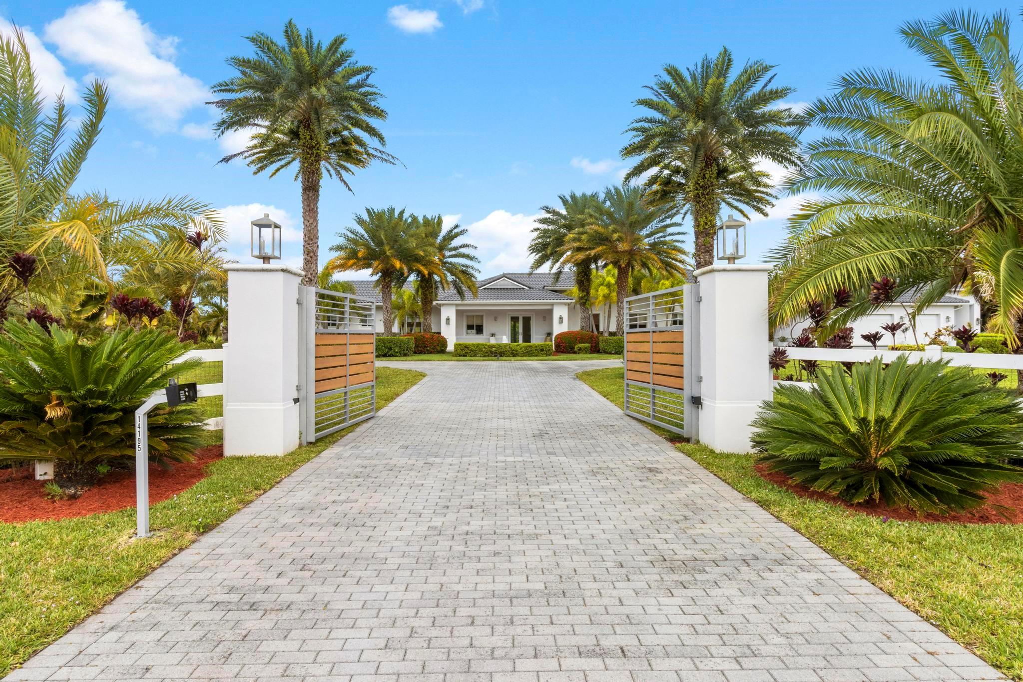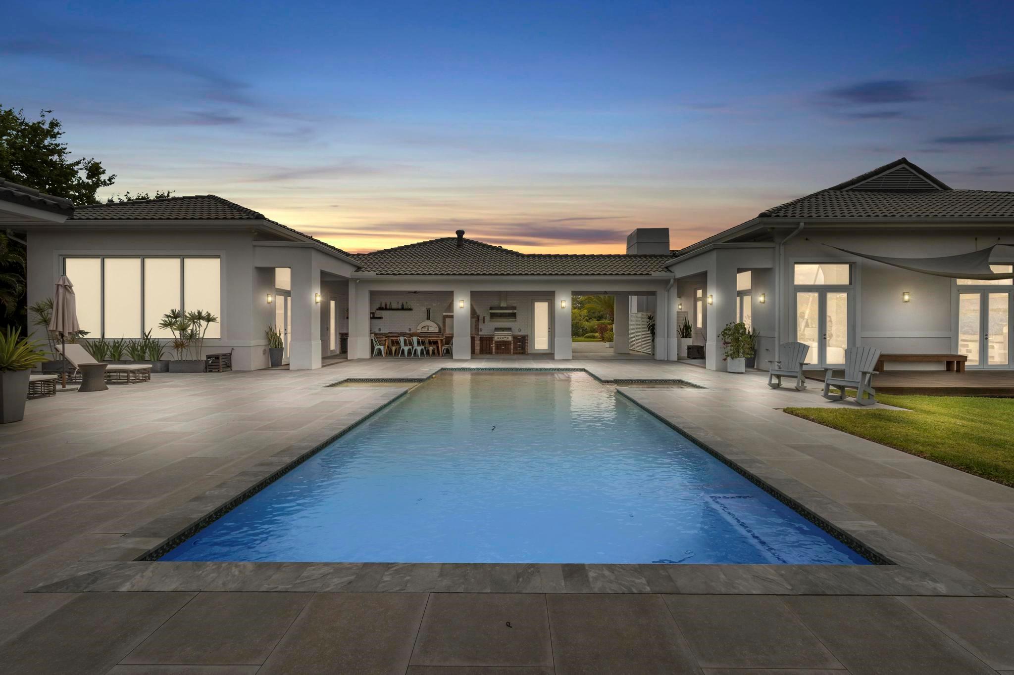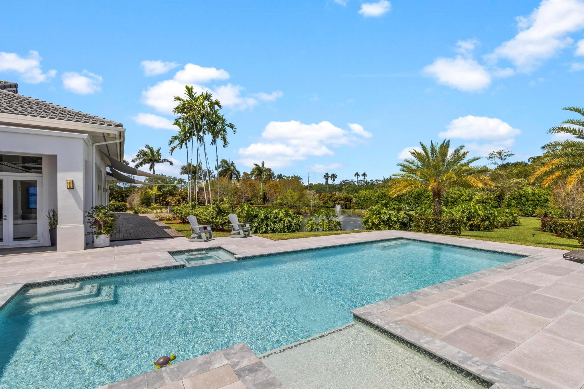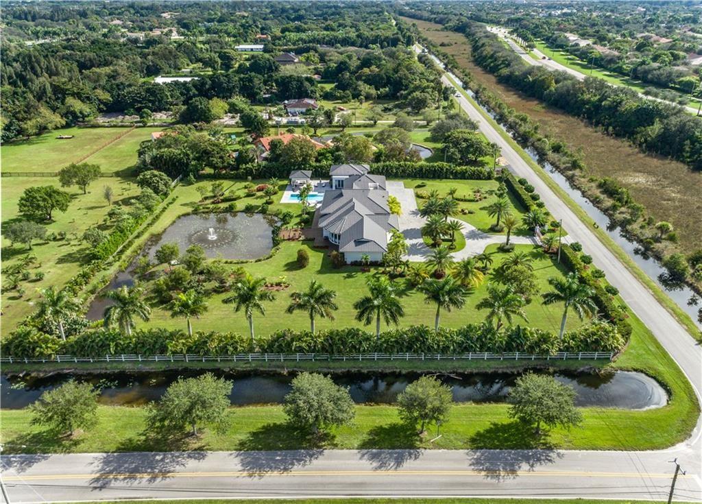 Escape to your Private 2.3-ac Estate in Sunshine Ranches with beautiful lush tropical landscaping. Luxurious 6,200 sqft residence harmonizing rustic charm w/modern design. Enjoy an open floorplan w/Italian porcelain floors, vaulted ceilings & an abundance of natural light. This exquisitely renovated home offers a Chef’s kitchen w/hand-painted Italian-tile backsplash, beautiful cabinetry adorned w/stunning quartz countertops & premium appliances. Picturesque views of tropical-foliaged grounds featuring a storybook pond & Zen-setting. Seamlessly transition to al fresco entertaining w/spacious covered terraces, custom built-in BBQ, Argentinian Rotisserie Grill, Old World Pizza Brick Oven & full Summer Kitchen amenities. Resort-style salt-water pool & Guest House complete this marvelous home!