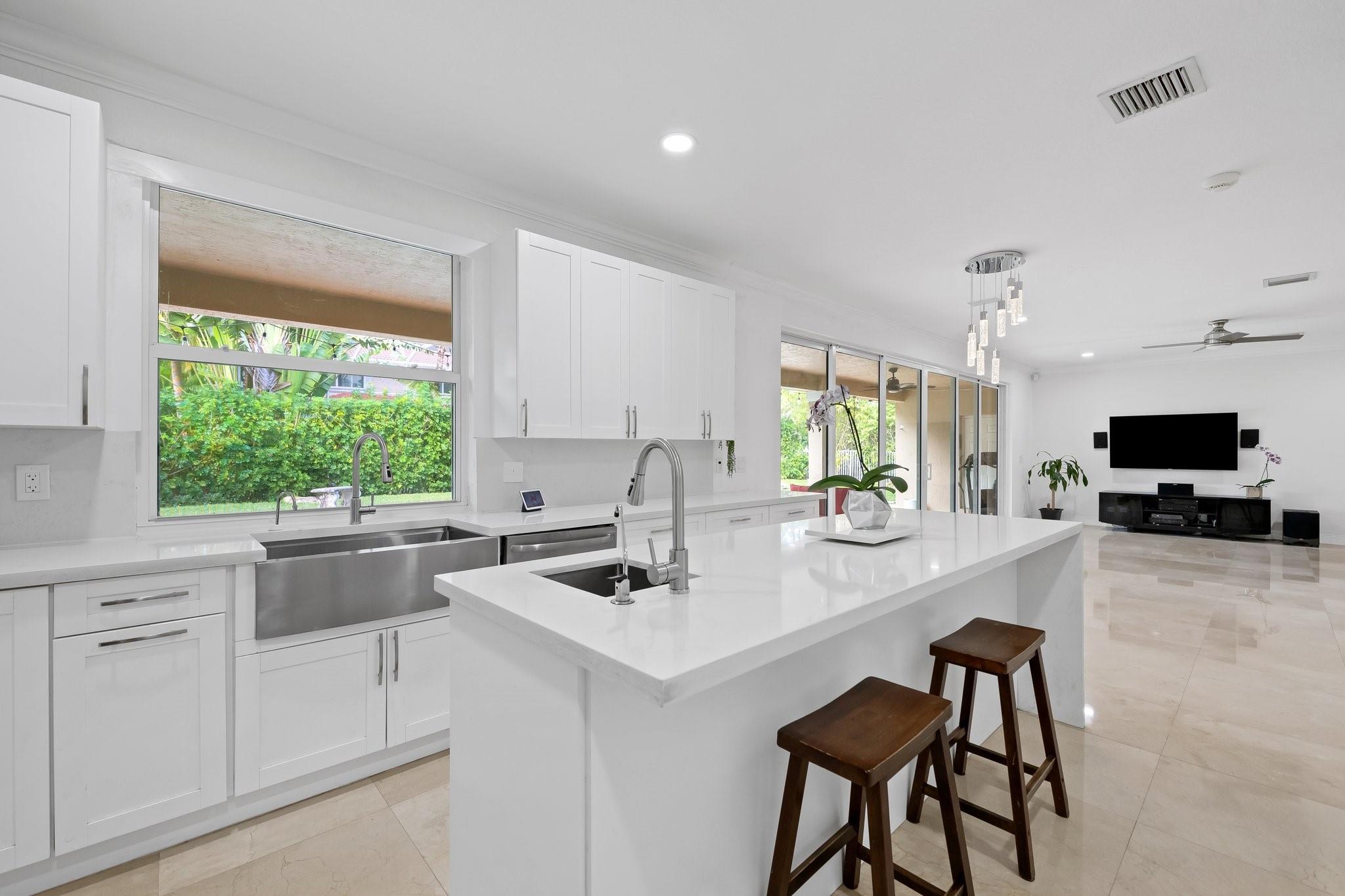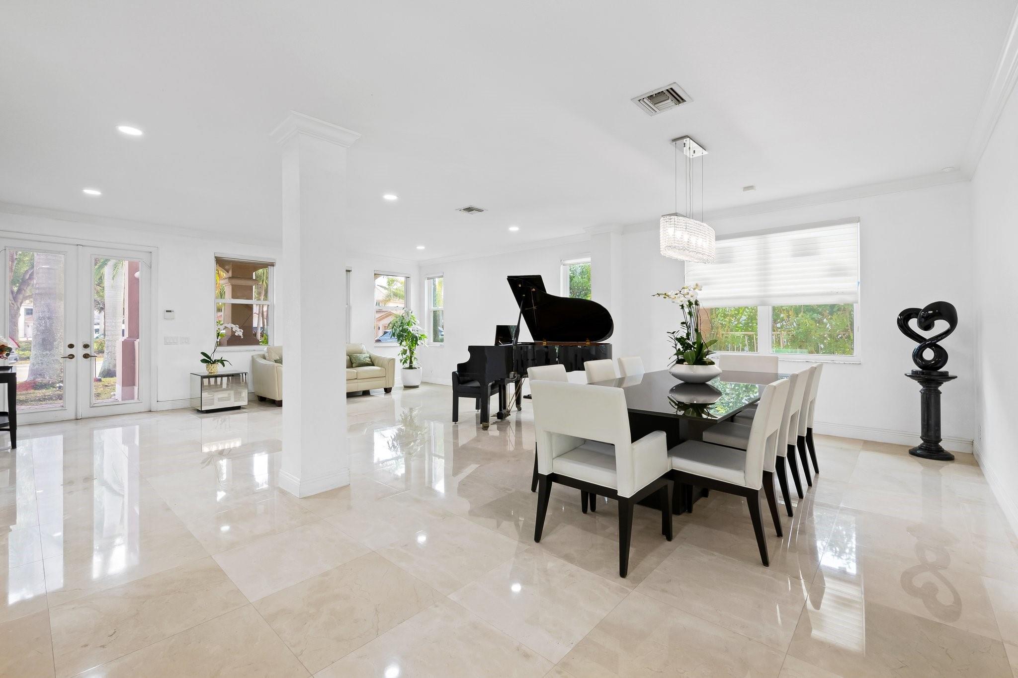 Located behind the gates of the prestigious neighborhood, Weston Hills Country Club. This 7 bedroom 5 bathroom home features beautiful marble floors throughout the first floor and the grand glass and marble staircase, The brand-new kitchen features white shaker cabinets, quarts countertops, and stainless steel appliances. Expansive impact sliding glass doors lead heated saltwater pool/spa, large covered patio-perfect for entertaining.