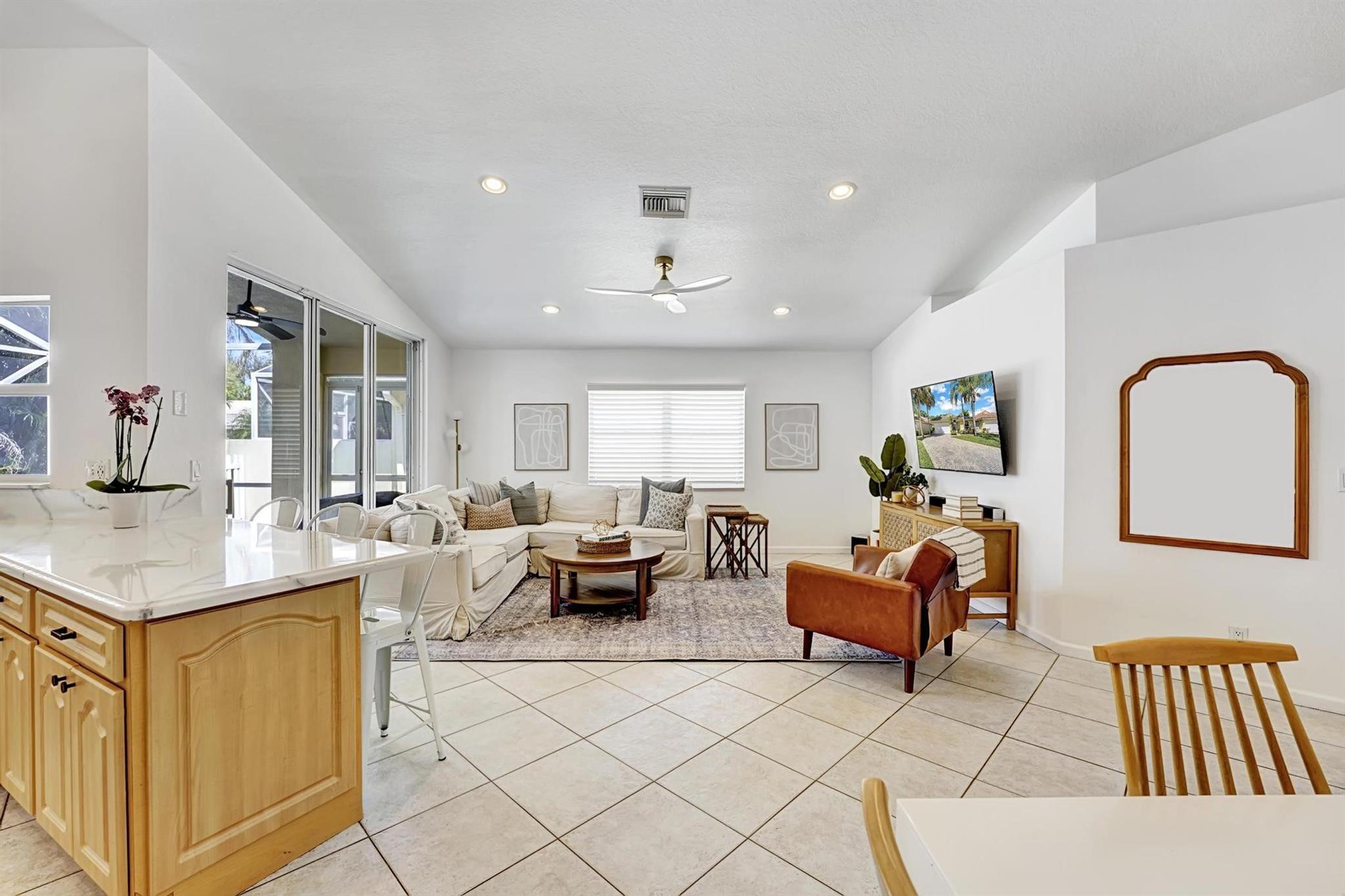 Located in the gated community of Palm Beach Bath and Tennis, this quiet and family-friendly neighborhood offers resort-style living with a low HOA that includes landscaping, hurricane-season tree trimming, a security gate, cable with HBO, an ADT security system, and full maintenance of all amenities. The community boasts a pool and spa, a clubhouse, a clay tennis court, and a basketball court, providing plenty of opportunities for recreation and relaxation.