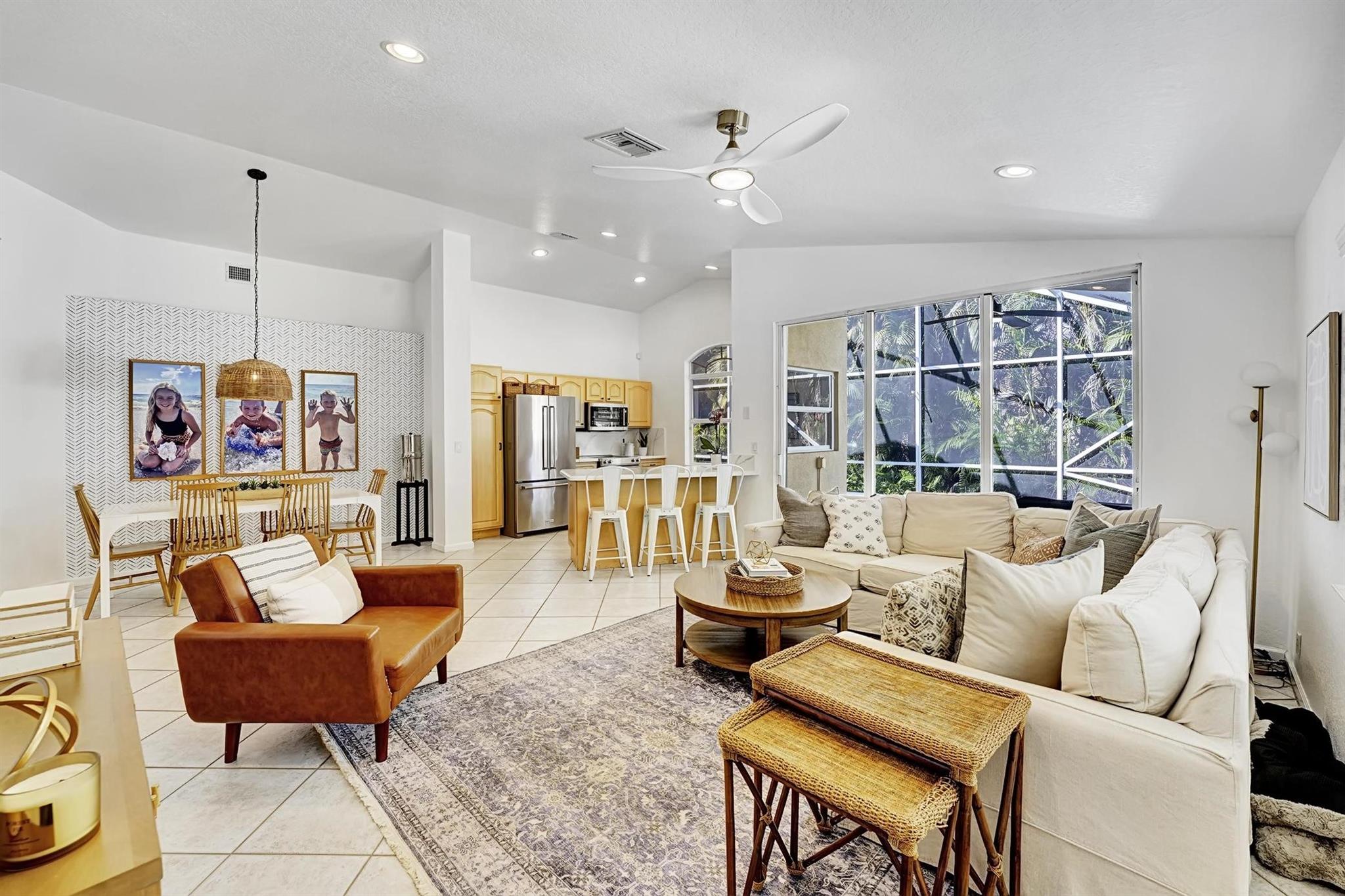 Just 5 miles from the beach, this updated 3-bedroom, 2.5-bath home features an open floor plan with high ceilings, perfect for entertaining. Enjoy a screened-in patio and a gated side yard for added privacy. With newer appliances and fresh paint throughout, this home is move-in ready. Come enjoy the coastal lifestyle!