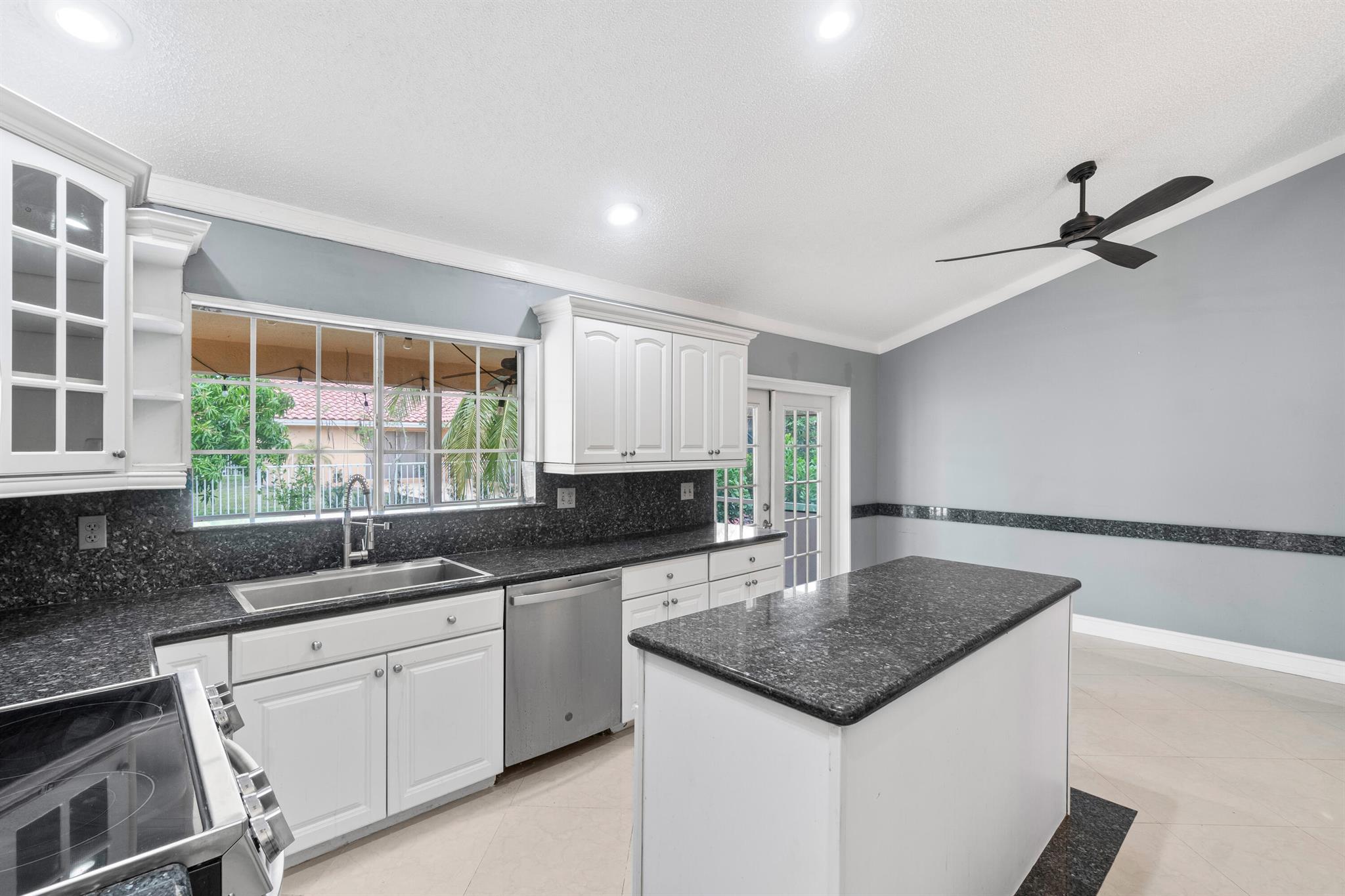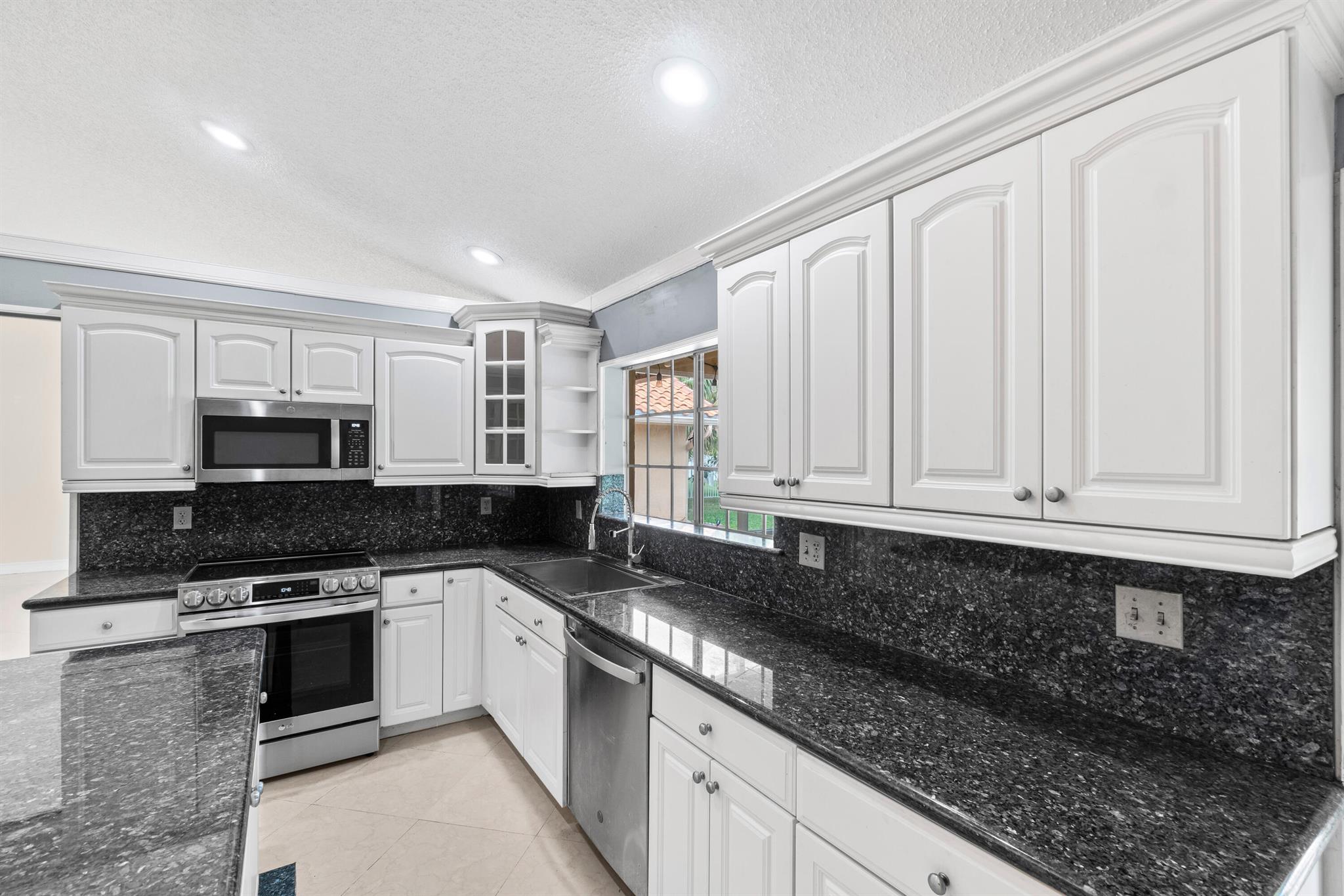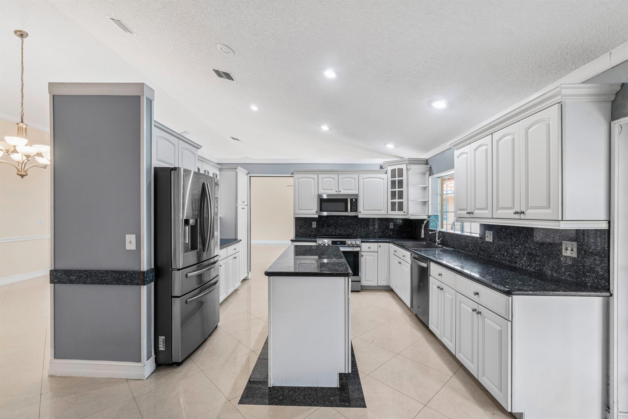 Welcome to this beautiful 3-bedroom, 2-bathroom home in the highly sought-after Sun Valley community. The home features a high vaulted ceiling and an inviting open layout, making it feel spacious and airy. Each of the 3 bedrooms is generously sized, and the bathrooms have been upgraded with separate glass-door showers, dual sinks, and elegant granite countertops.The updated kitchen is a chef’s dream with all-new high-end appliances and sleek granite tops, creating a stylish and functional space. For added peace of mind, a brand-new Goodman AC and water heater were installed in 2024. The roof, a durable Barrel Roof, was installed in 2009, and most of the windows and sliding doors are hurricane-impact rated.