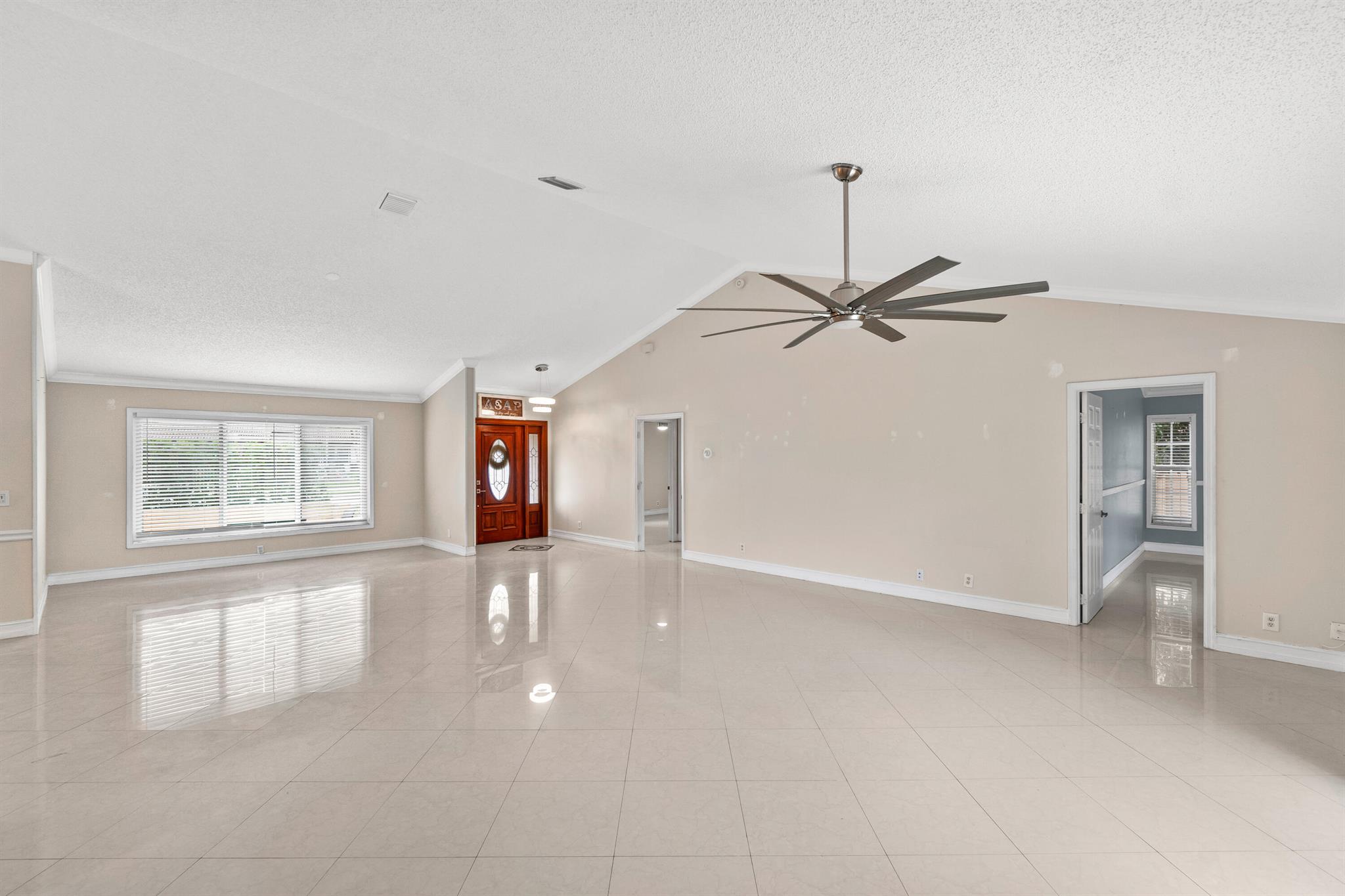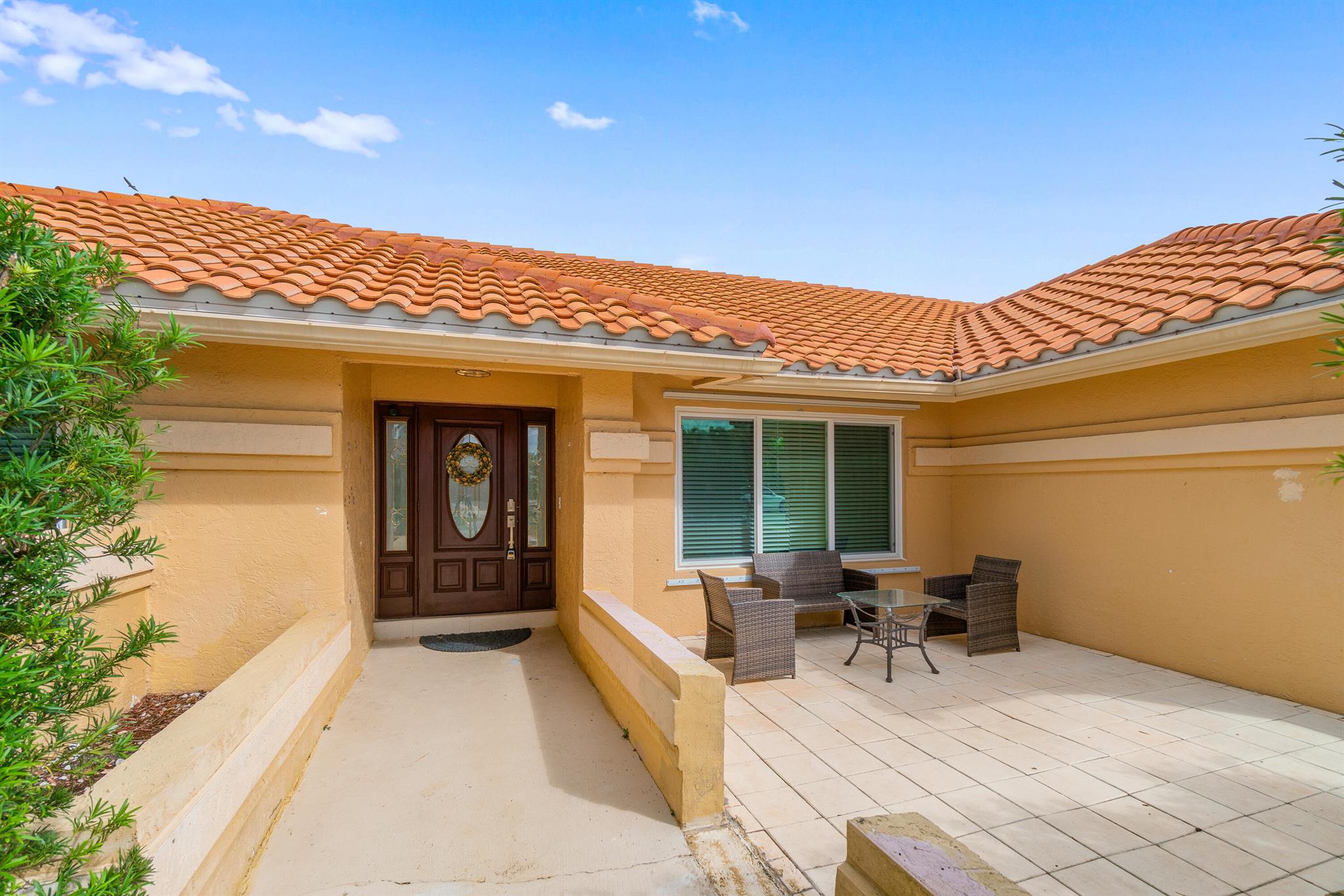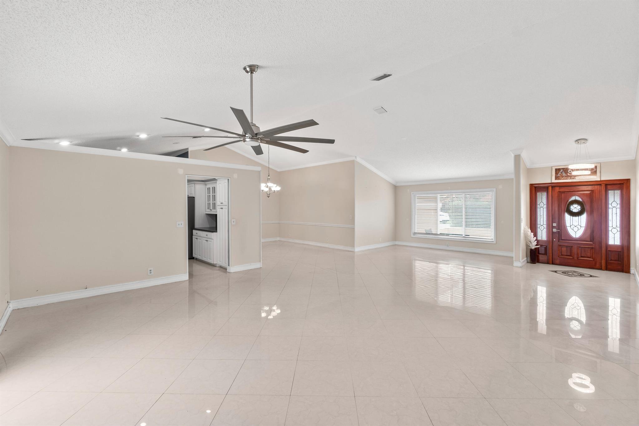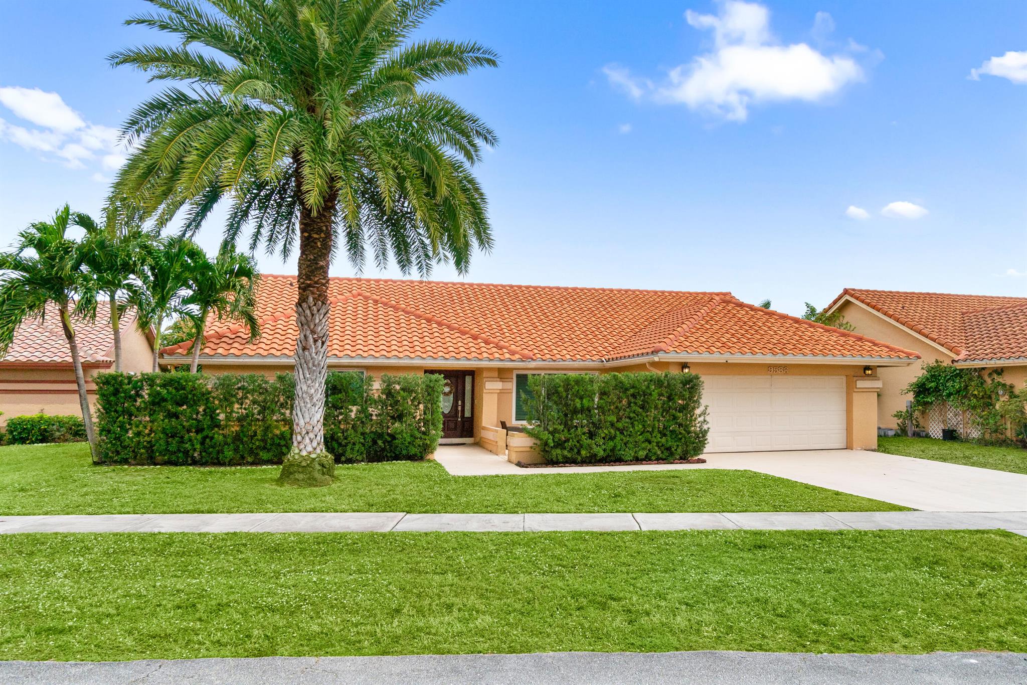 Welcome to this beautiful 3-bedroom, 2-bathroom home in the highly sought-after Sun Valley community. The home features a high vaulted ceiling and an inviting open layout, making it feel spacious and airy. Each of the 3 bedrooms is generously sized, and the bathrooms have been upgraded with separate glass-door showers, dual sinks, and elegant granite countertops.The updated kitchen is a chef’s dream with all-new high-end appliances and sleek granite tops, creating a stylish and functional space. For added peace of mind, a brand-new Goodman AC and water heater were installed in 2024. The roof, a durable Barrel Roof, was installed in 2009, and most of the windows and sliding doors are hurricane-impact rated.