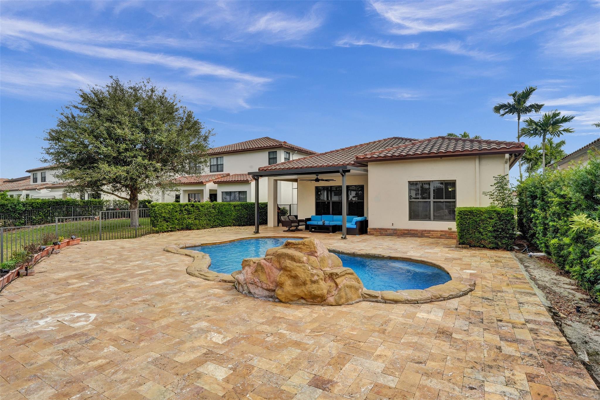 Move right in to this perfect Monterra home in sought after Cooper City. This 4 bed 3 bath Pool and lake home in a cul de sac has been impeccably maintained. The split bedroom with Volume ceilings and open floorpan are perfect to suit anyone’s needs. The backyard is just paradise complete with pergola, extended pavers, exotic waterfall pool, mango, avocado trees, and a beautiful relaxing lake view. Walking distance to places of worship. Zoned to the best A rated school, Embassy Creek Elementary .The 24 hour security and amenities provided in clubhouse include pool, splash pad for kids, 2 gyms, tennis court, basketball court, walking trails, and dog parks . Each subdivision has its own playground.
