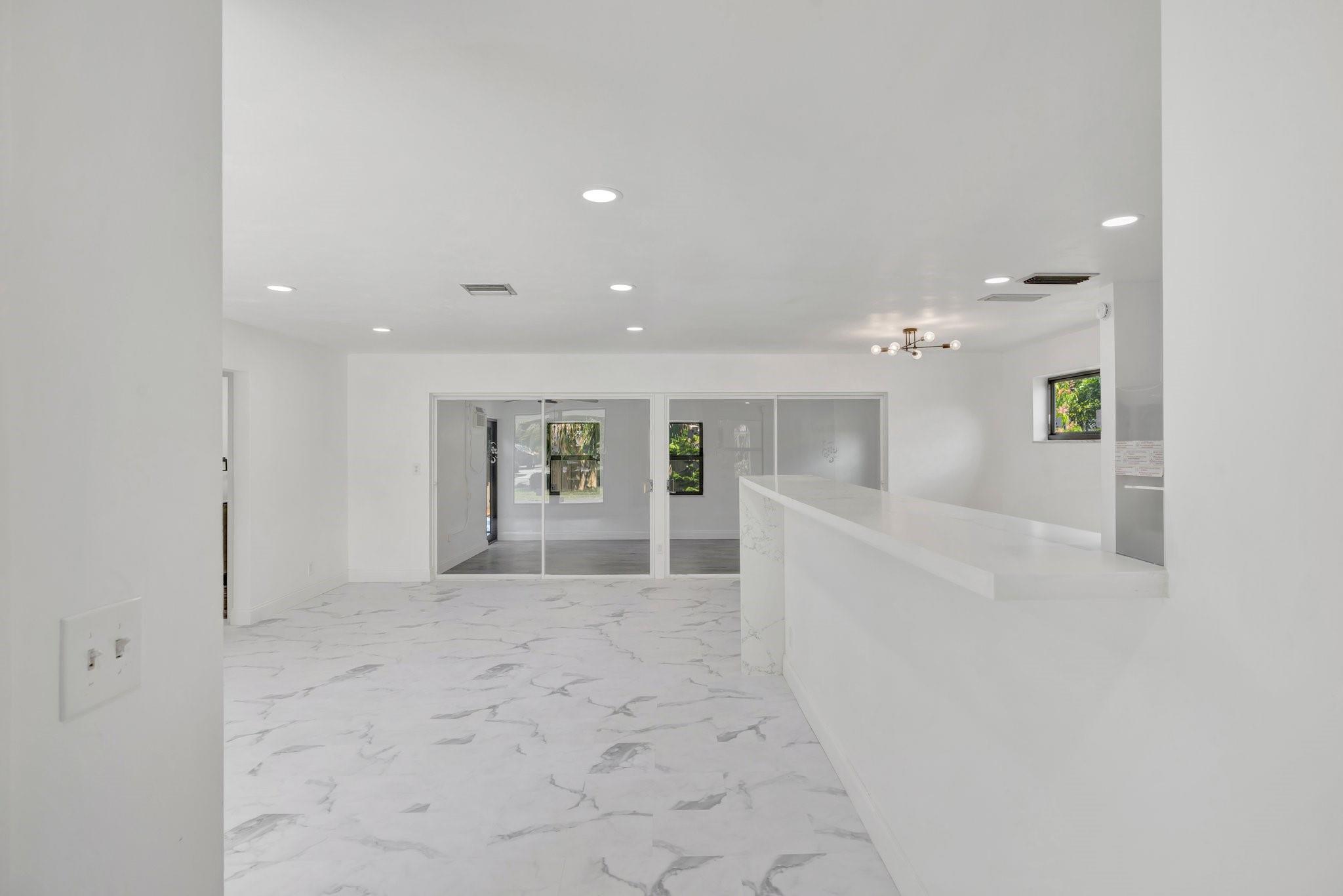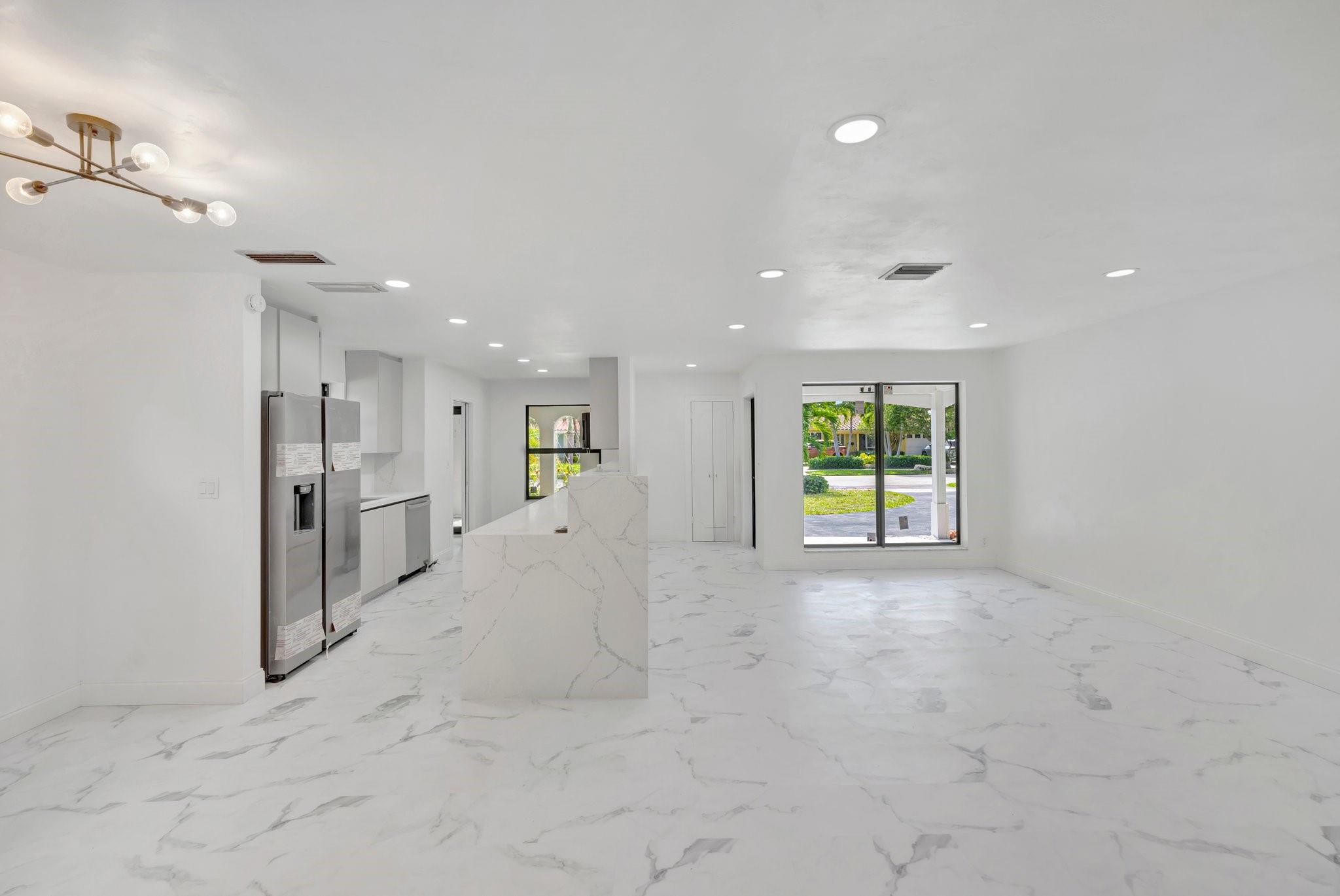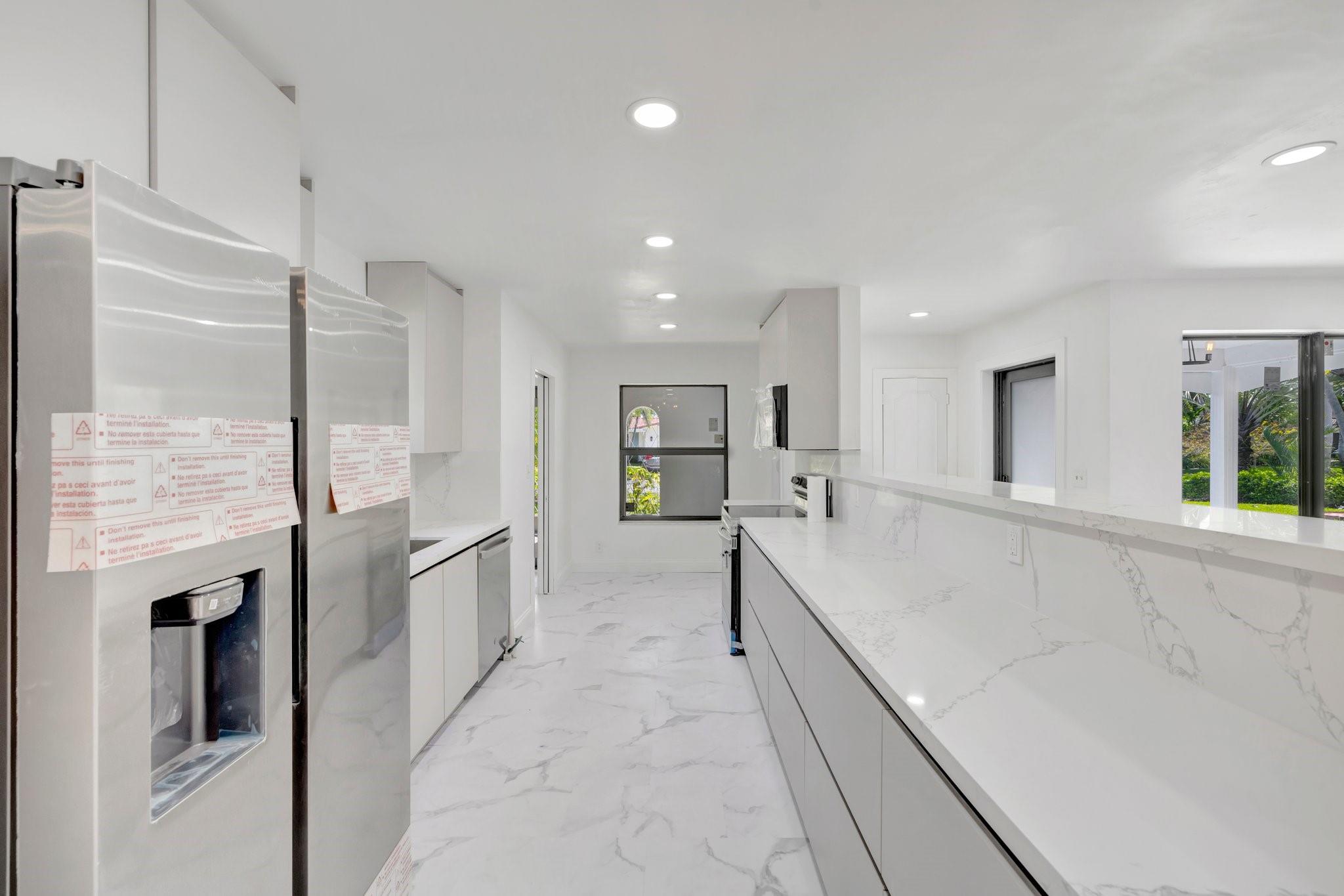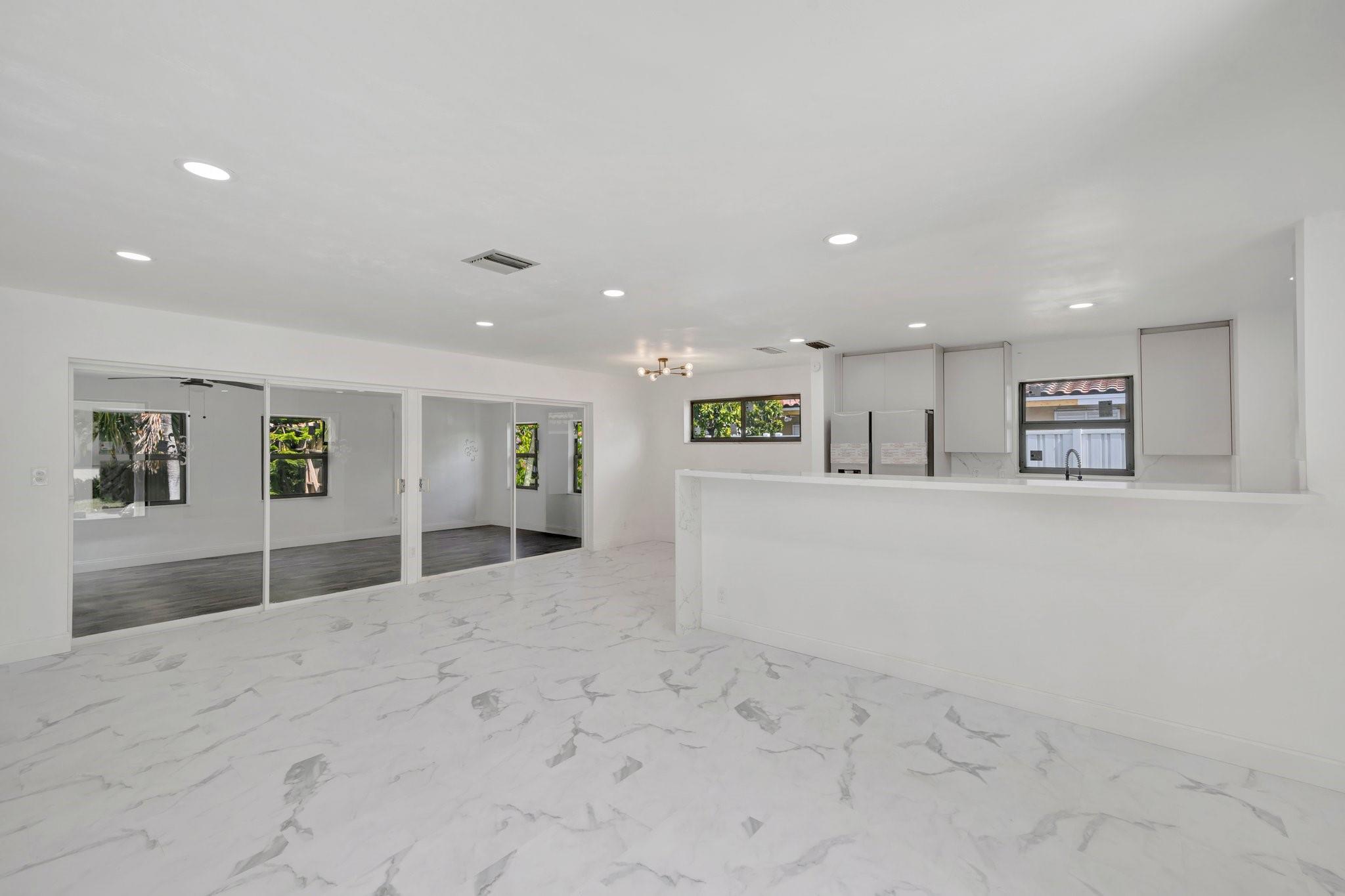 Beautifully remodeled home features new kitchen with Calacatta quartz counter tops, breakfast bar, new appliances and cabinets. New bathrooms with glass enclosed showers. New roof. New impact windows. Waterproof flooring in enclosed sunroom. Bedrooms with ceiling fans. New baseboards and light fixtures. Recessed lighting throughout. Covered front porch. Fenced back yard with concrete patio and wading pool. Storage Shed. Mango tree. Sprinkler system. Lots more! Don’t miss it!