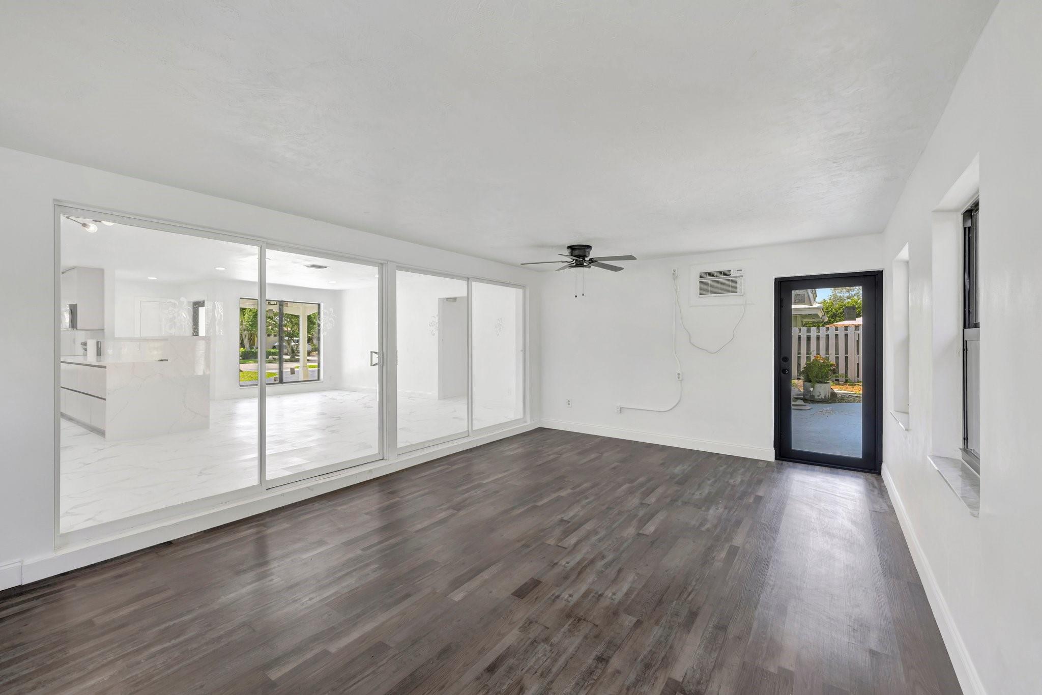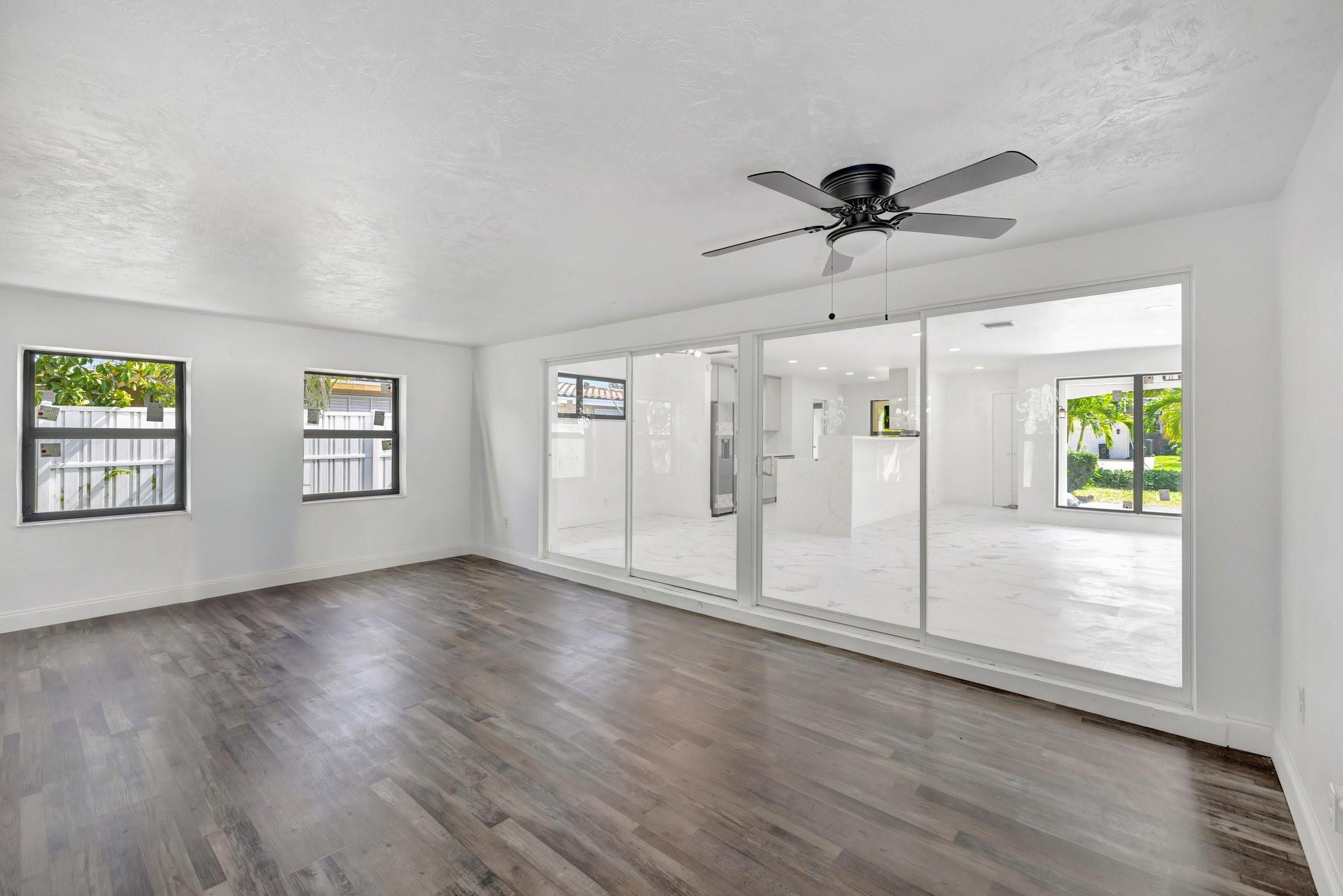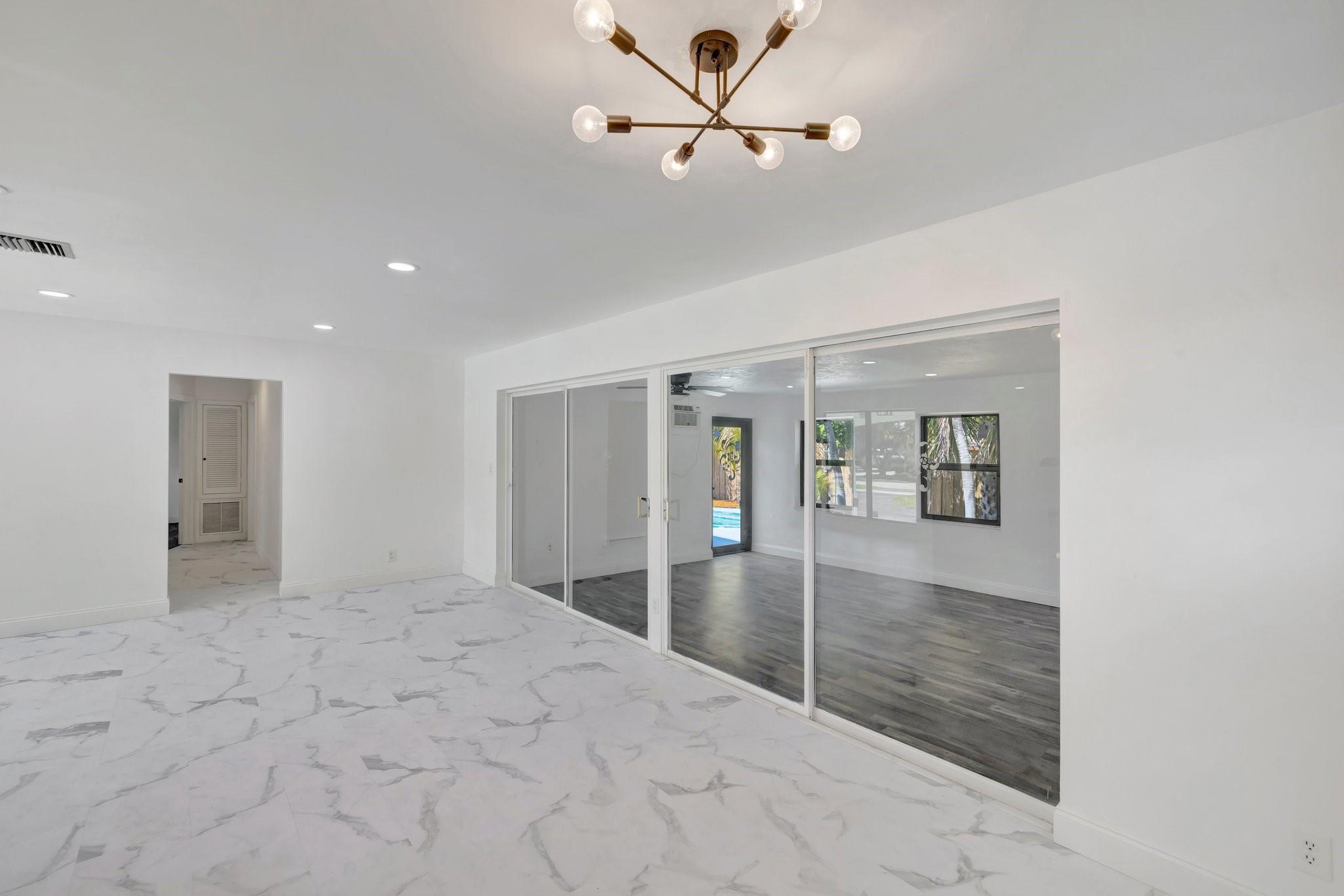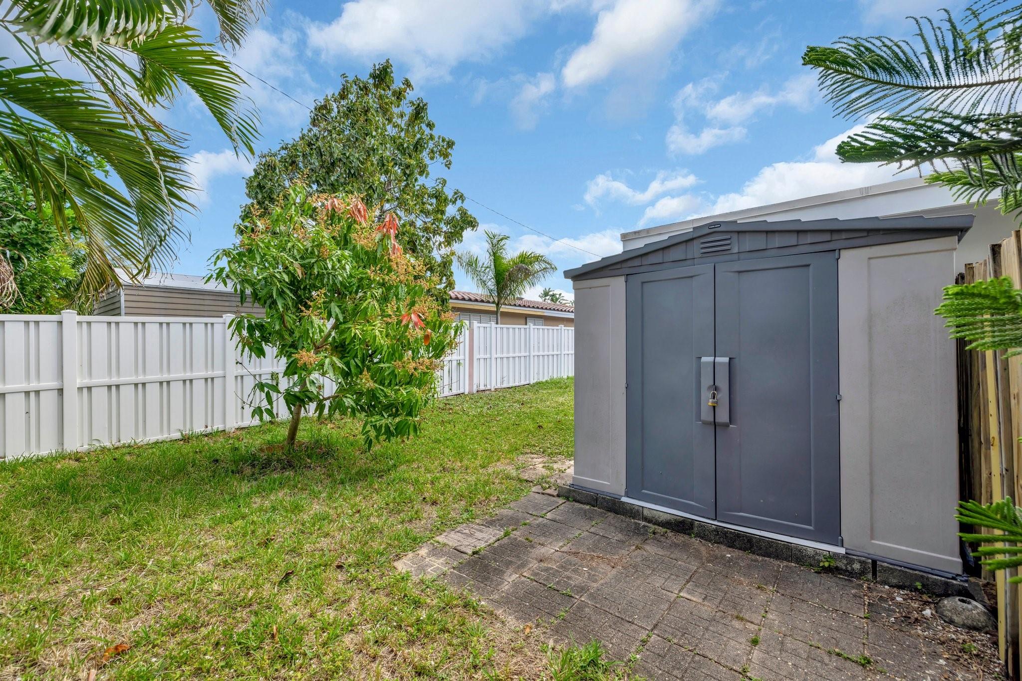 Beautifully remodeled home features new kitchen with Calacatta quartz counter tops, breakfast bar, new appliances and cabinets. New bathrooms with glass enclosed showers. New roof. New impact windows. Waterproof flooring in enclosed sunroom. Bedrooms with ceiling fans. New baseboards and light fixtures. Recessed lighting throughout. Covered front porch. Fenced back yard with concrete patio and wading pool. Storage Shed. Mango tree. Sprinkler system. Lots more! Don’t miss it!