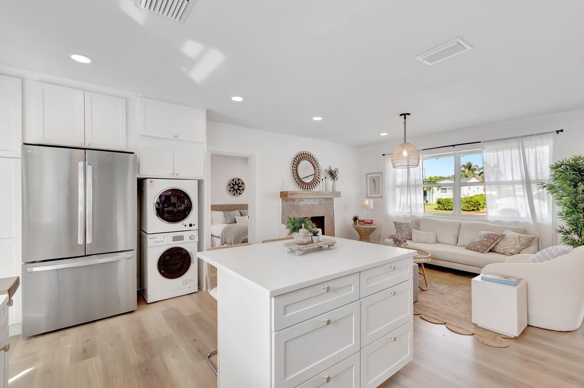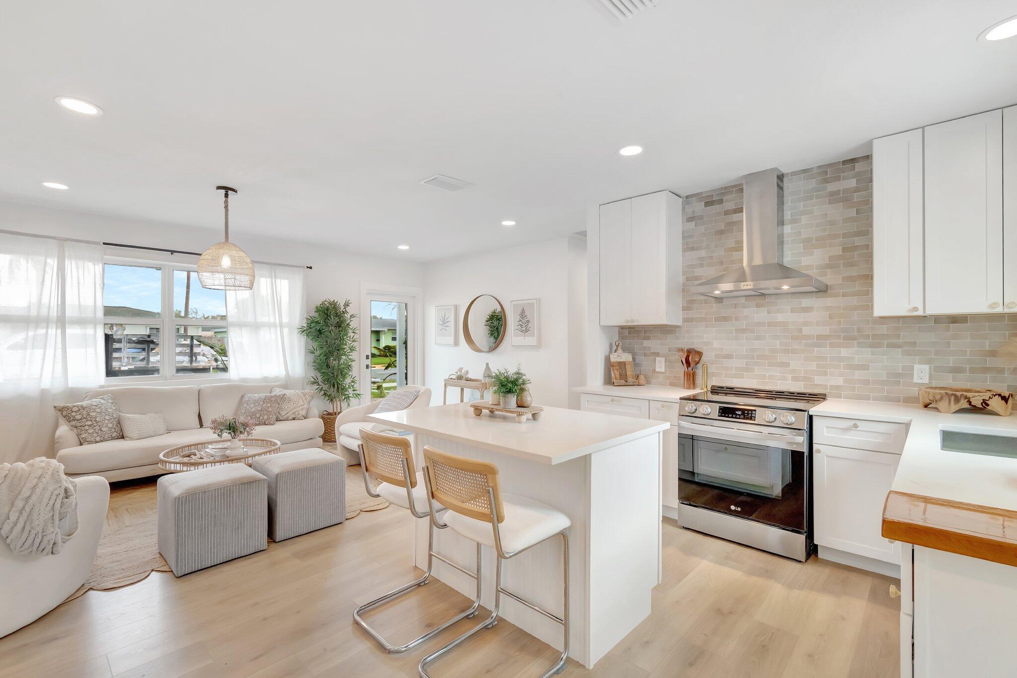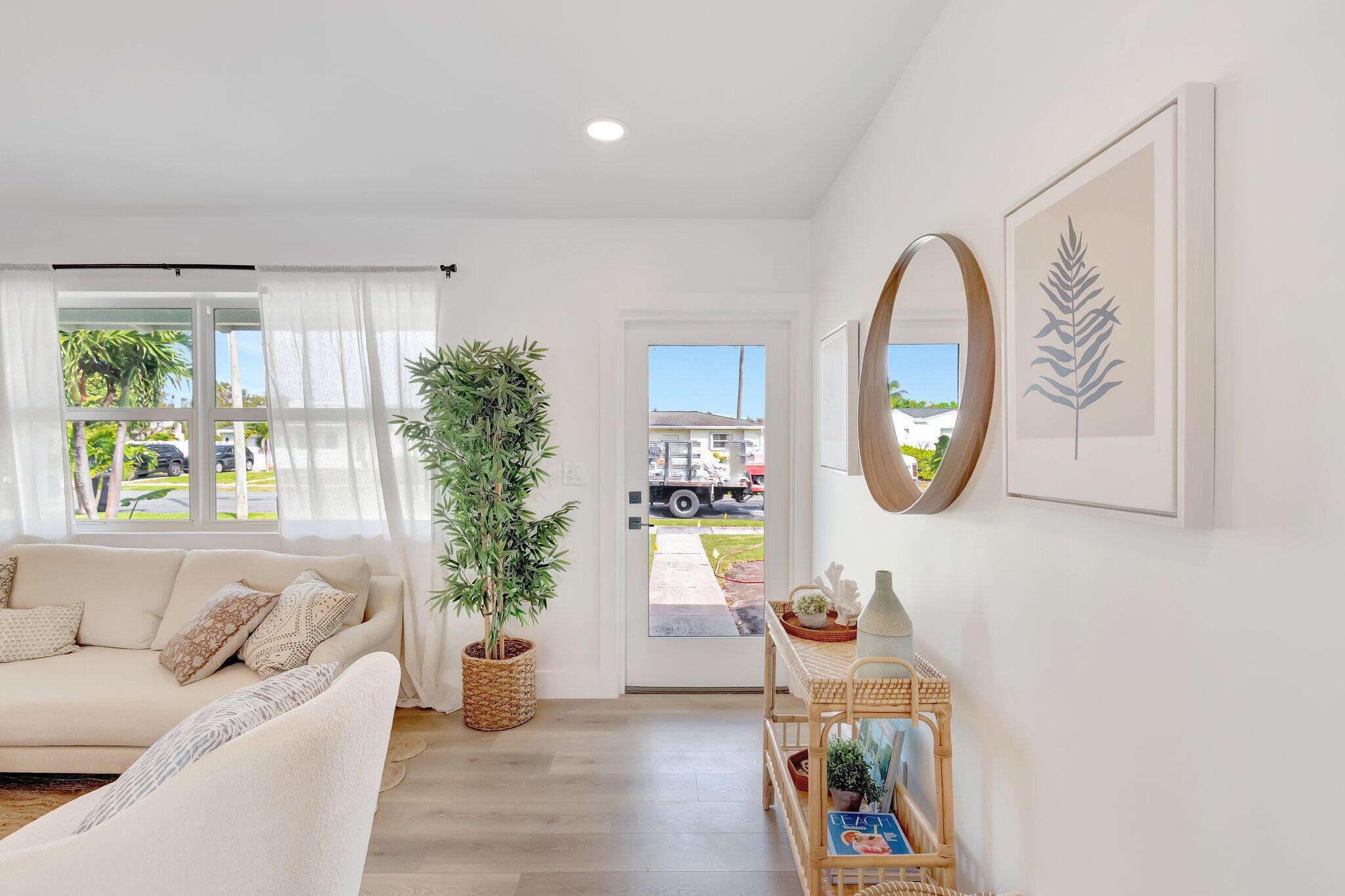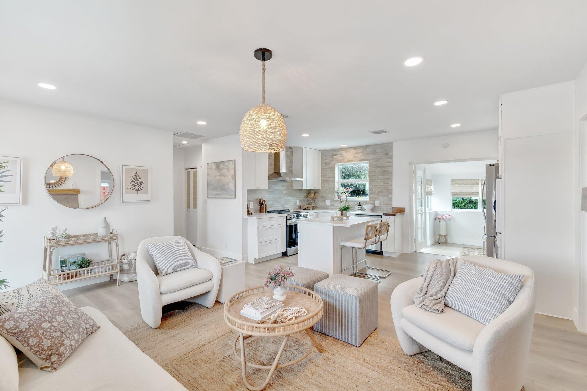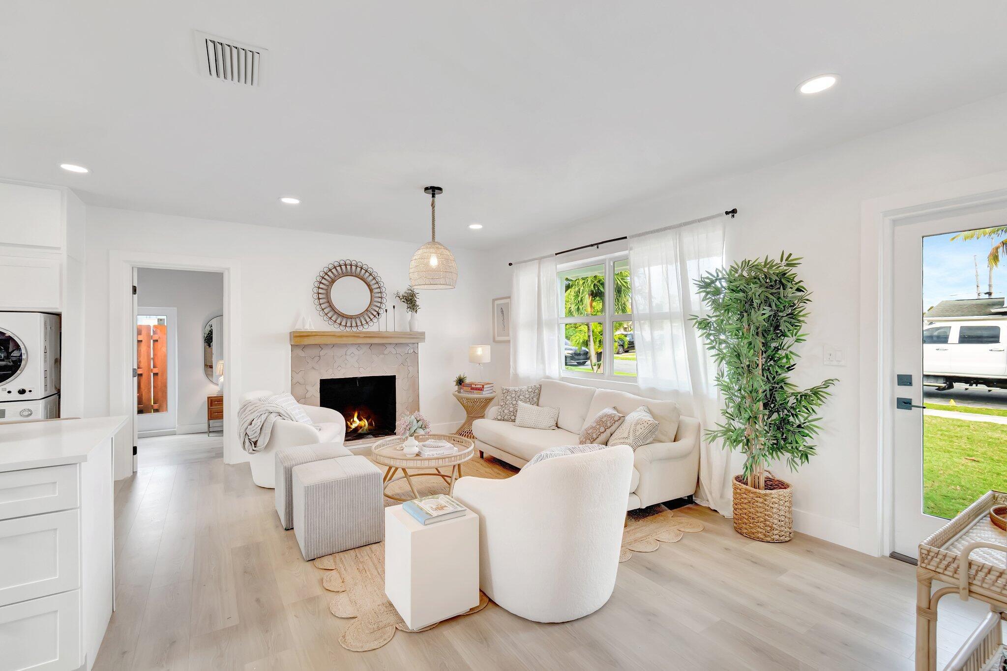 Located in the highly sought-after SOSO neighborhood of West Palm Beach, this beautifully renovated home offers the perfect blend of modern elegance and prime location. Just moments from the scenic Intracoastal Waterway, residents can enjoy waterfront walks, top-rated dining, and easy access to downtown West Palm Beach and Palm Beach Island.This home has been thoughtfully updated with high-end finishes throughout, including a brand-new roof, impact windows, and doors. The interior features wide plank wood laminate flooring, new appliances, and brand-new quartz countertops in the kitchen and bathrooms.