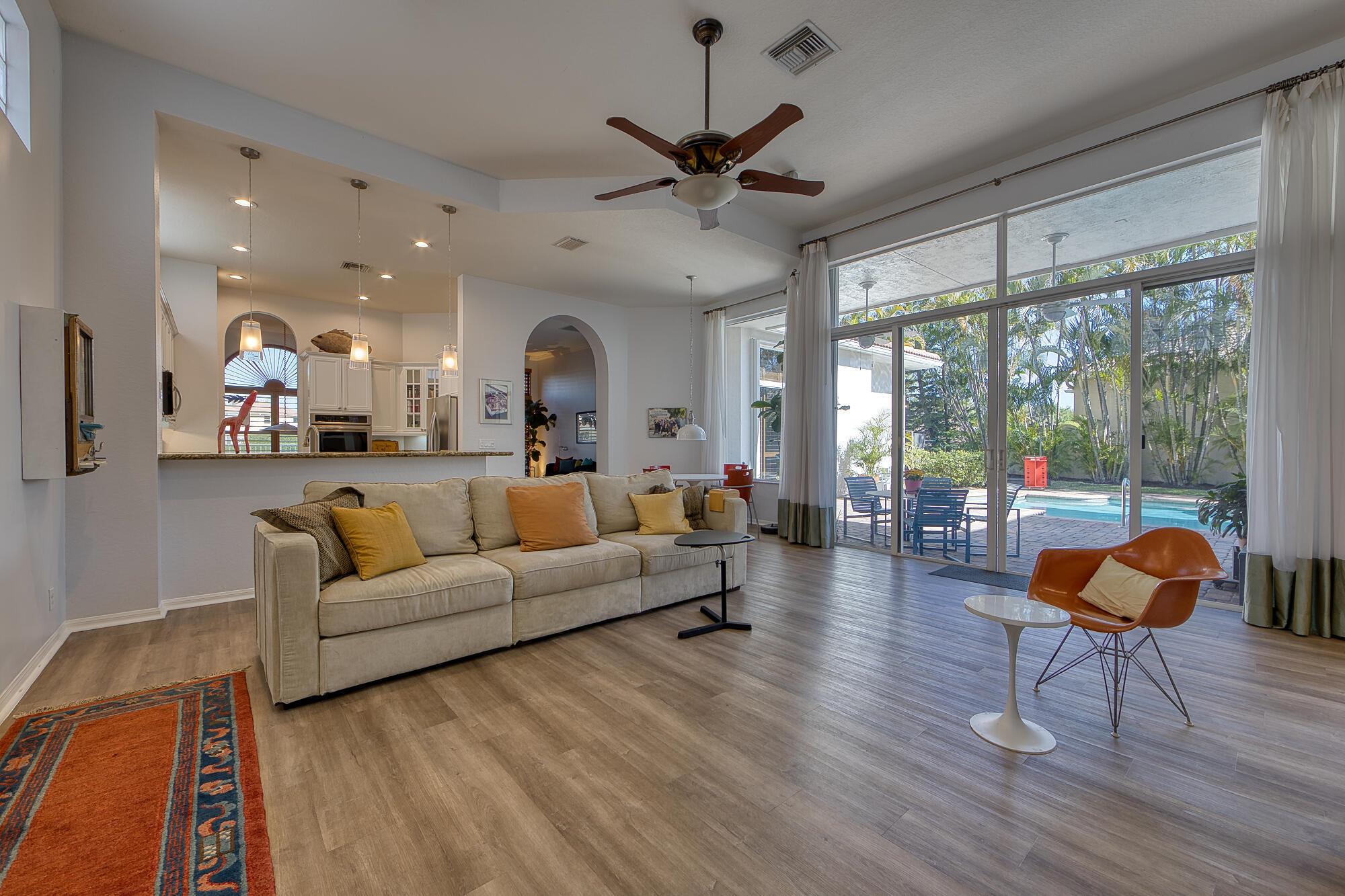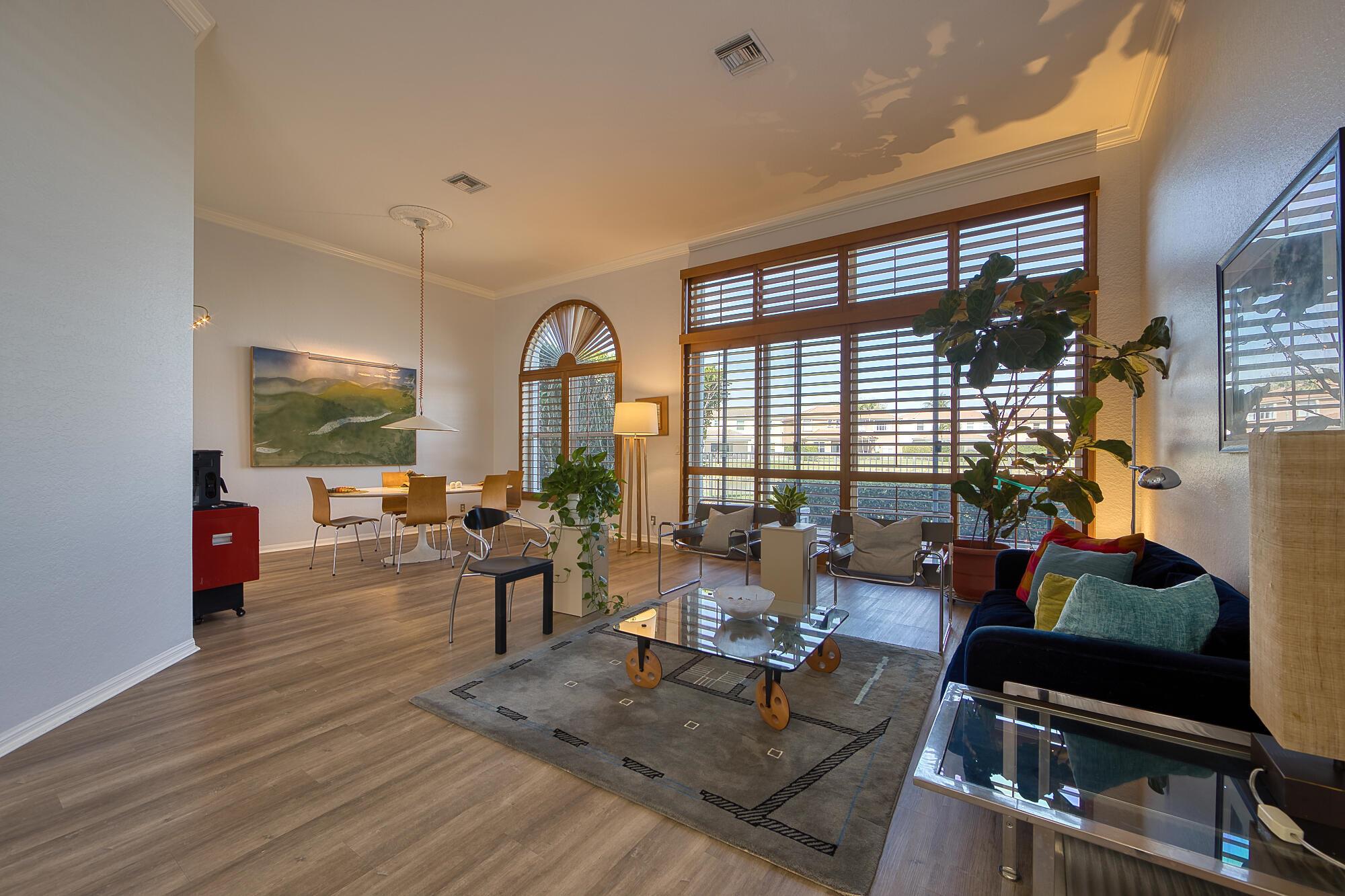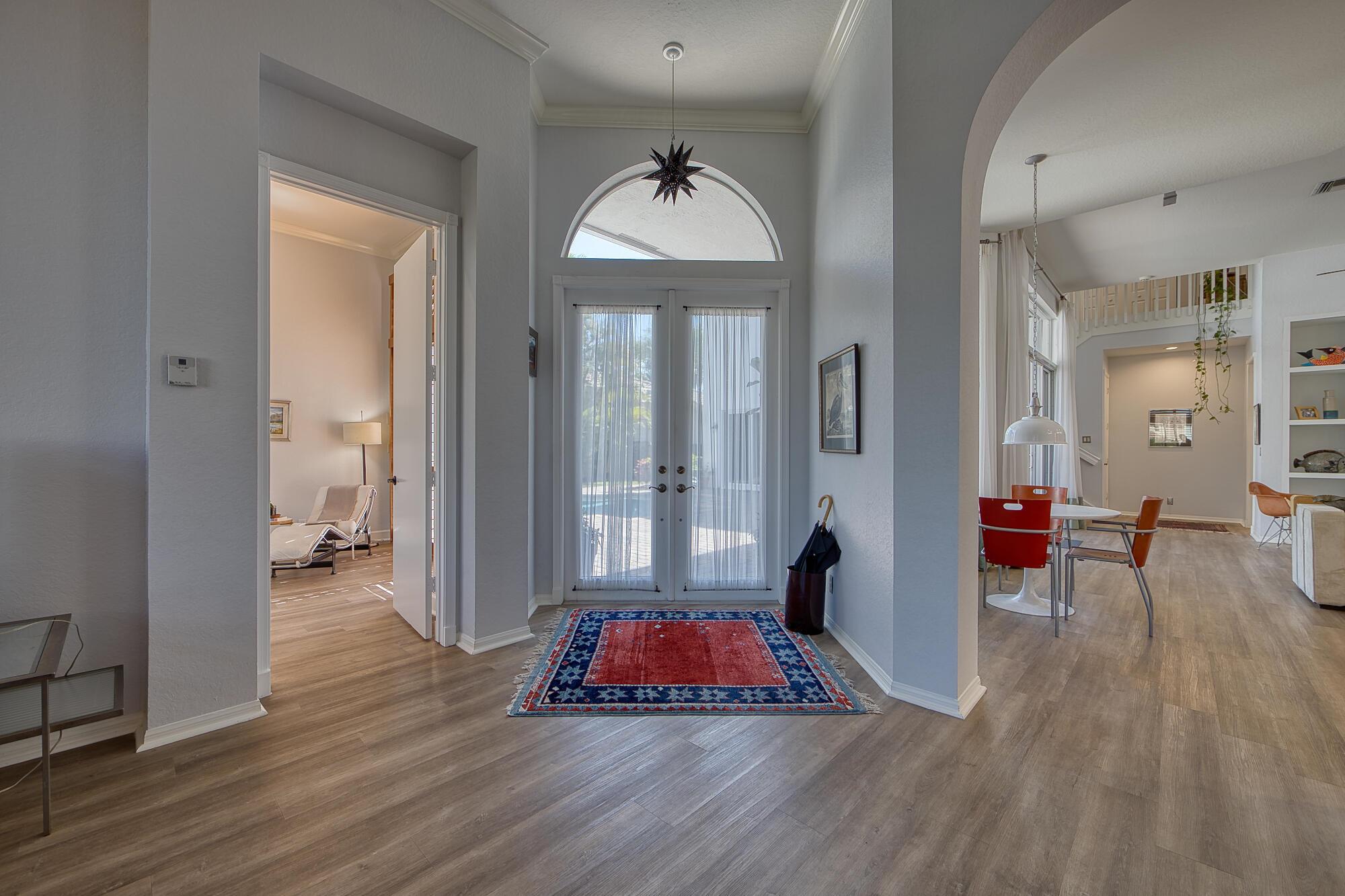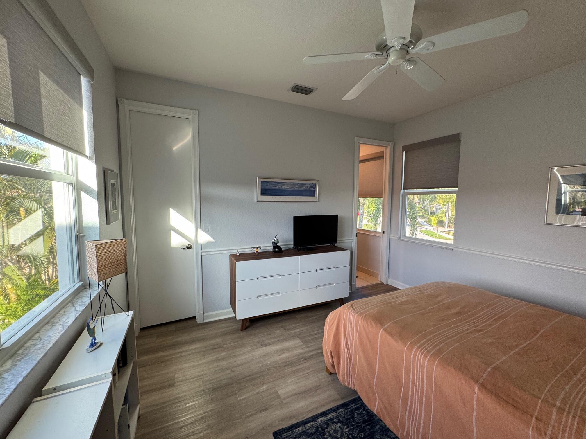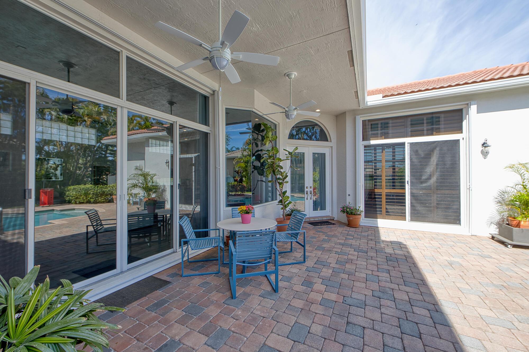 This courtyard home in a premier gated community offers spacious living areas with high ceilings and abundant natural light. Enjoy the serene, private setting with lake views. Home has a poolside suite that can be used for guest bedroom or home office. The gourmet kitchen features modern appliances and ample counter space. Rest easy as the home has new roof, new impact windows (upstairs), new accordion shutters (downstairs), a newly resurfaced pool, and exterior of home has been freshly painted. In addition to the onsite Clubhouse amenities, the property is conveniently located near shopping, dining, and recreational activities, offering a superb blend of comfort and convenience. Don’t miss the opportunity to make this your new home