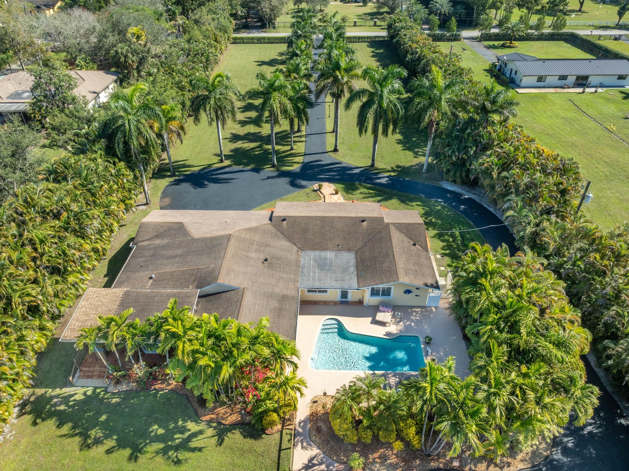 95% Vacant for Quick Sale! Impeccable Home w/detached Guest House & Offices on 2.4-Acres on coveted Thoroughbred Lane in Sunshine Ranches! IDEAL ESTATE COMPOUND FOR WORK & PLAY! Detached Office Bldg for Entrepreneurs & amazing outdoor entertaining w/Al Fresco terraces, full Summer Kitchen, Pool, Hot Tub, Gym & large front/rear Yards. Main House offers 4Beds/4.5Ba Ensuites w/Grohe/Kohler fixtures, glistening Saturnia marble & wood-floors, mint-condition Maple Wood Cabinetry, spacious Owners’ Suite & w/couple’s Shower/Steamer. GH offers 1Bed/1Ba w/living spaces & breezy Terraces to play Pool, Foosball & make memories! Perimeter Fenced w/Elect Gate & privately landscaped w/Areca trees & beautiful Tropical Foliage. All bldgs w/Impact glass, full-Generator, new FPL & AT&T lines! A must see!