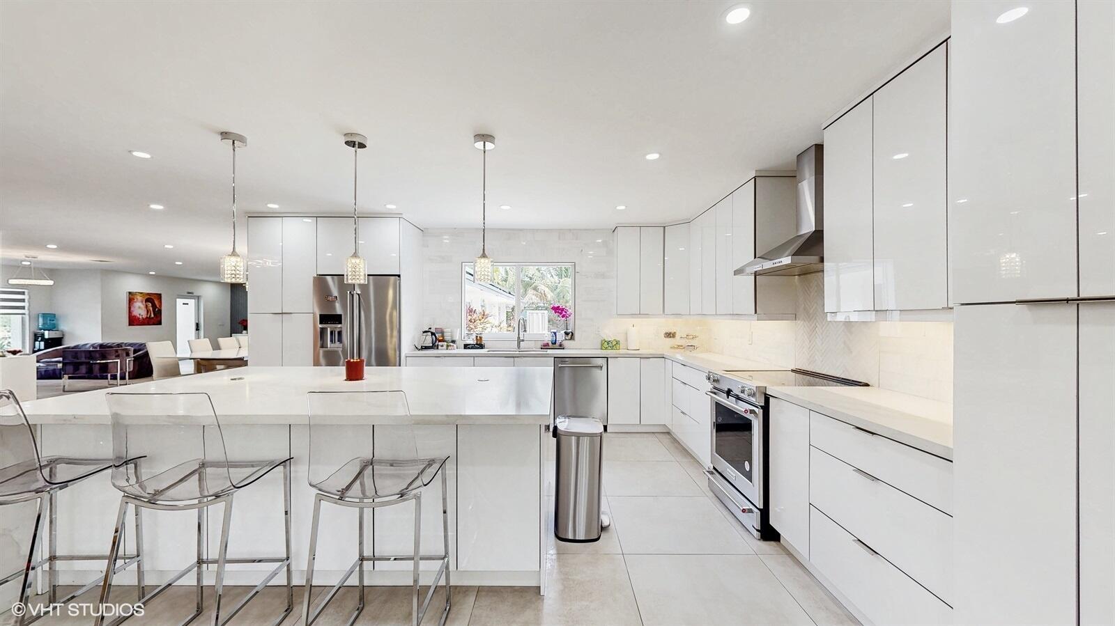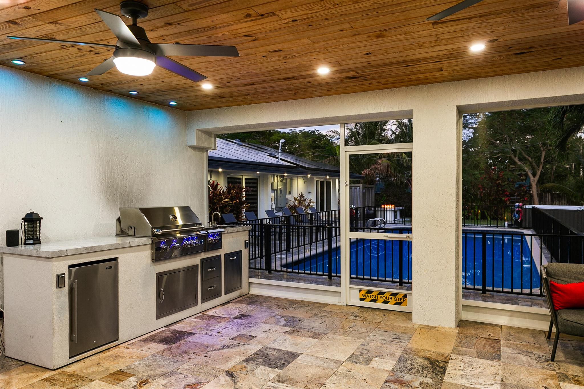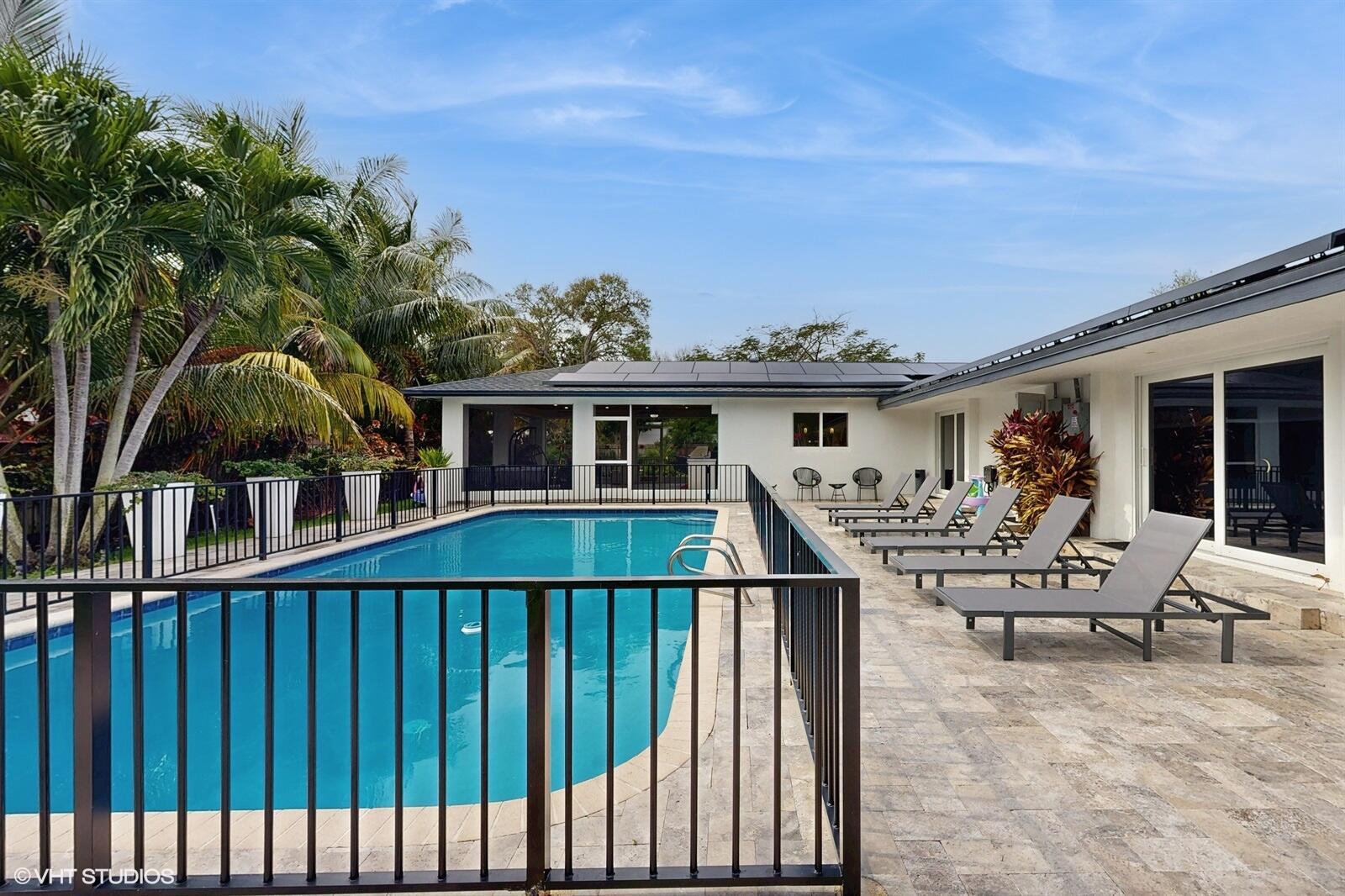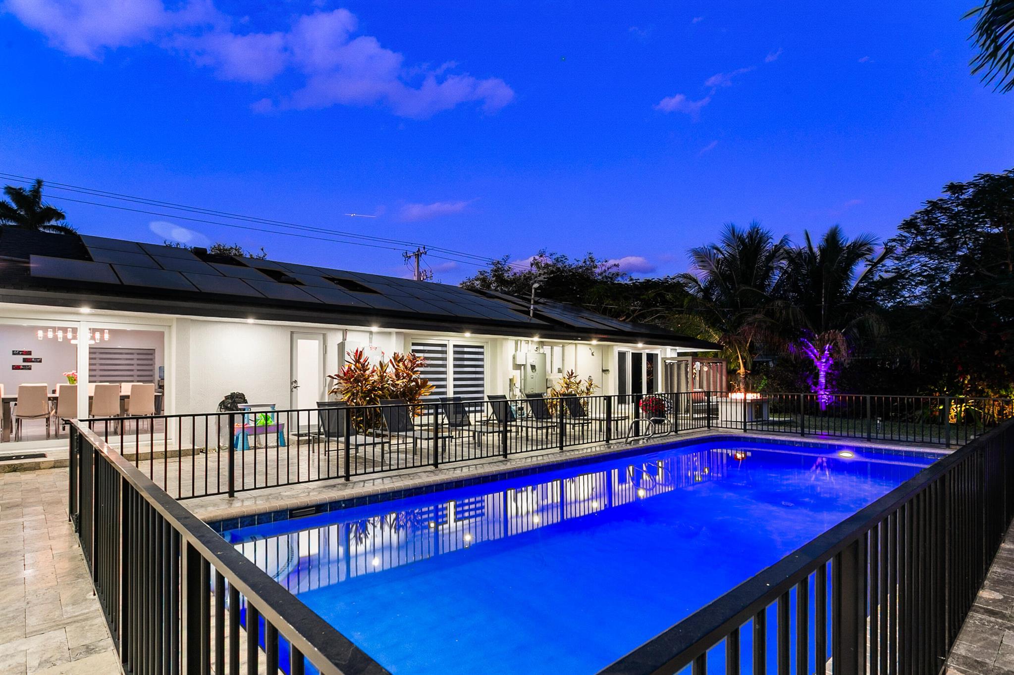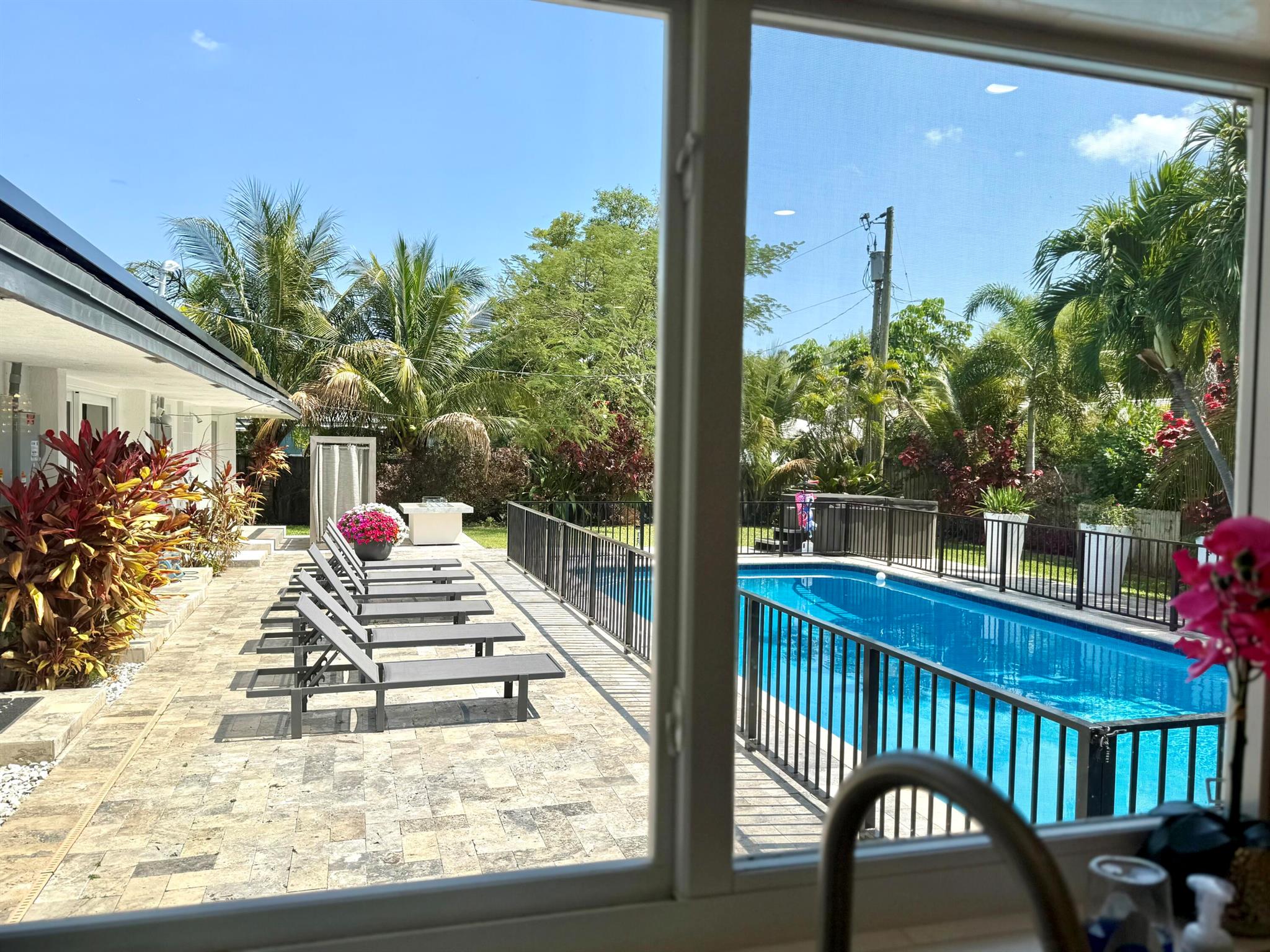 CLICK ON FACTS AND FEATURES FOR 3D TOUR. No expense has been spared in this fully remodeled 5-bedroom, 3-bath home on a lush 1/2-ACRE LOT in highly sought-after Pompano Beach, just minutes from the ocean. ELECTRIC, PVC, ROOF, AC ALL UPDATED. Impact windows and doors, solar panels, and a well for sprinklers. The bright, open floor plan includes a stylish cabana bath and an outdoor shower, perfect for effortless indoor-outdoor living. Spend your day by the heated pool, entertain in the outdoor kitchen with granite counters, or unwind by the serene Koi Pond with a moat and waterfall. A commercial-grade playground adds fun for all ages. This home is the epitome of luxury, comfort, and modern elegance designed for those who want the best of Florida living in a prime location.
