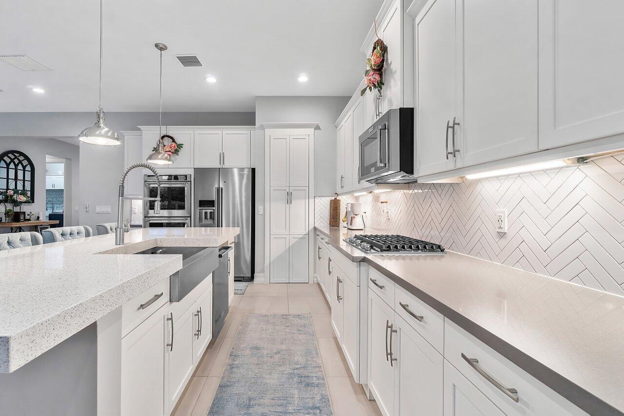 Discover luxury living in this CalAtlantic-built one-story home! Boasting 3 beds, 2.5 baths, and a flex room that serves as an office, or 4th bedroom, the home exudes opulence. Enjoy 24×24 tile in main areas, vinyl plank in bedrooms, and top-tier KitchenAid appliances. Benefit from natural gas, ensuring energy efficiency. The 15×30 saltwater pool with a sun shelf and spa creates a resort vibe. The house is fortified with spray foam insulation, impact windows, and doors, ensuring safety and peace of mind. The backyard, an entertainer’s delight, features synthetic turf. Make this extraordinary CalAtlantic home yours and embrace a life of comfort and sophistication!