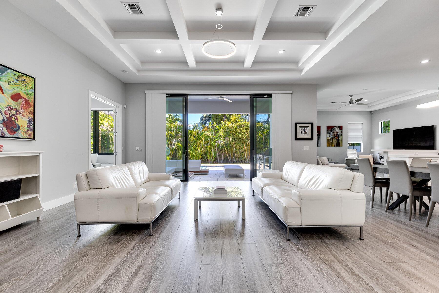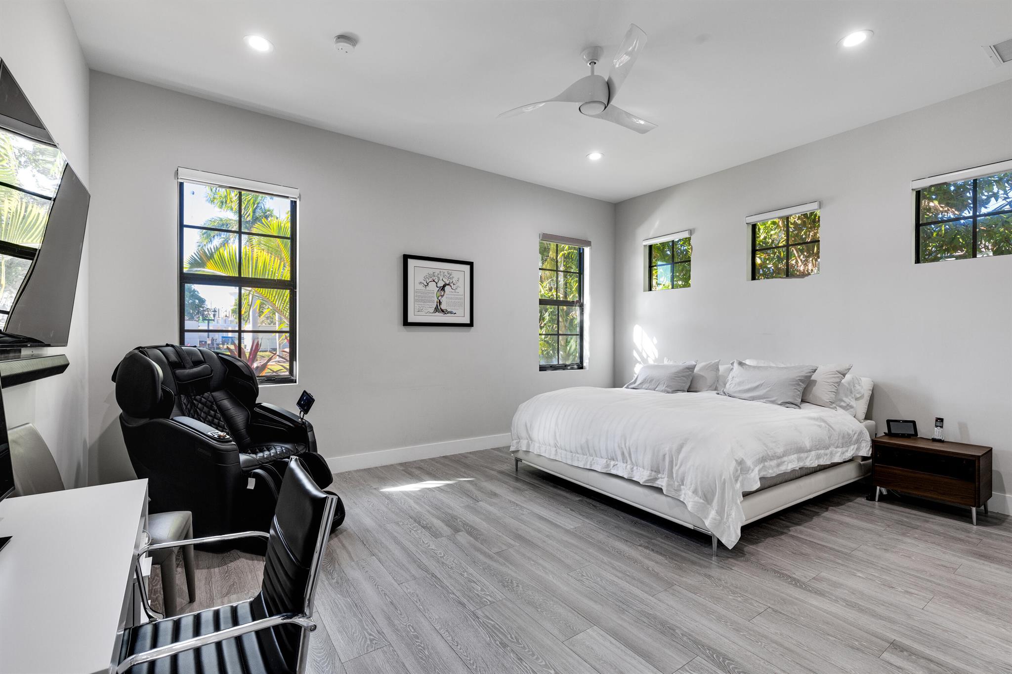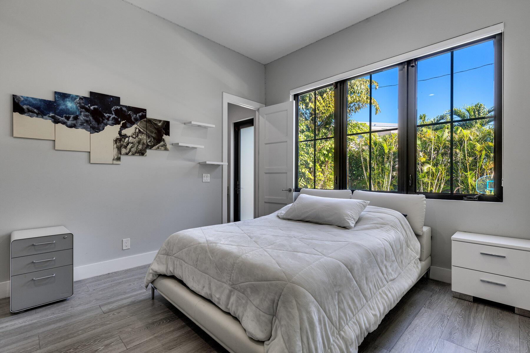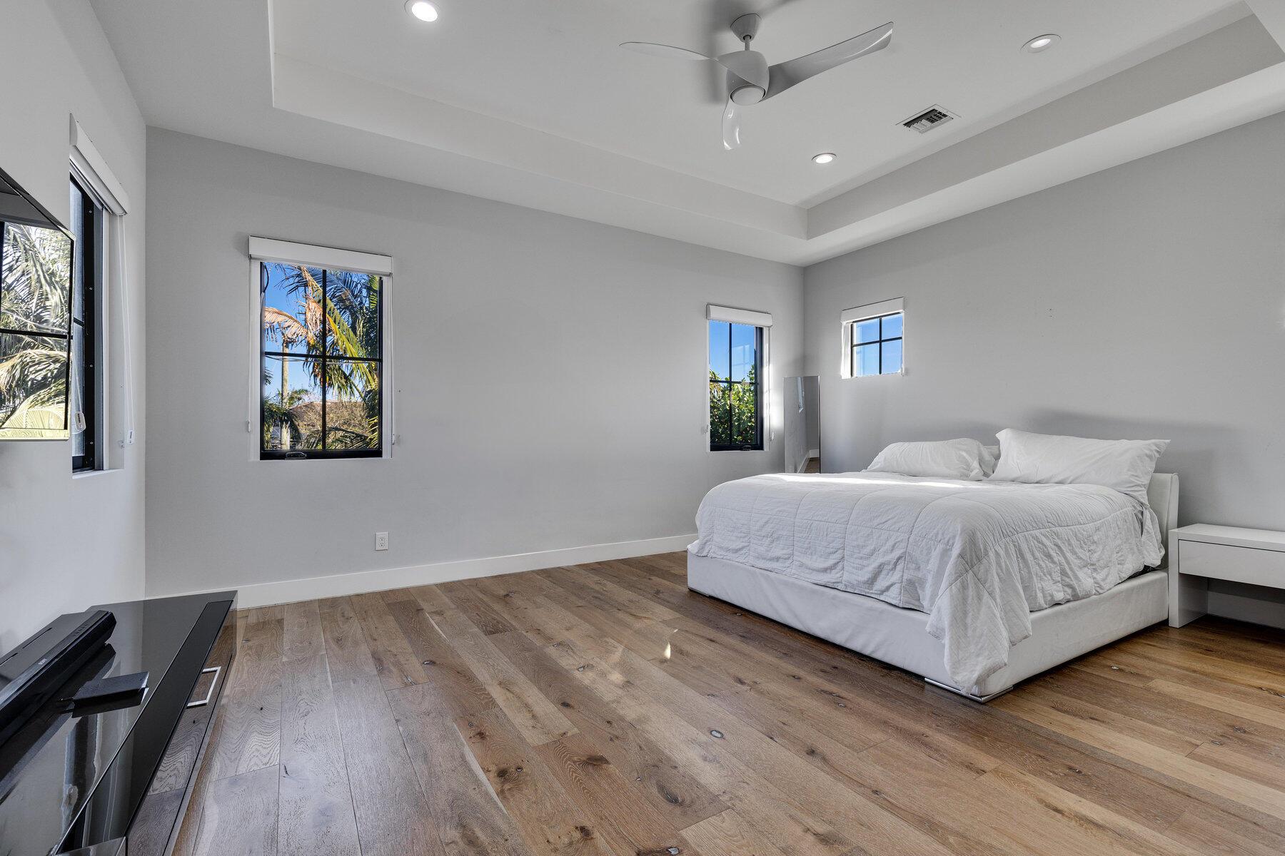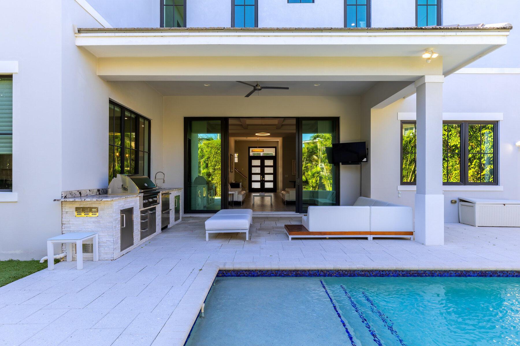 550 NE Mizner Boulevard is the closest home to Mizner Park and the Mizner Park Amphitheater, offering unmatched access to Boca’s premier shopping, dining, and entertainment. Nestled in the coveted Boca Villas neighborhood within the prestigious Golden Triangle, this stunning 6-bedroom, 5-bathroom residence offers unparalleled luxury and convenience. Built in 2017, this light-filled home boasts an expansive layout, featuring both upstairs and downstairs primary suites–an exceptional rarity that ensures ultimate flexibility and comfort.The main floor showcases matte porcelain flooring, while engineered wood flooring lends warmth to the second floor. The open-concept design is highlighted by 10-foot glass sliding doors, seamlessly connecting the indoor and outdoor living spaces. The