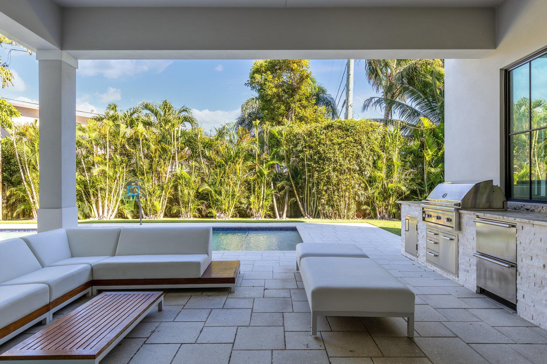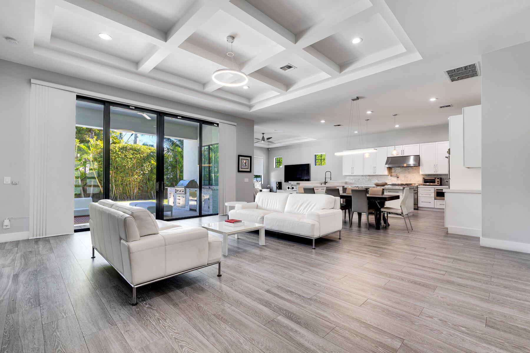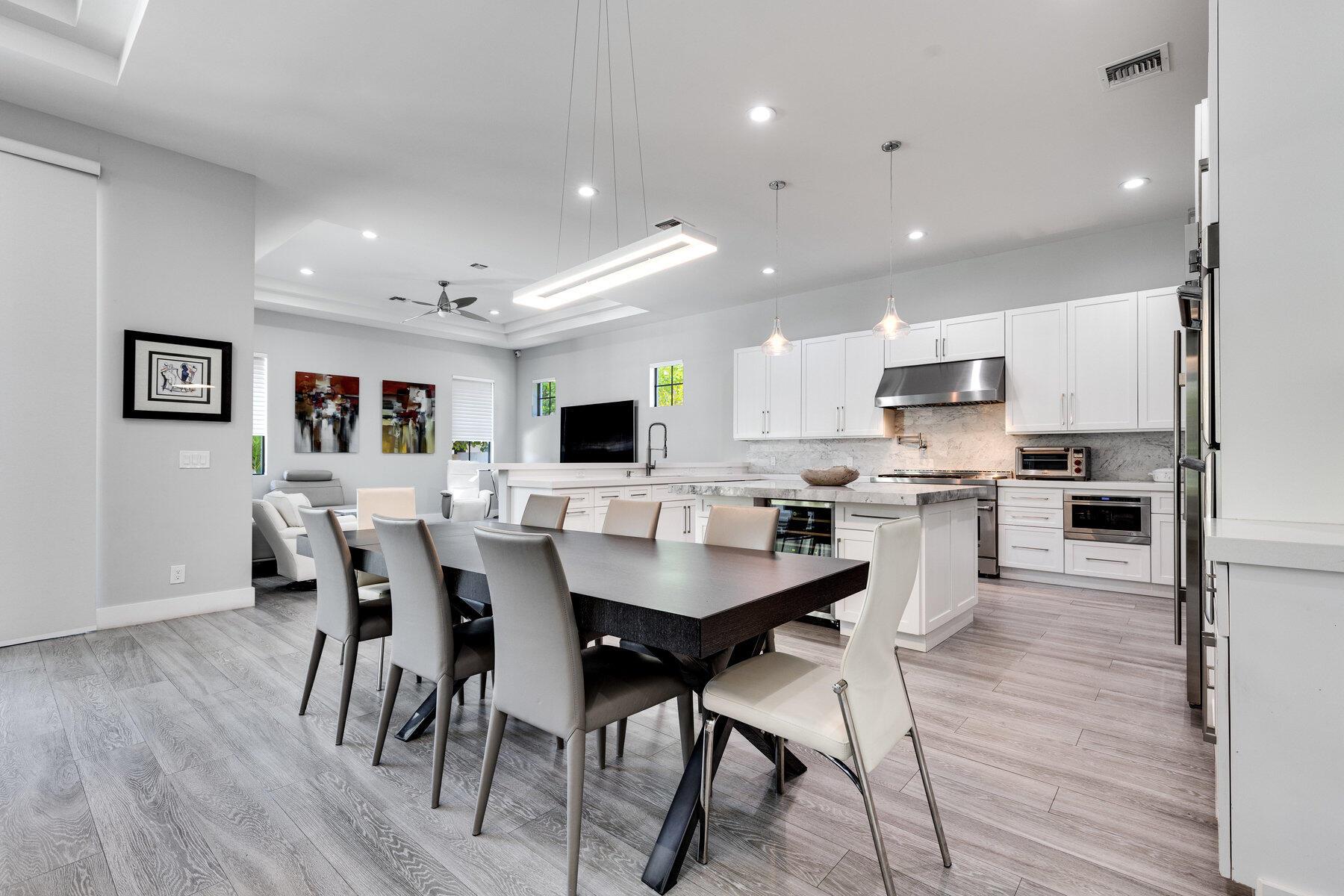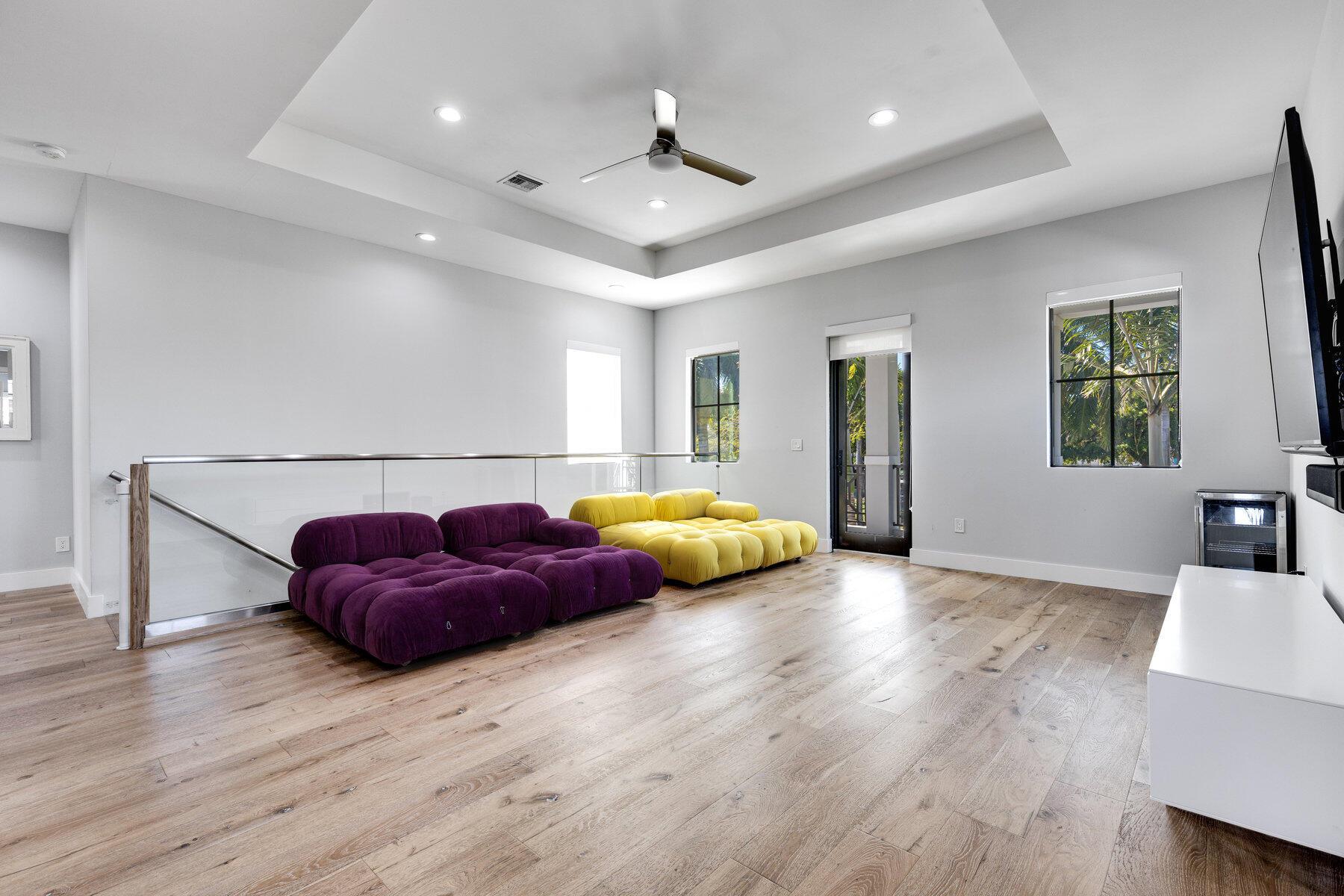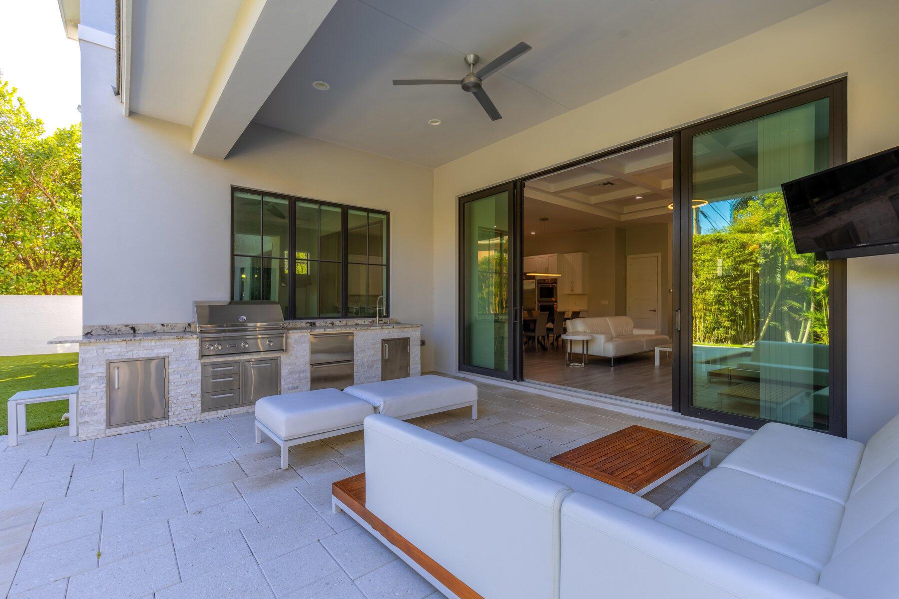 550 NE Mizner Boulevard is the closest home to Mizner Park and the Mizner Park Amphitheater, offering unmatched access to Boca’s premier shopping, dining, and entertainment. Nestled in the coveted Boca Villas neighborhood within the prestigious Golden Triangle, this stunning 6-bedroom, 5-bathroom residence offers unparalleled luxury and convenience. Built in 2017, this light-filled home boasts an expansive layout, featuring both upstairs and downstairs primary suites–an exceptional rarity that ensures ultimate flexibility and comfort.The main floor showcases matte porcelain flooring, while engineered wood flooring lends warmth to the second floor. The open-concept design is highlighted by 10-foot glass sliding doors, seamlessly connecting the indoor and outdoor living spaces. The