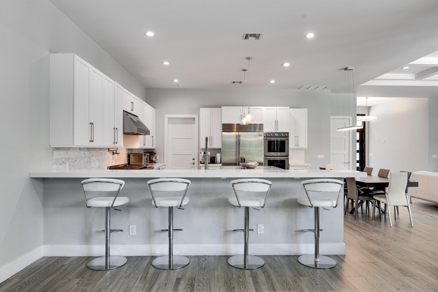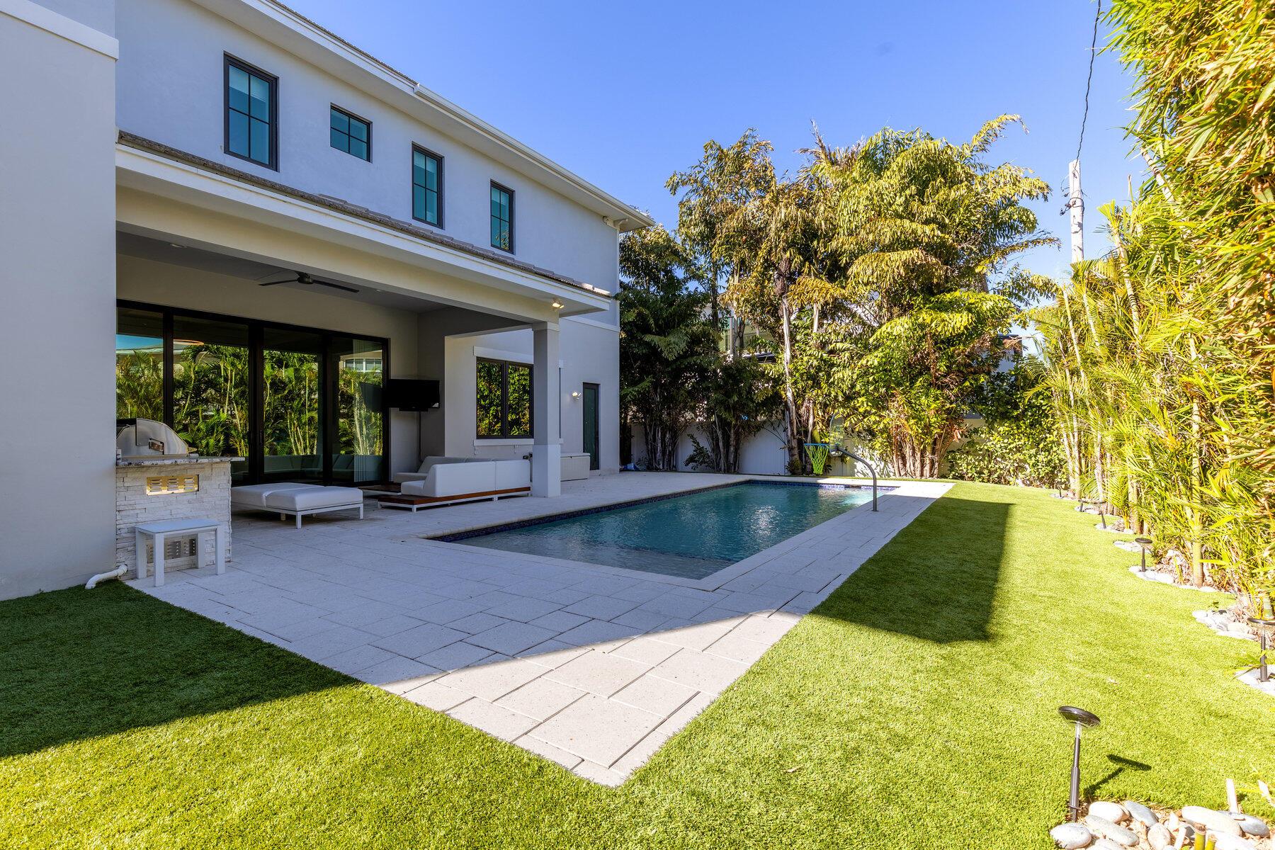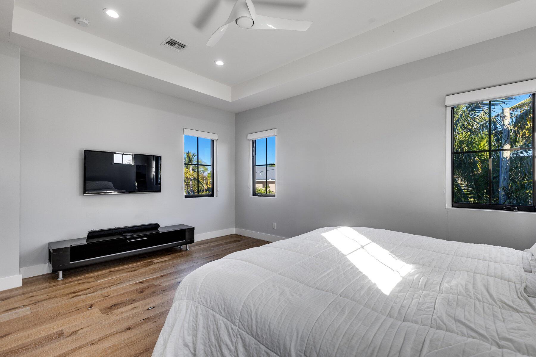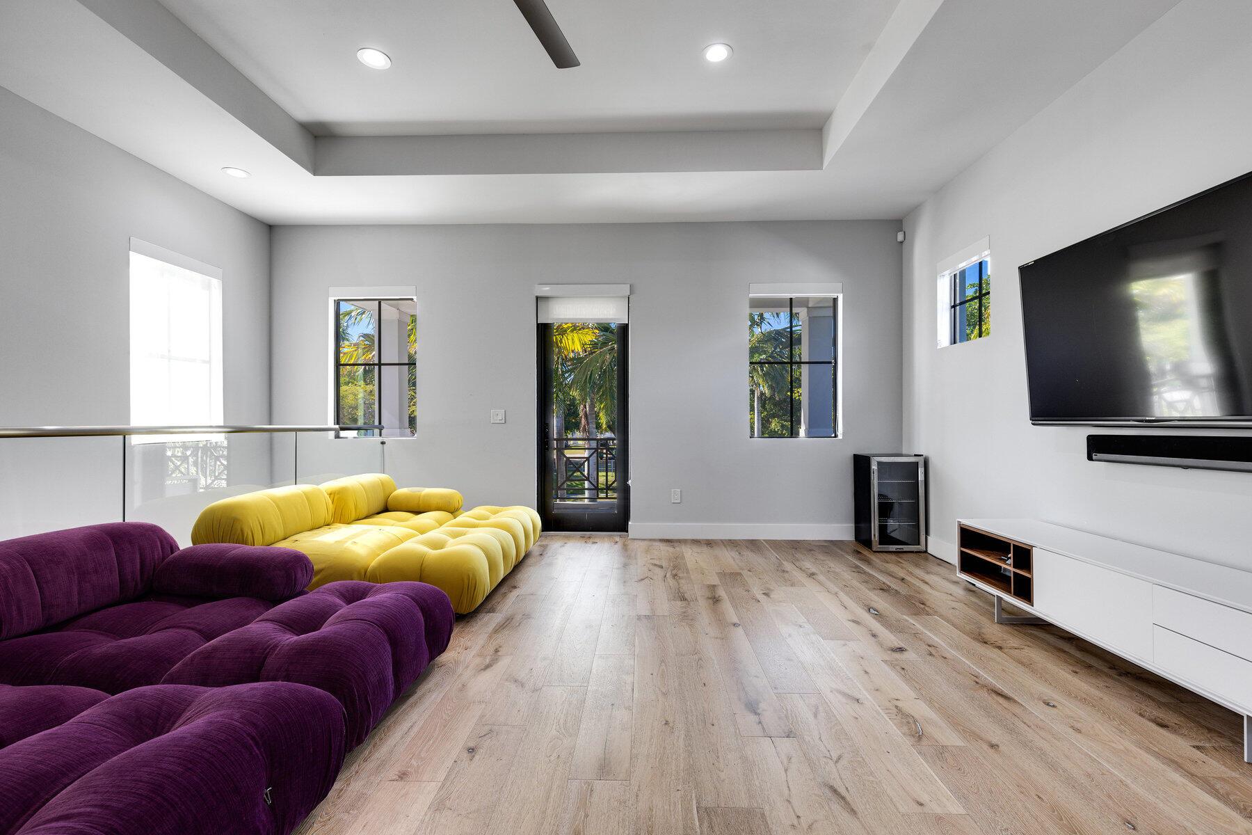 550 NE Mizner Boulevard is the closest home to Mizner Park and the Mizner Park Amphitheater, offering unmatched access to Boca’s premier shopping, dining, and entertainment. Nestled in the coveted Boca Villas neighborhood within the prestigious Golden Triangle, this stunning 6-bedroom, 5-bathroom residence offers unparalleled luxury and convenience. Built in 2017, this light-filled home boasts an expansive layout, featuring both upstairs and downstairs primary suites–an exceptional rarity that ensures ultimate flexibility and comfort.The main floor showcases matte porcelain flooring, while engineered wood flooring lends warmth to the second floor. The open-concept design is highlighted by 10-foot glass sliding doors, seamlessly connecting the indoor and outdoor living spaces. The